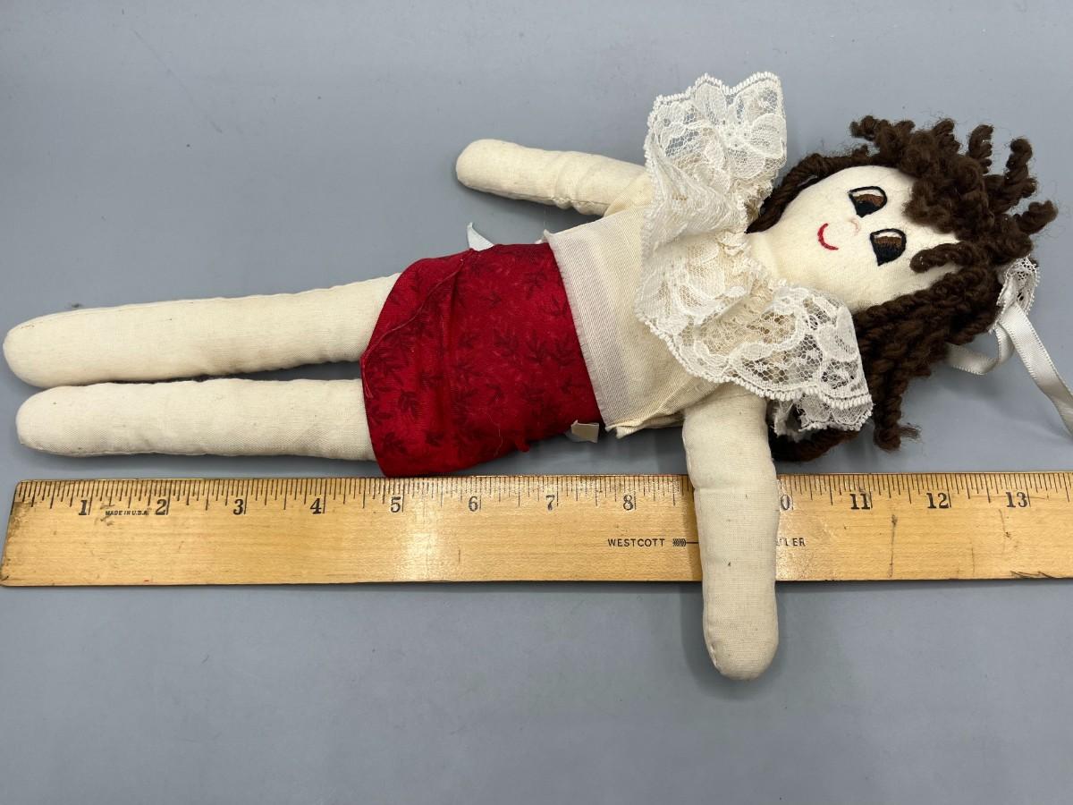 Vintage Simple Handmade Children Doll, there is wear to the doll, but there is no signifncant damage and is in fair vintage condition. Check pictures for more details and for sizing.