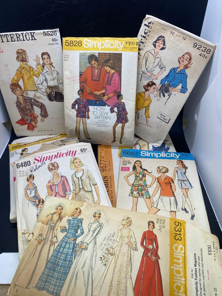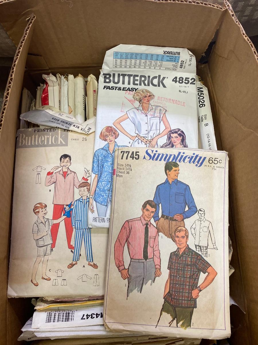 Vintage mix of men's, women's, and kids vintage sewing patterns. From McCall's, Butterick, and Simplicity. Well kept box of patterns. Did not check packages but they all look like they have patterns in them, may be cut but guessing they are complete by the way they have been kept. A lot of patterns from the 1970s. See photos. Woman's sizes look to be 10/12.