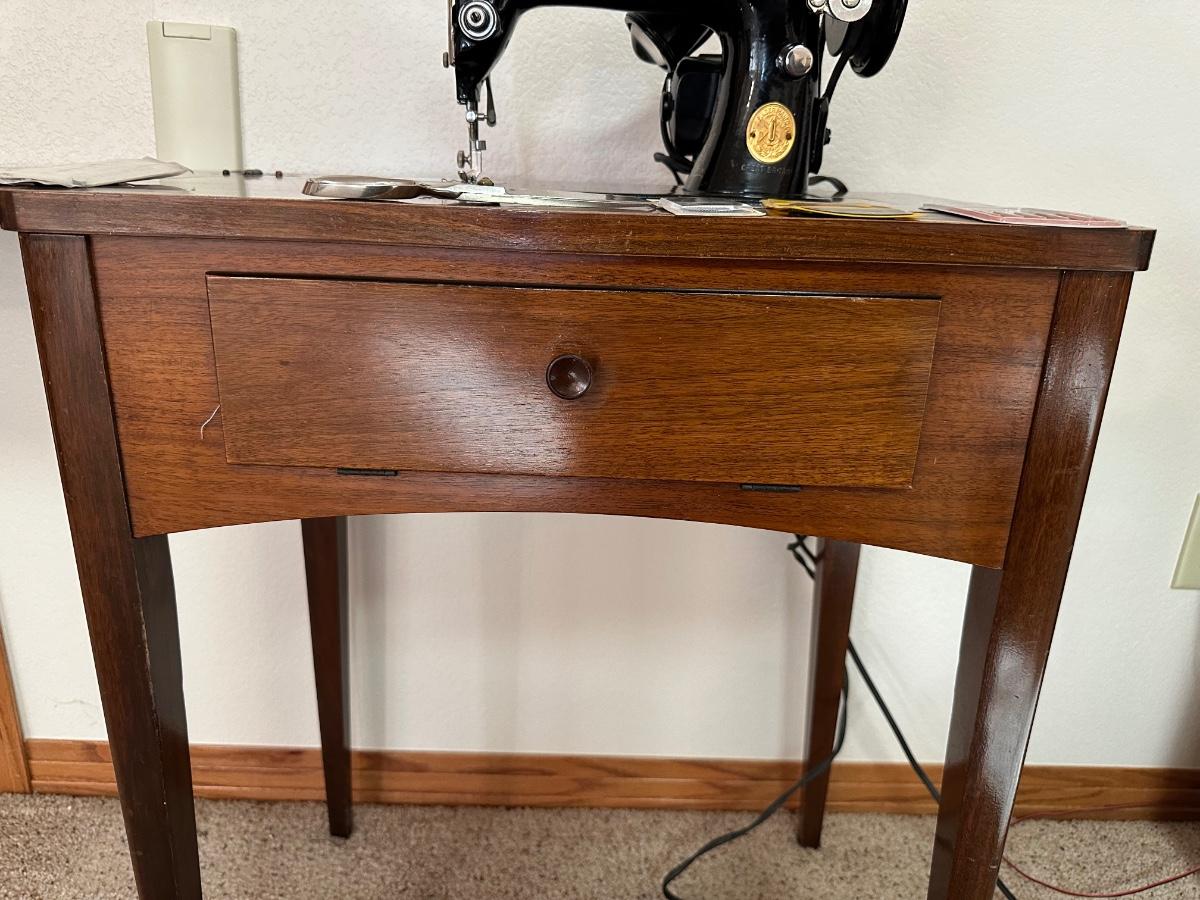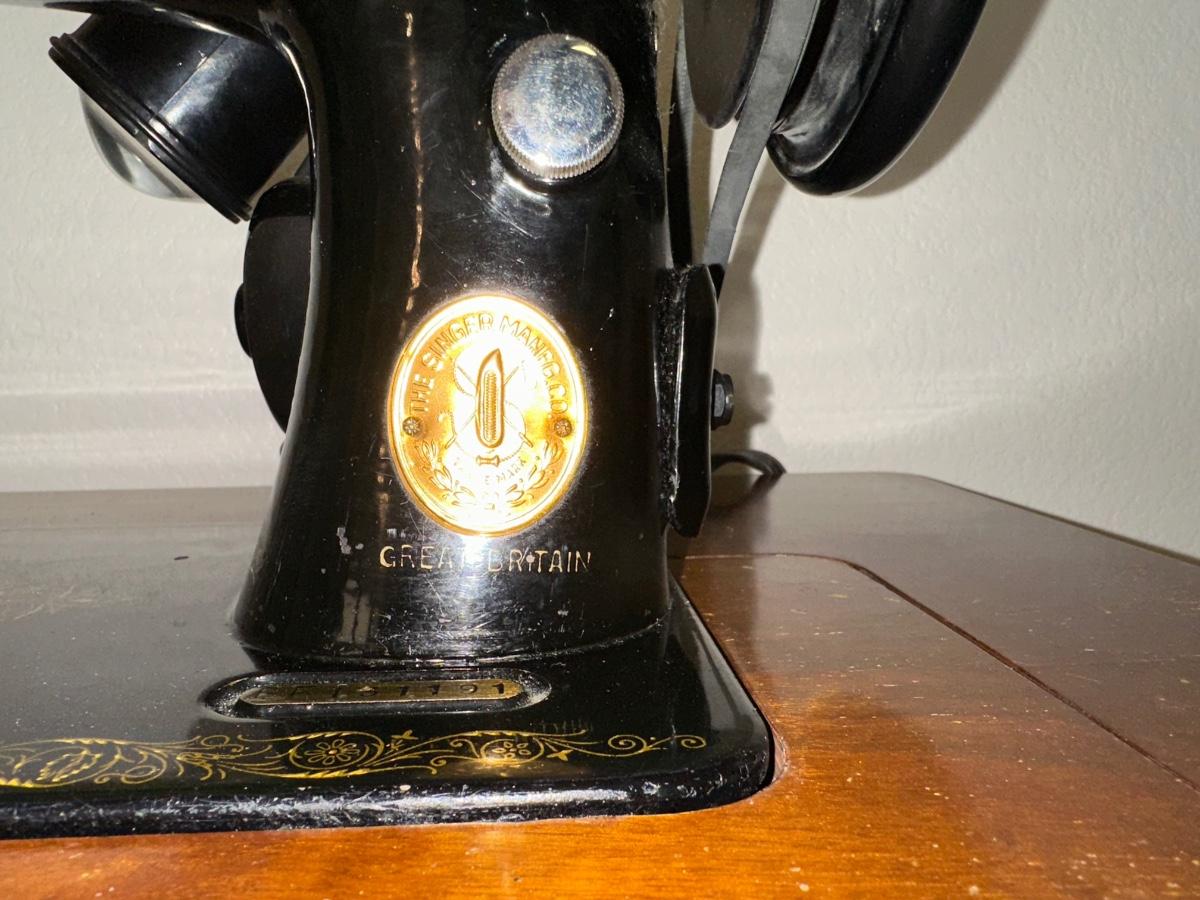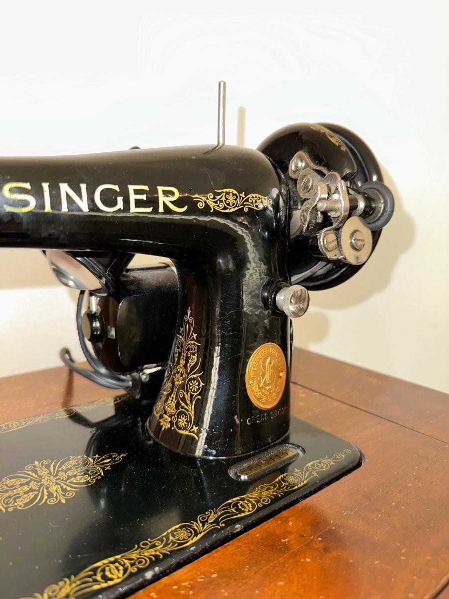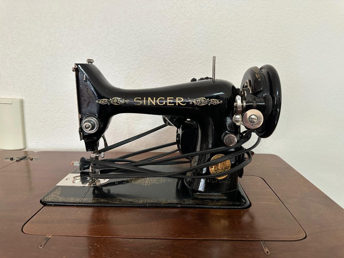 VINTAGE SINGER ELECTRIC SEWING MACHINE MODEL 99K HOUSED INSIDE SINGER WOODEN FOLD OUT CABINET