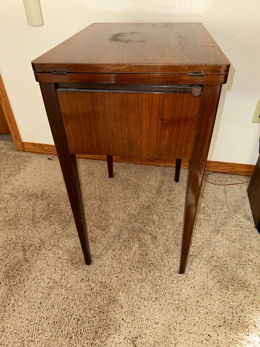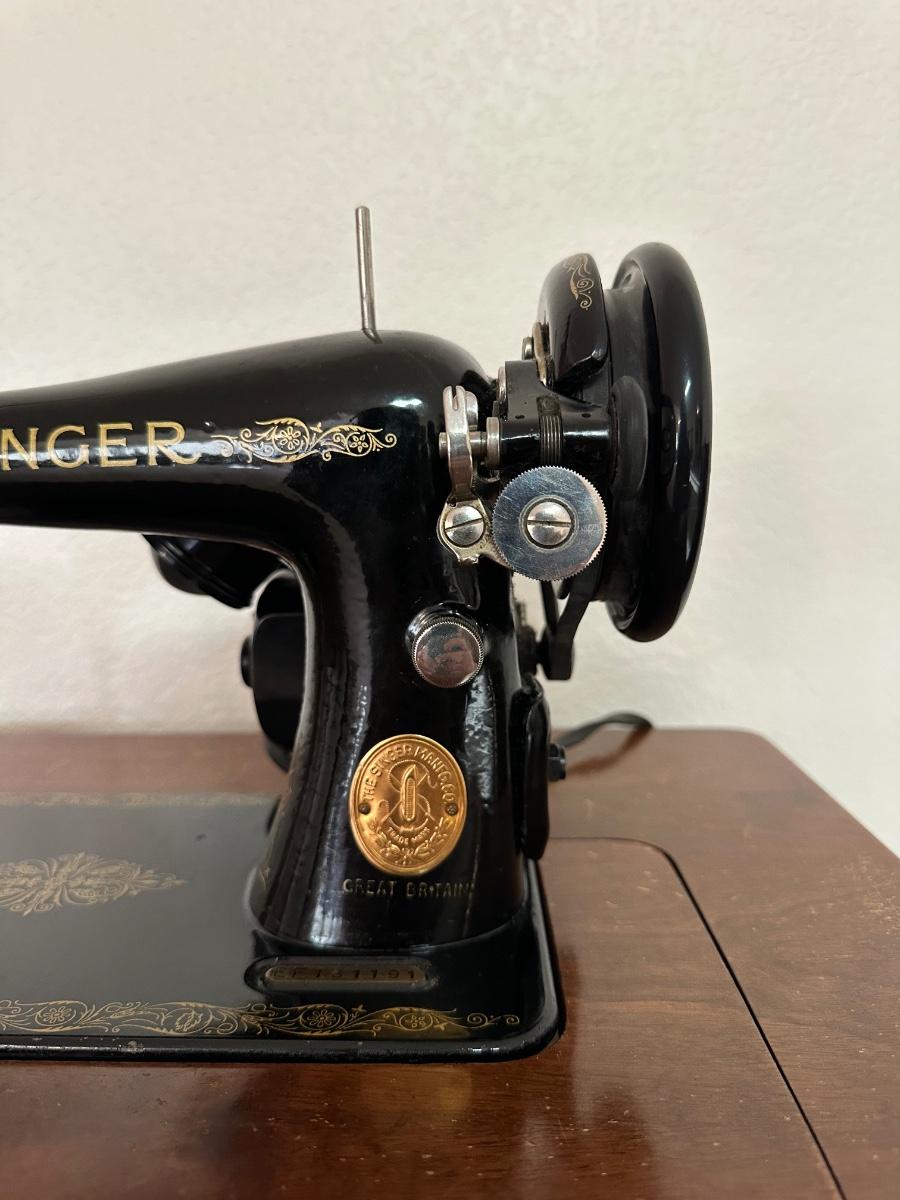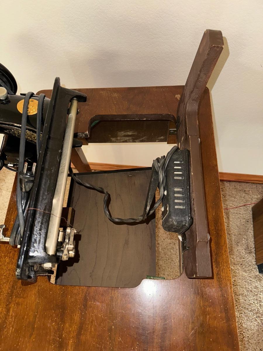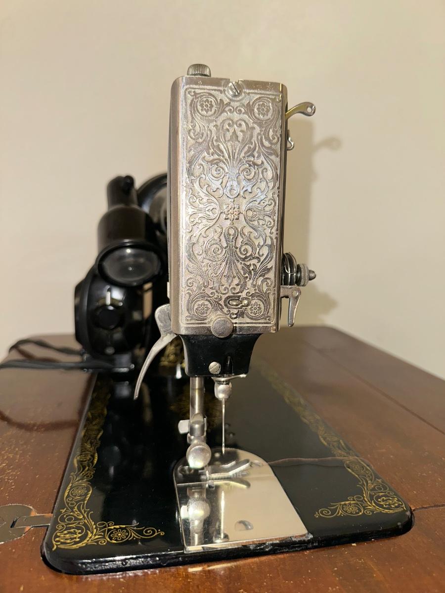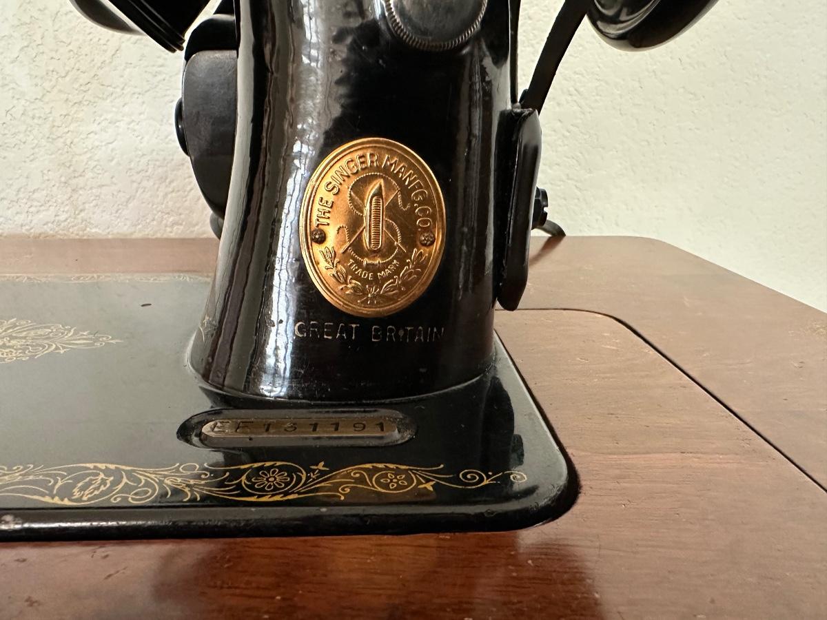 VINTAGE SINGER ELECTRIC SEWING MACHINE MODEL 99K HOUSED INSIDE SINGER WOODEN FOLD OUT CABINET