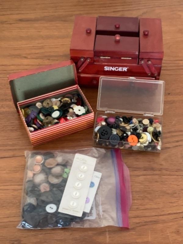 Lot 71 - Vintage Singer Sewing Box and Vintage Buttons