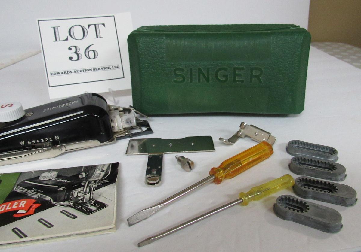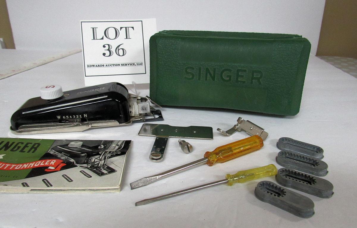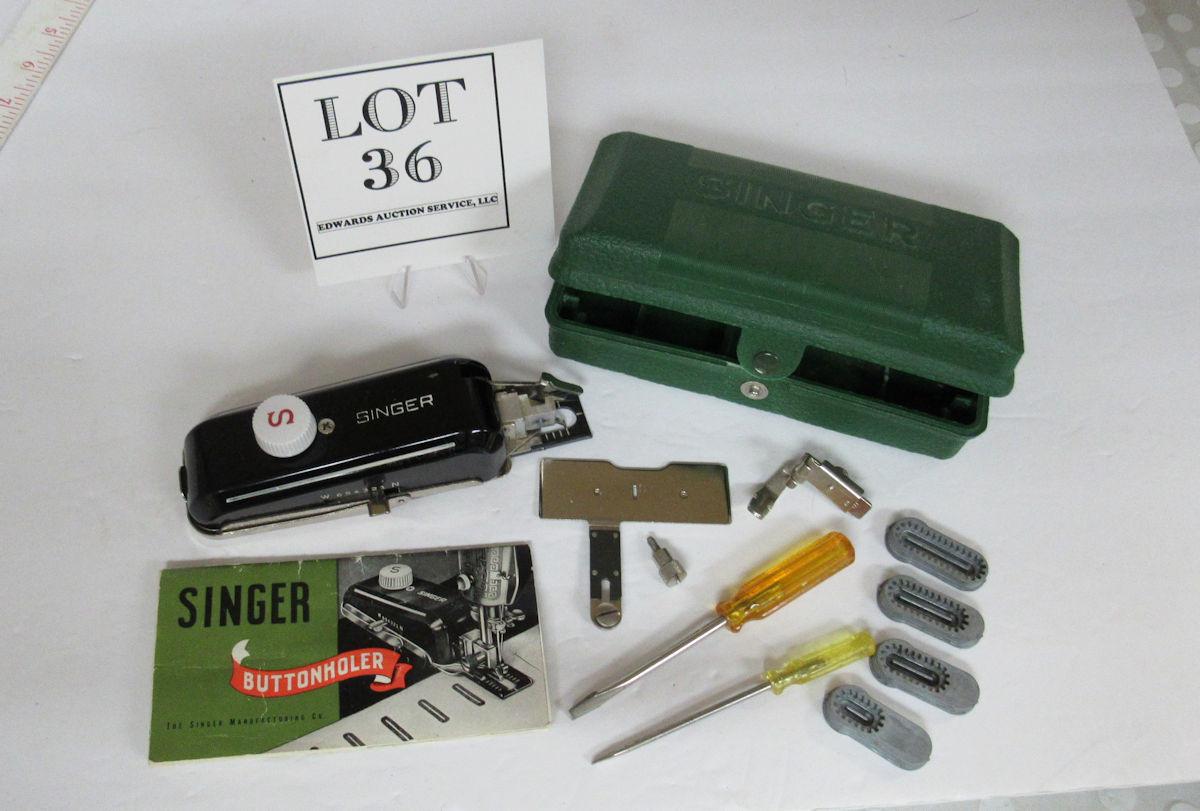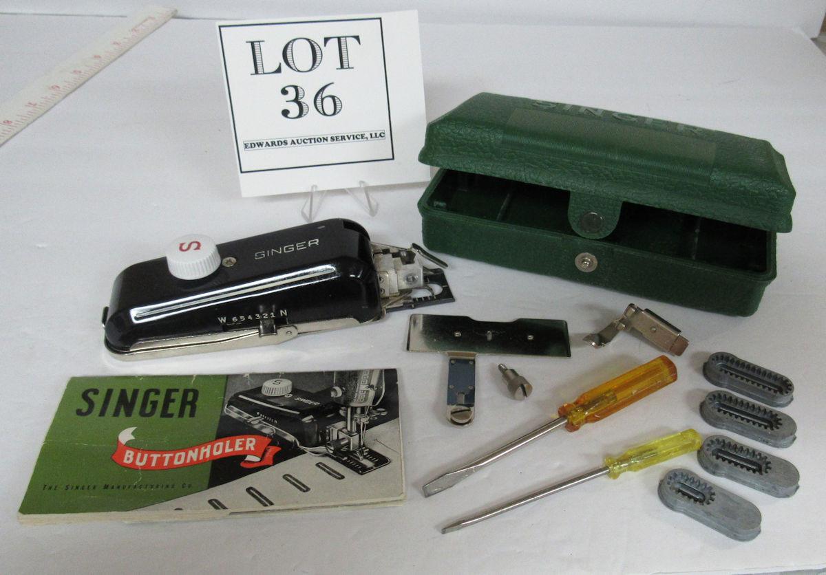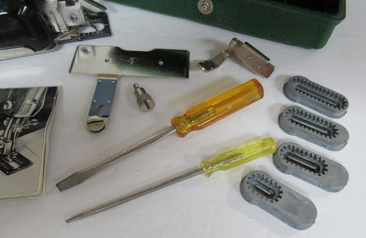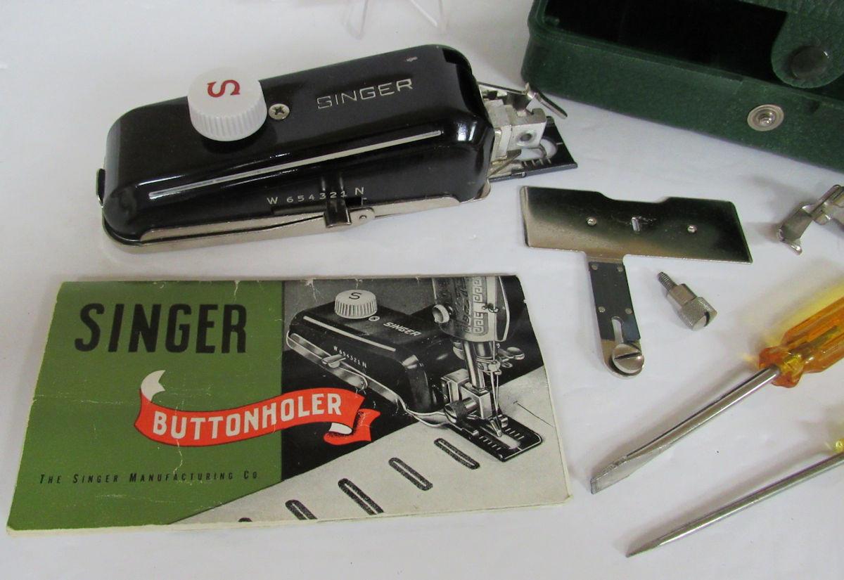 Vintage Singer Sewing Buttonholer With Booklet, Templates, Feeder Cover and Screwdrivers In Original Box