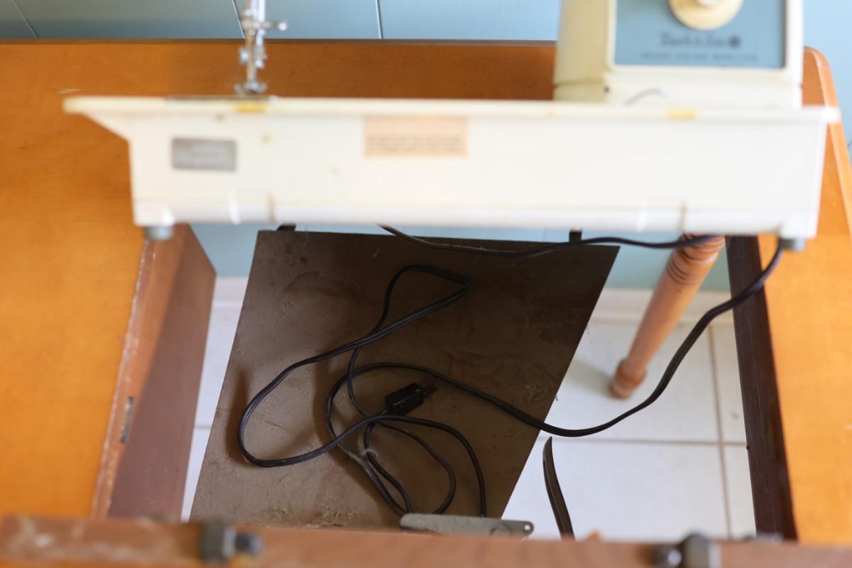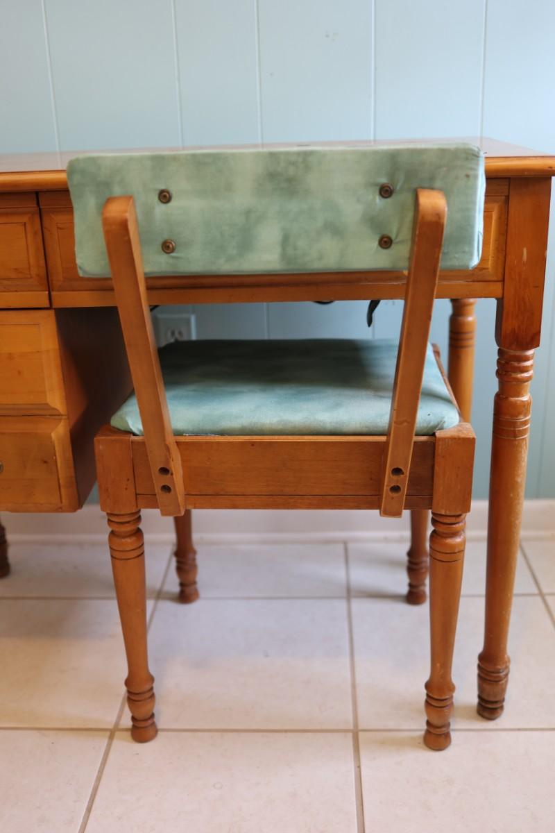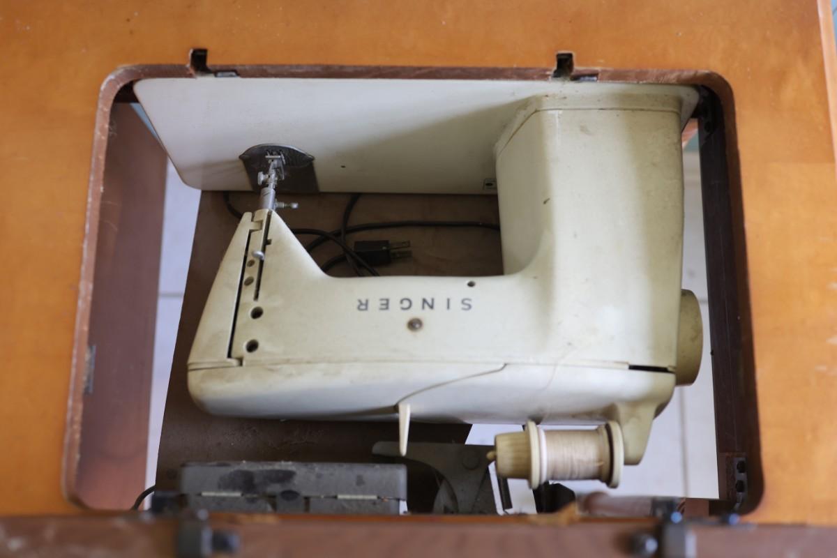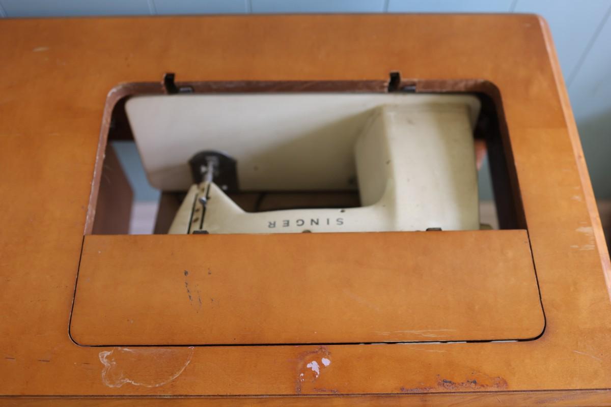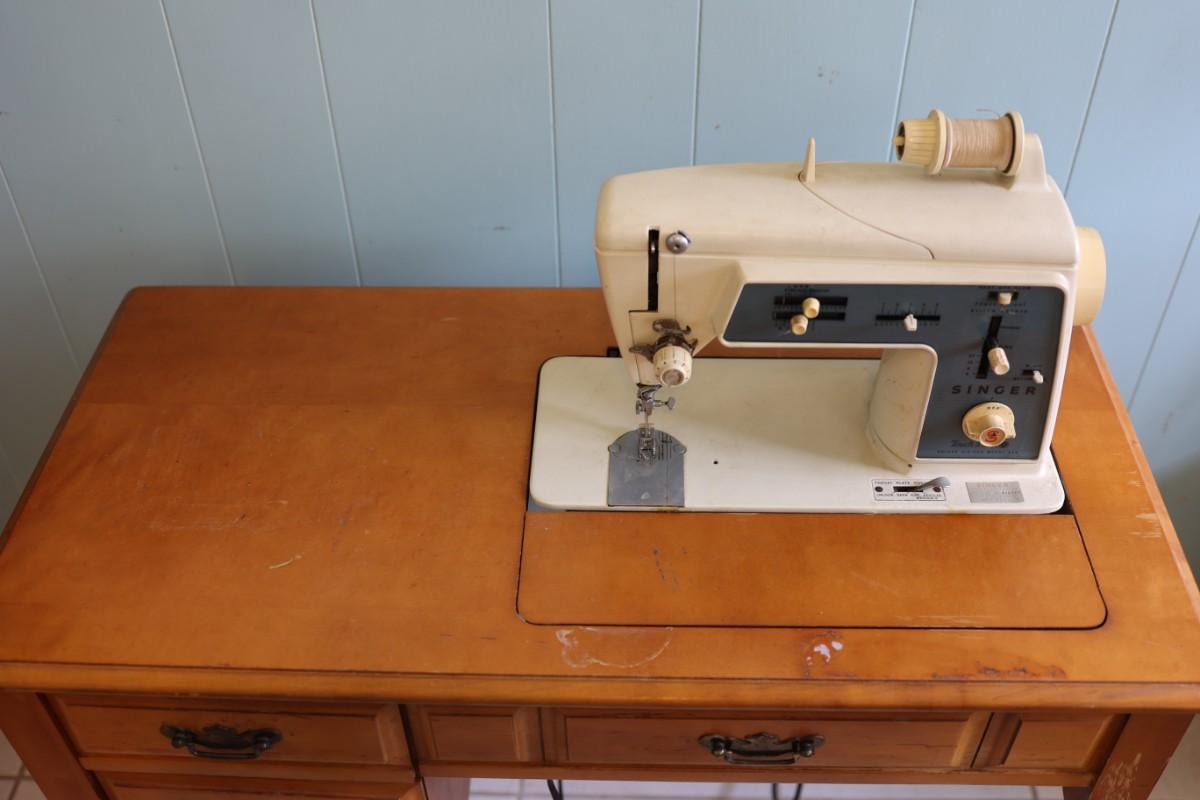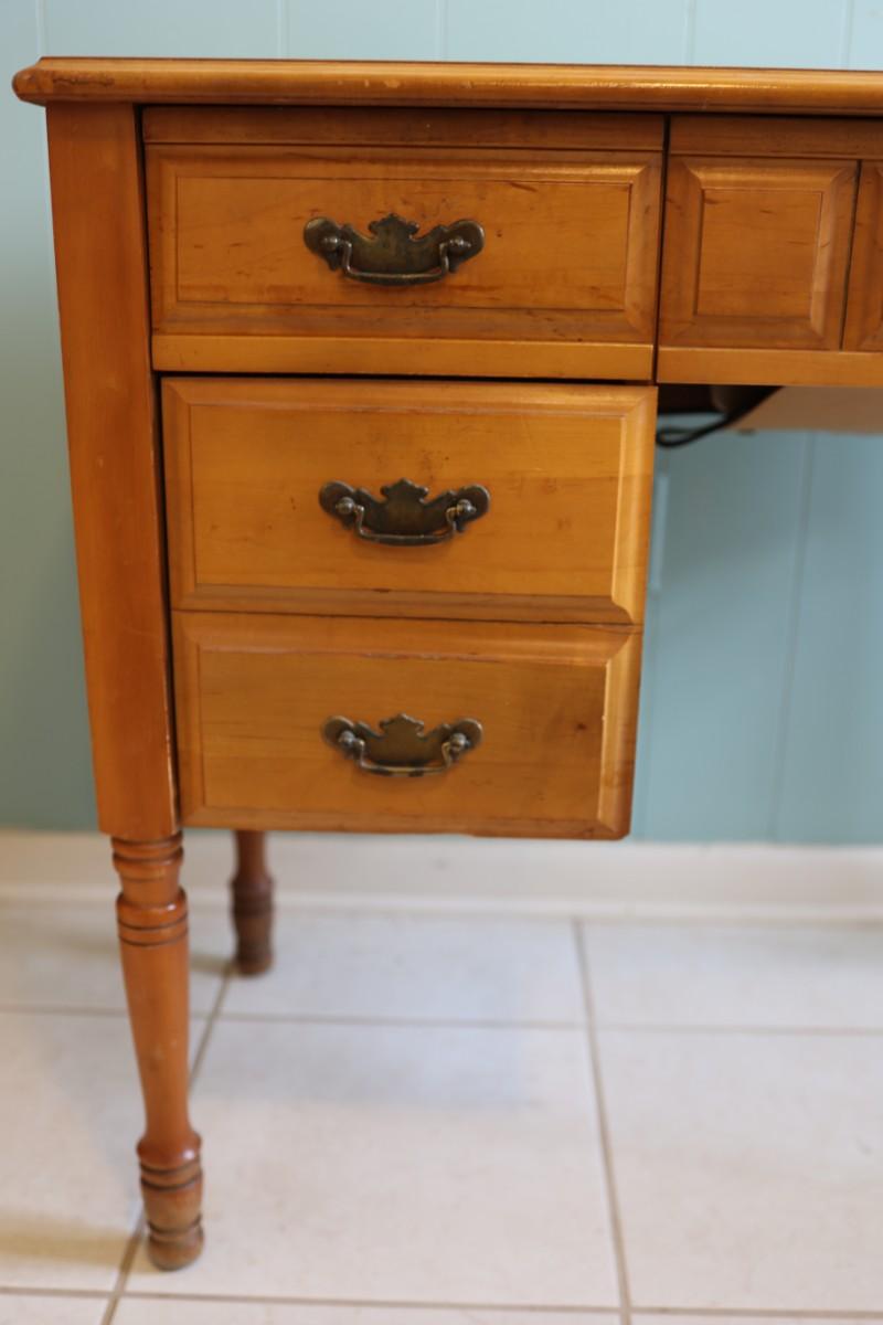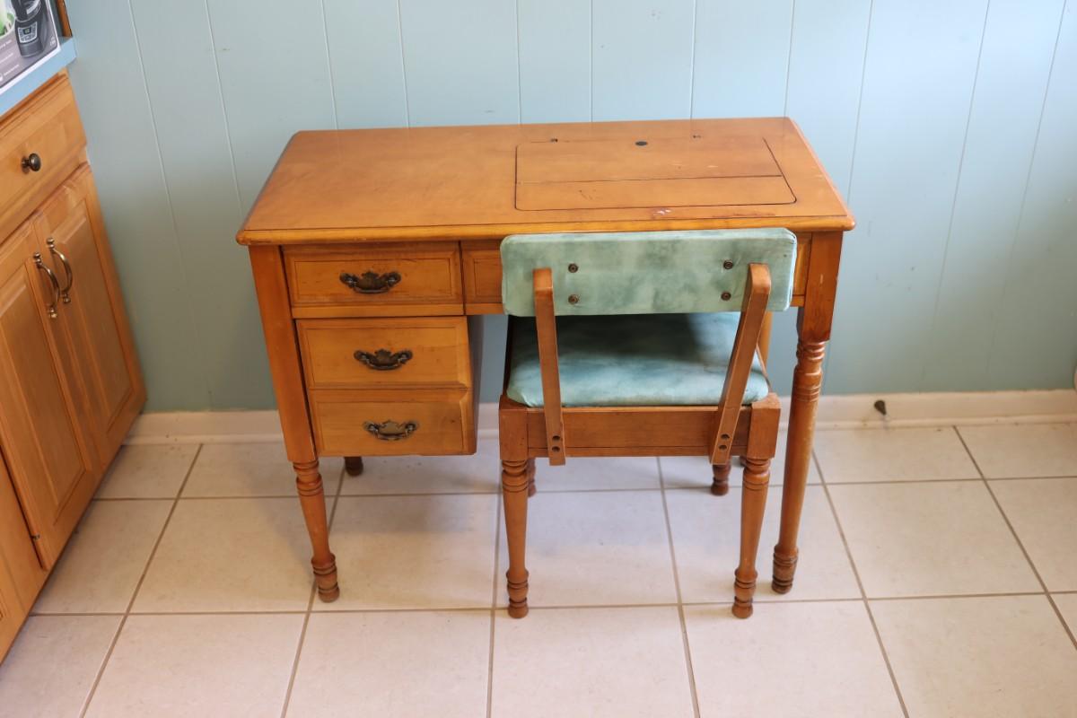 Sewing machine comes out and could be used as a desk. Three drawer.