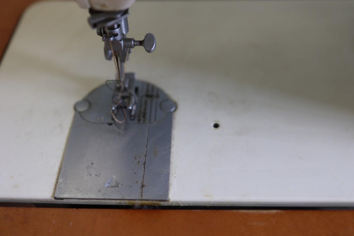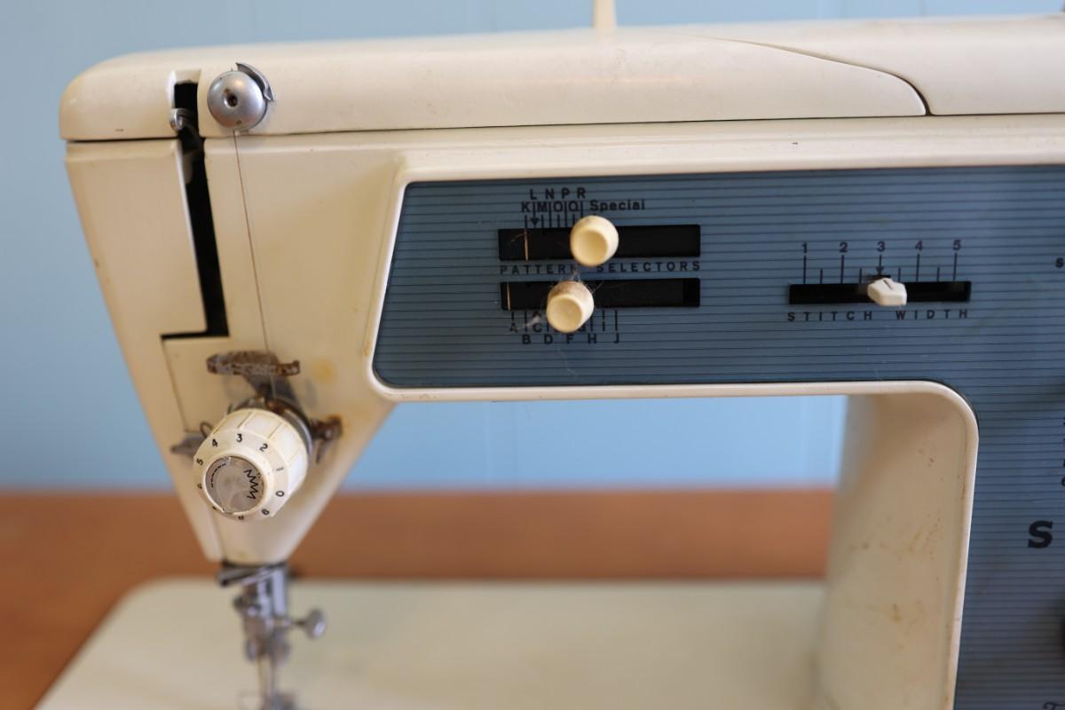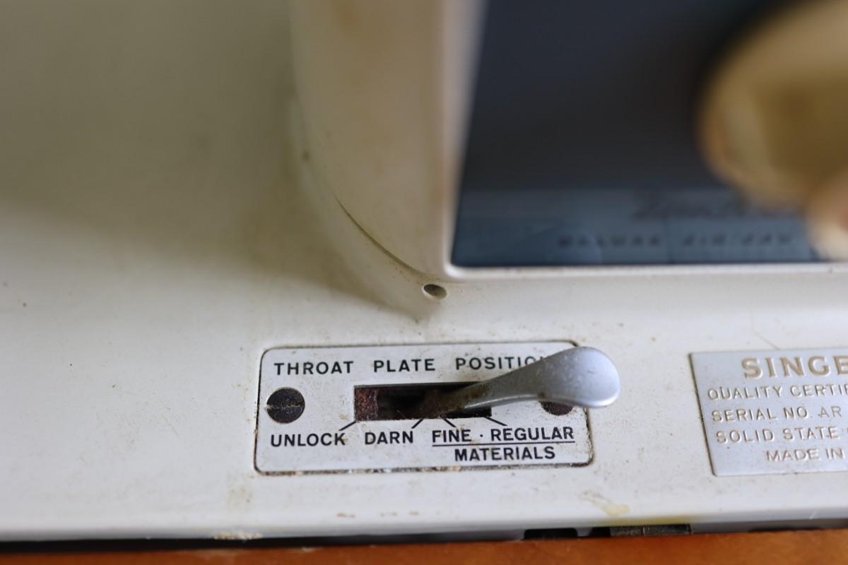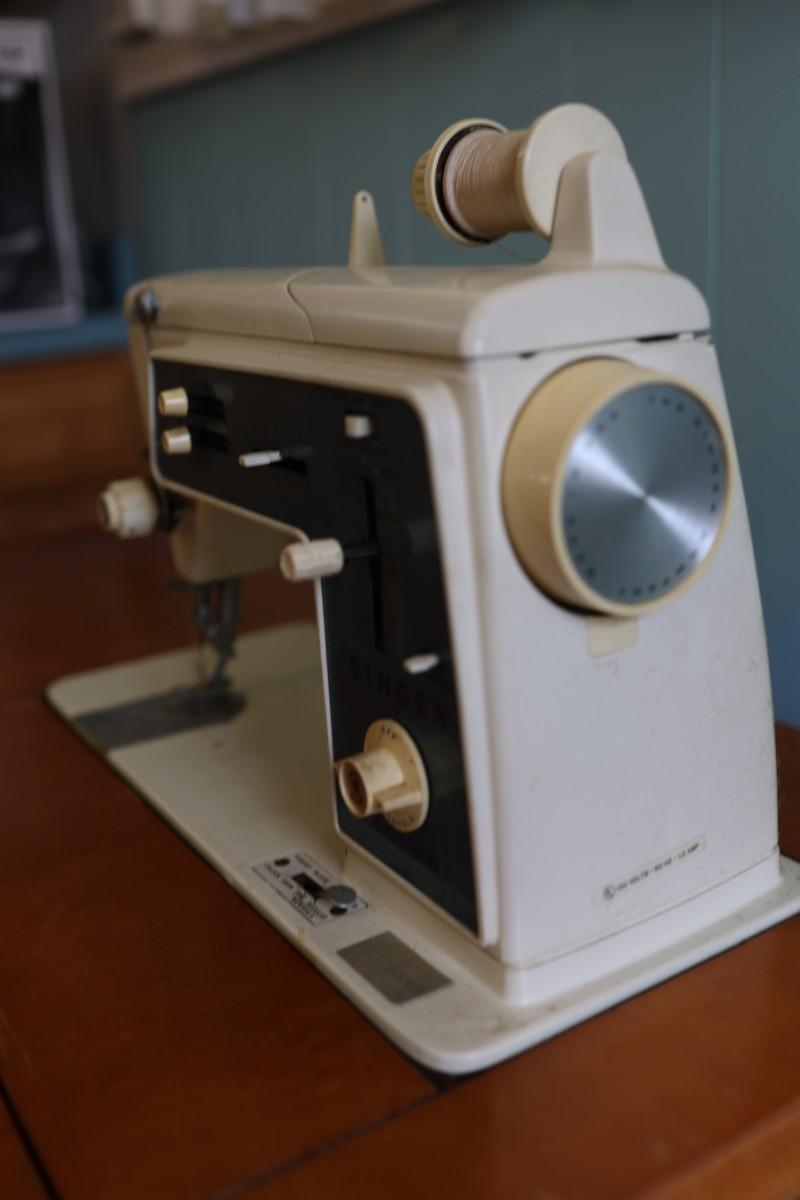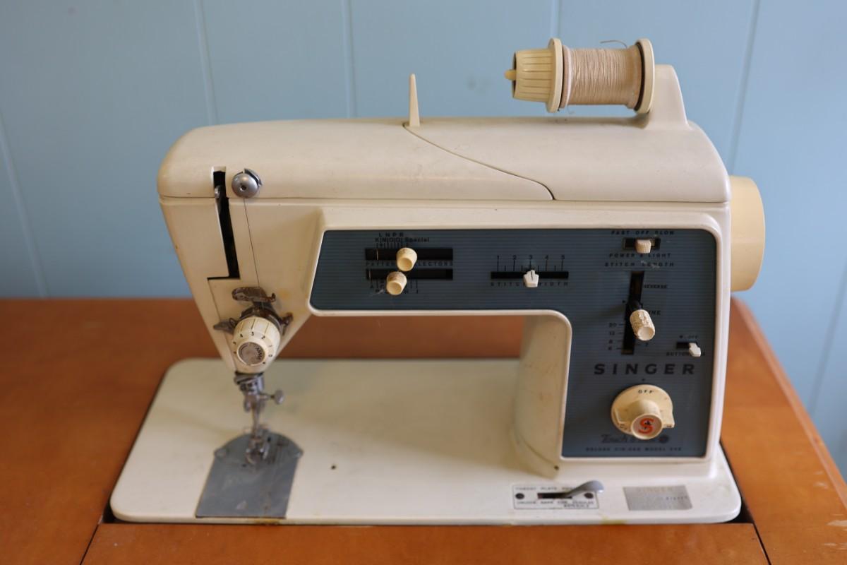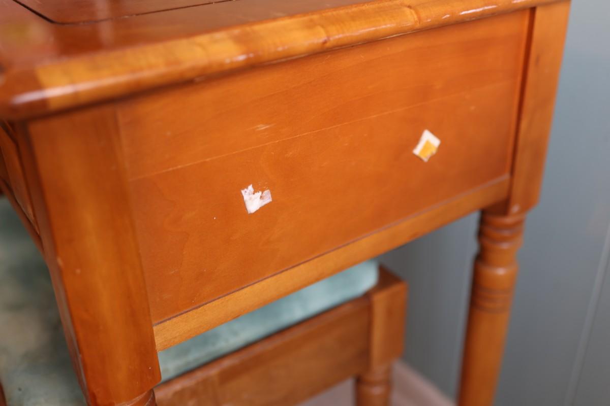 Sewing machine comes out and could be used as a desk. Three drawer.