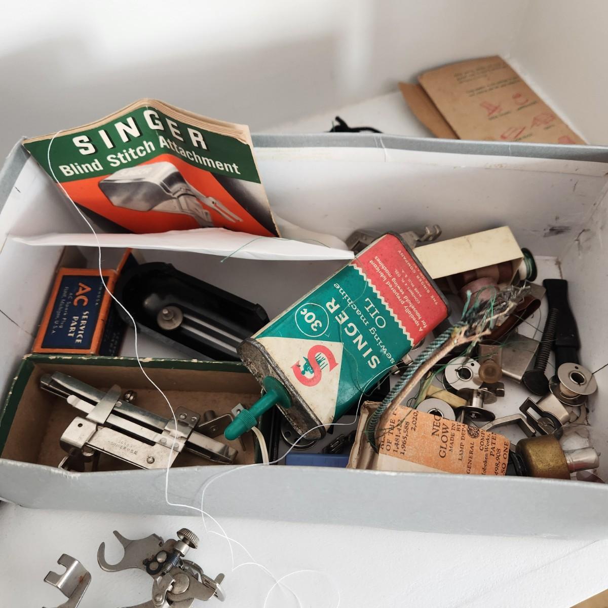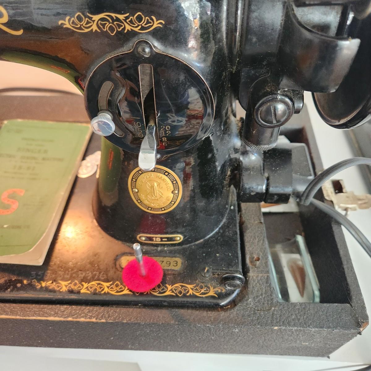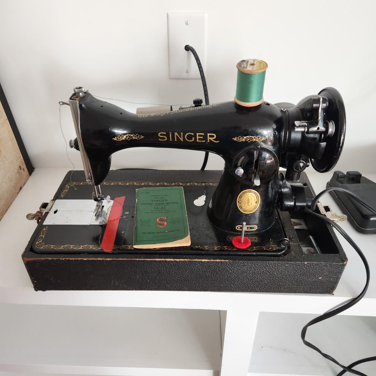 Vintage Singer Sewing Machine Model 15 w Accessories & Case Powers up running