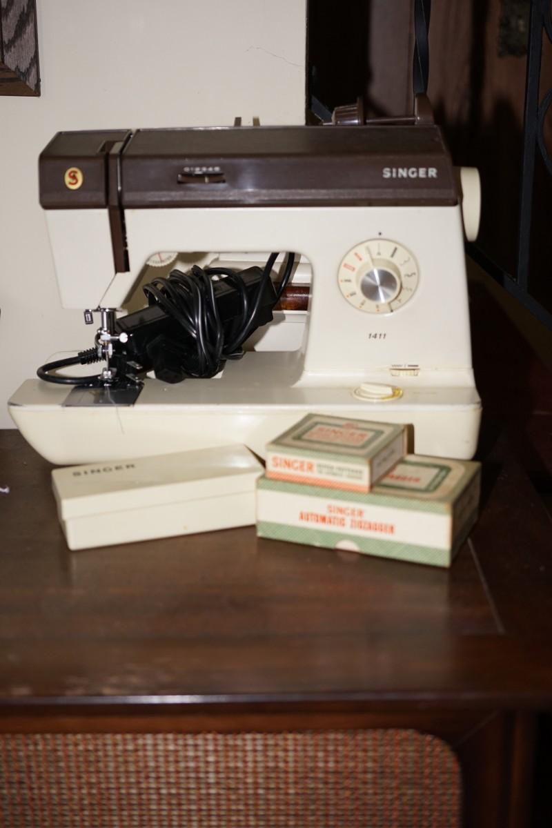 VINTAGE SINGER SEWING MACHINE MODEL 1411 W/ ATTACHMENTS &CARRYING CASE