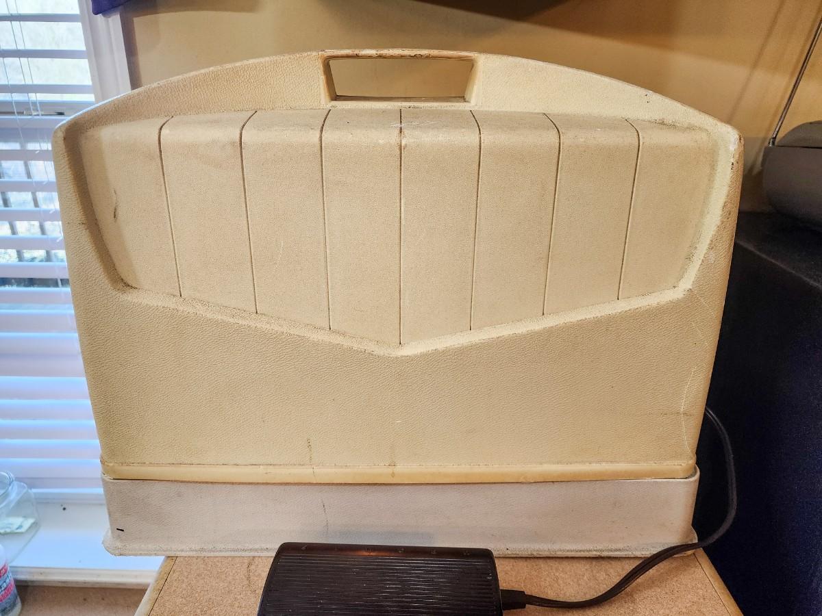 I am told this machine is working, but I lack the expertise to be certain. It is a good, heavy machine, the case has seen better days. Item must be tested before it is removed from the home. If found not to be in good, working condition, a refund will be issued.