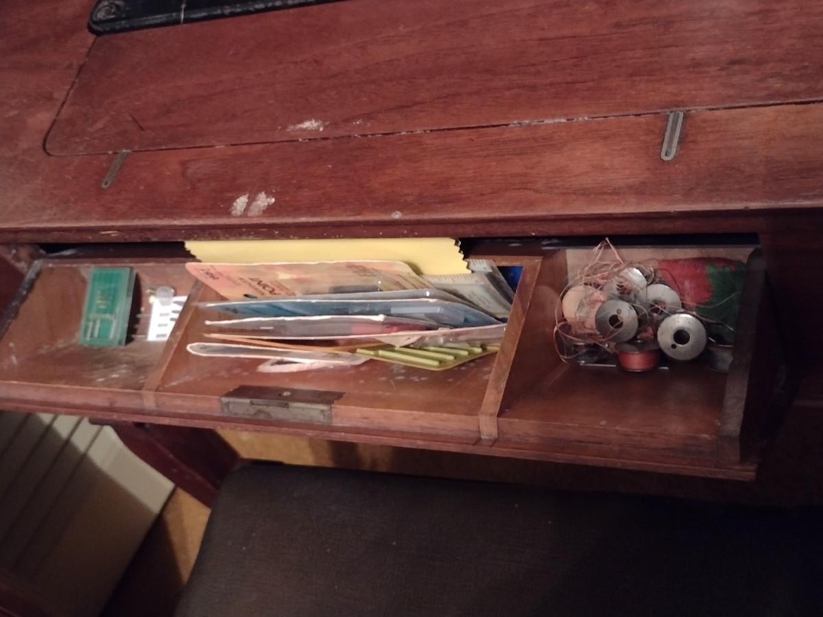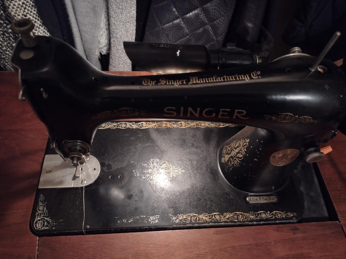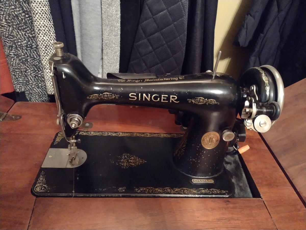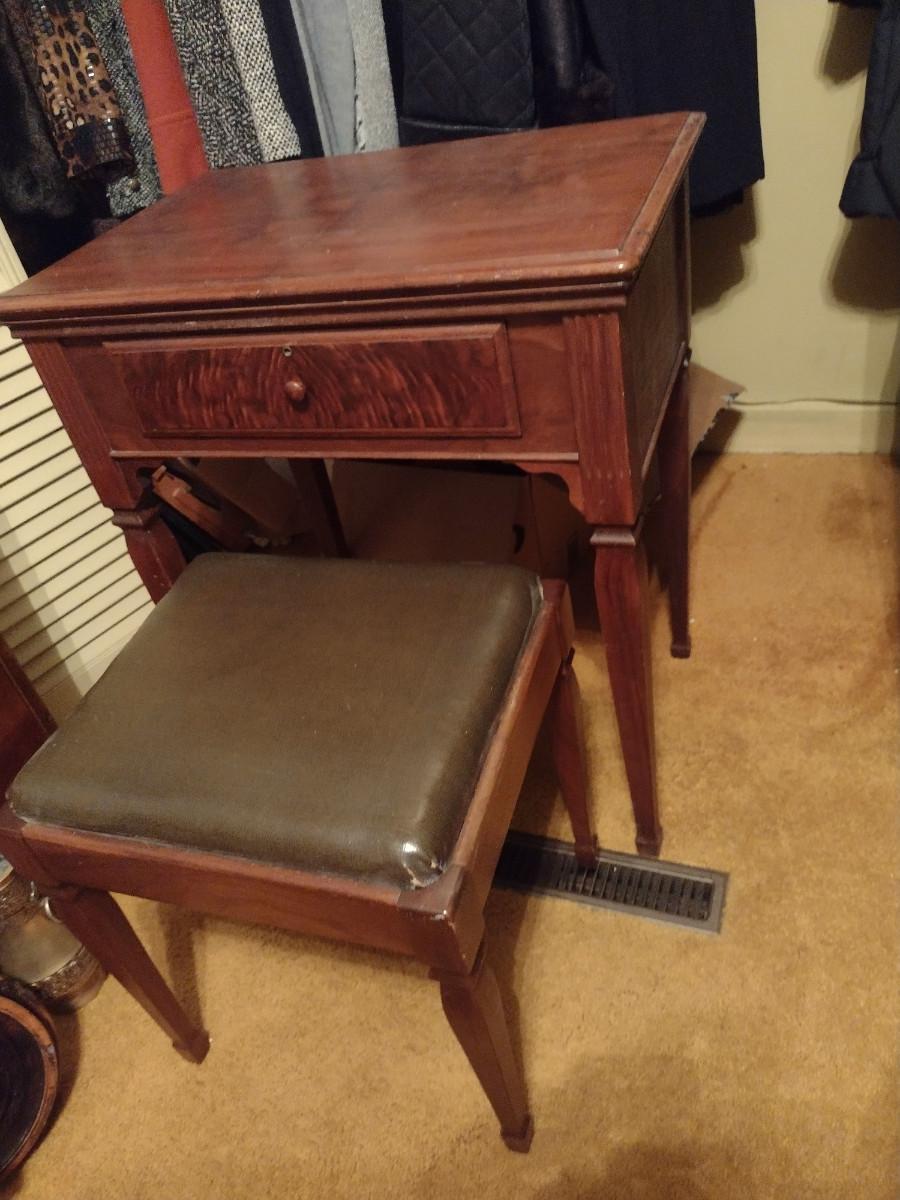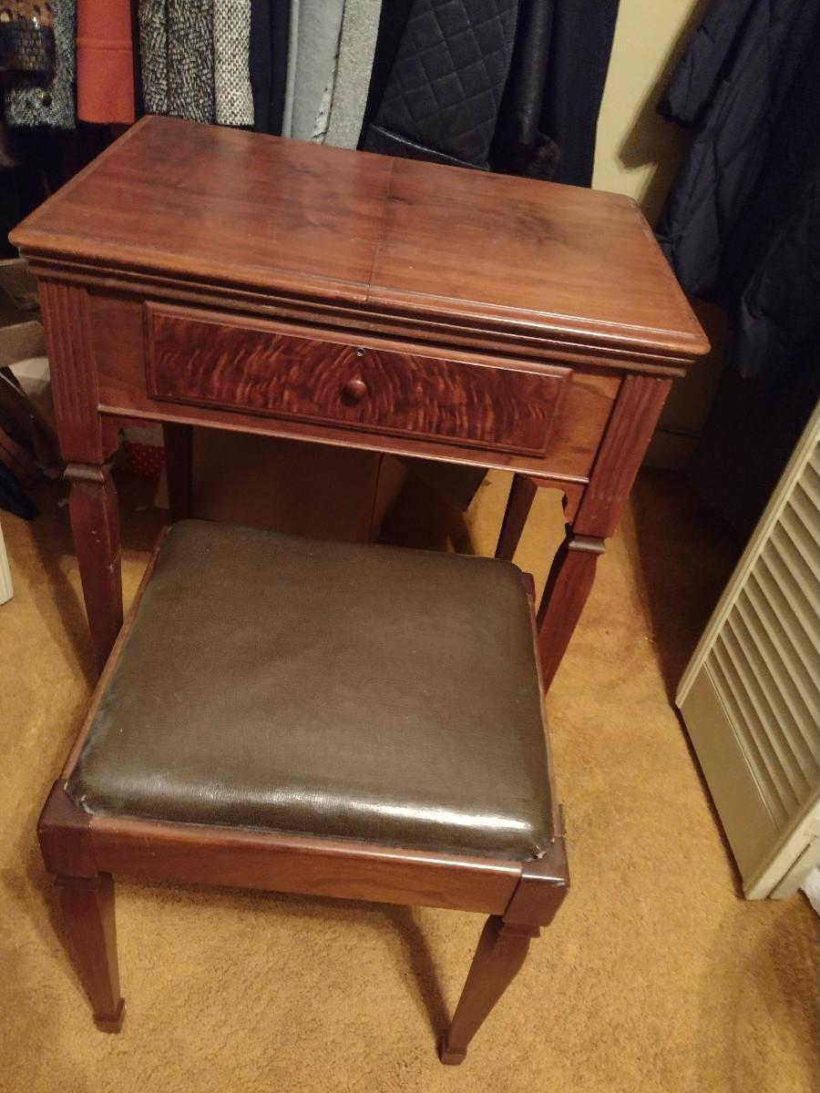Vintage Singer Sewing Machine with Cabinet and Bench