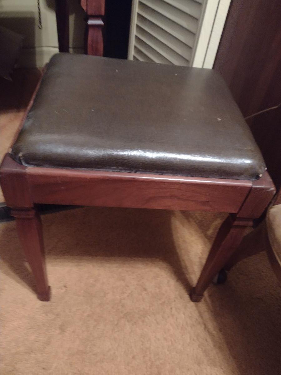 Vintage Singer Sewing Machine with Cabinet and Bench. Machine powers on and appears to be in working condition. Model AD450454.