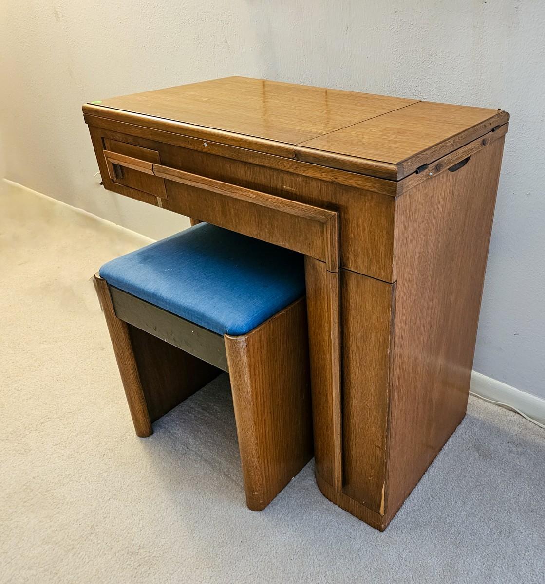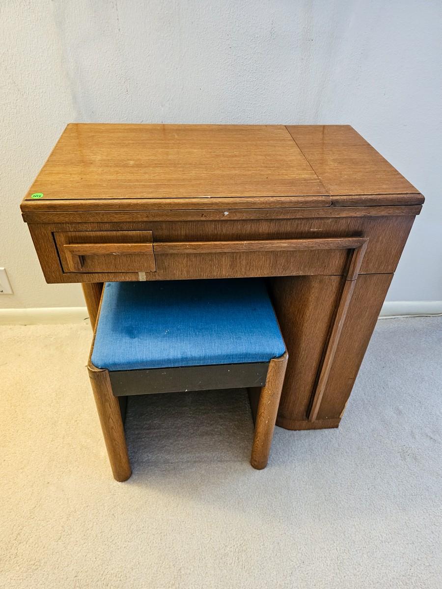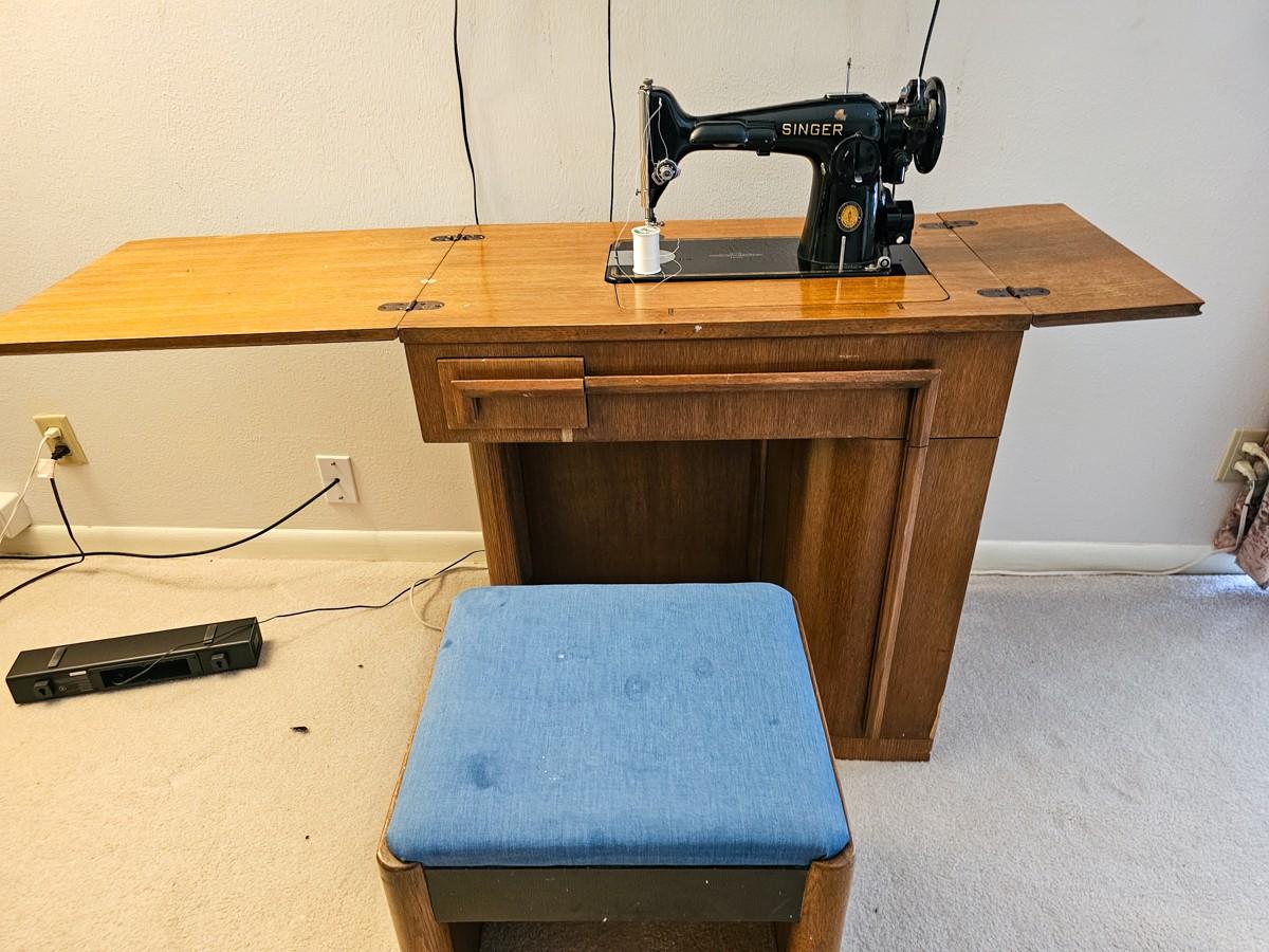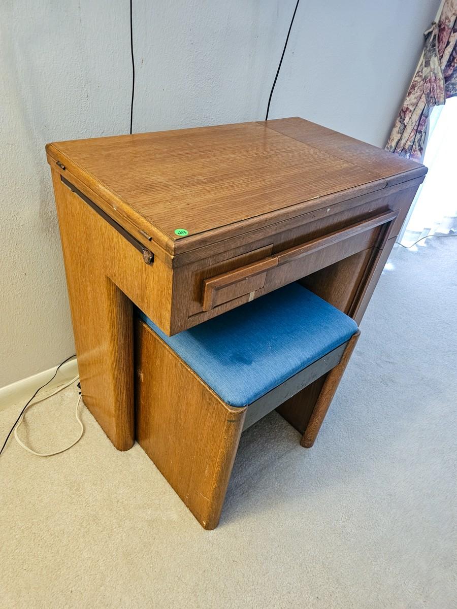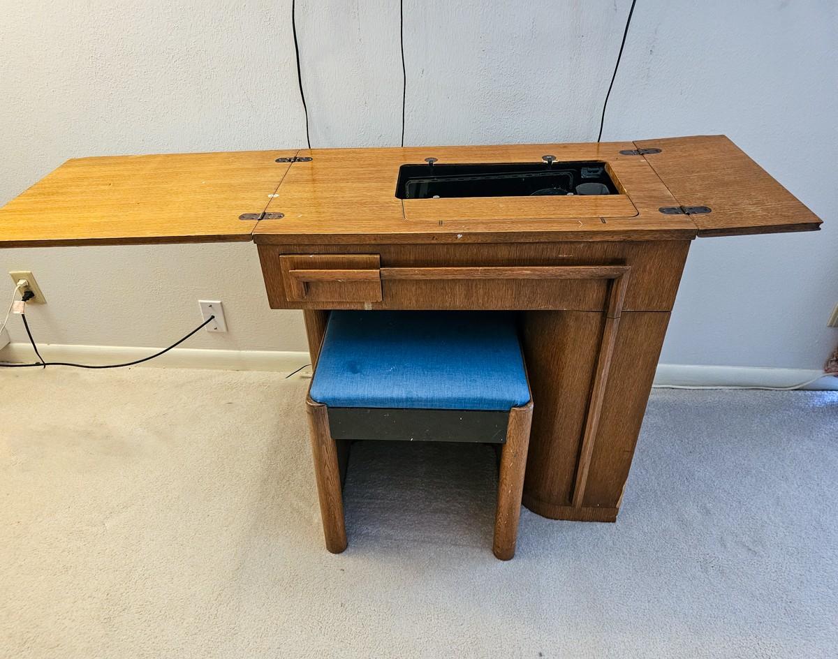 Vintage Singer Sewing Machine with Cabinet and Stool