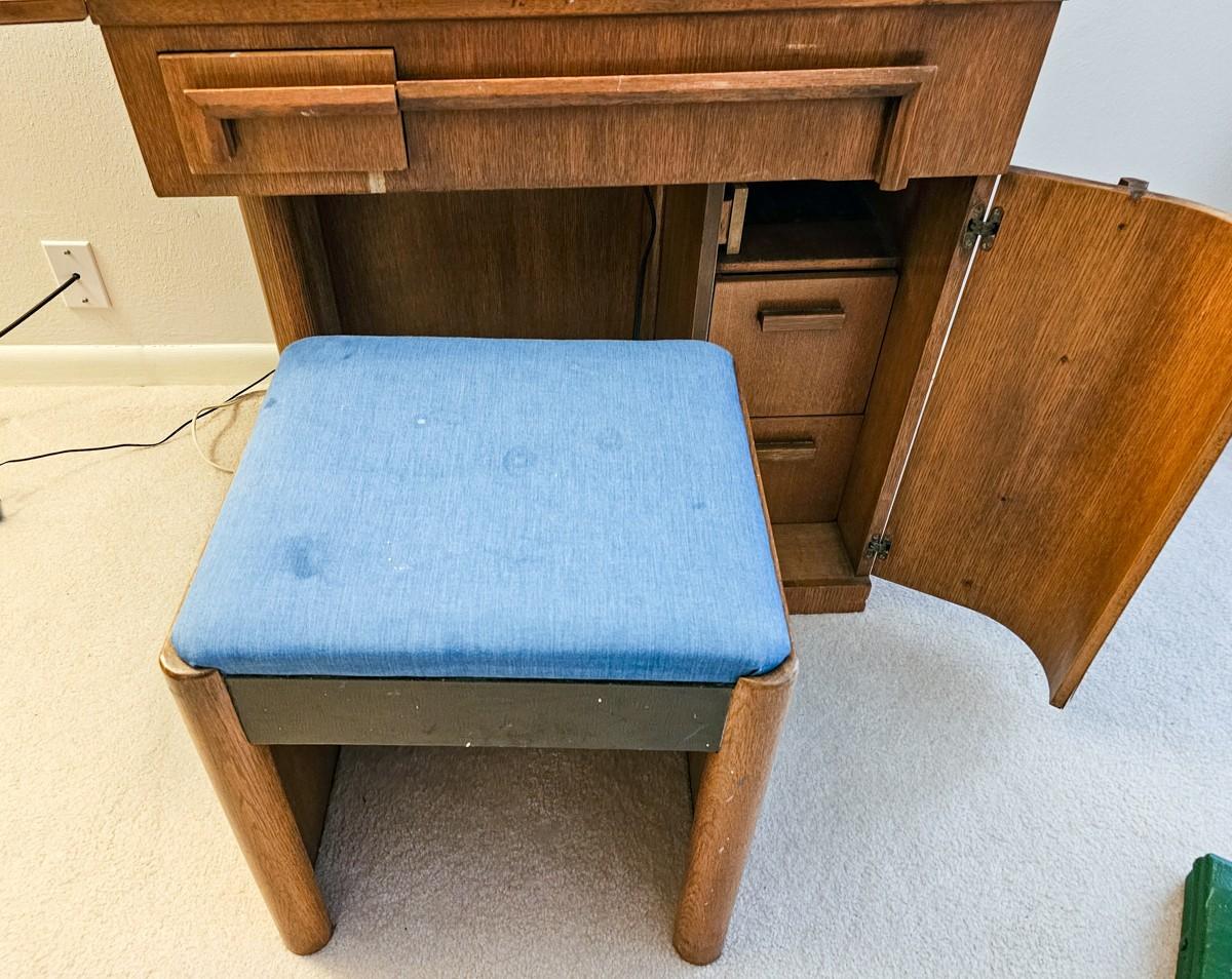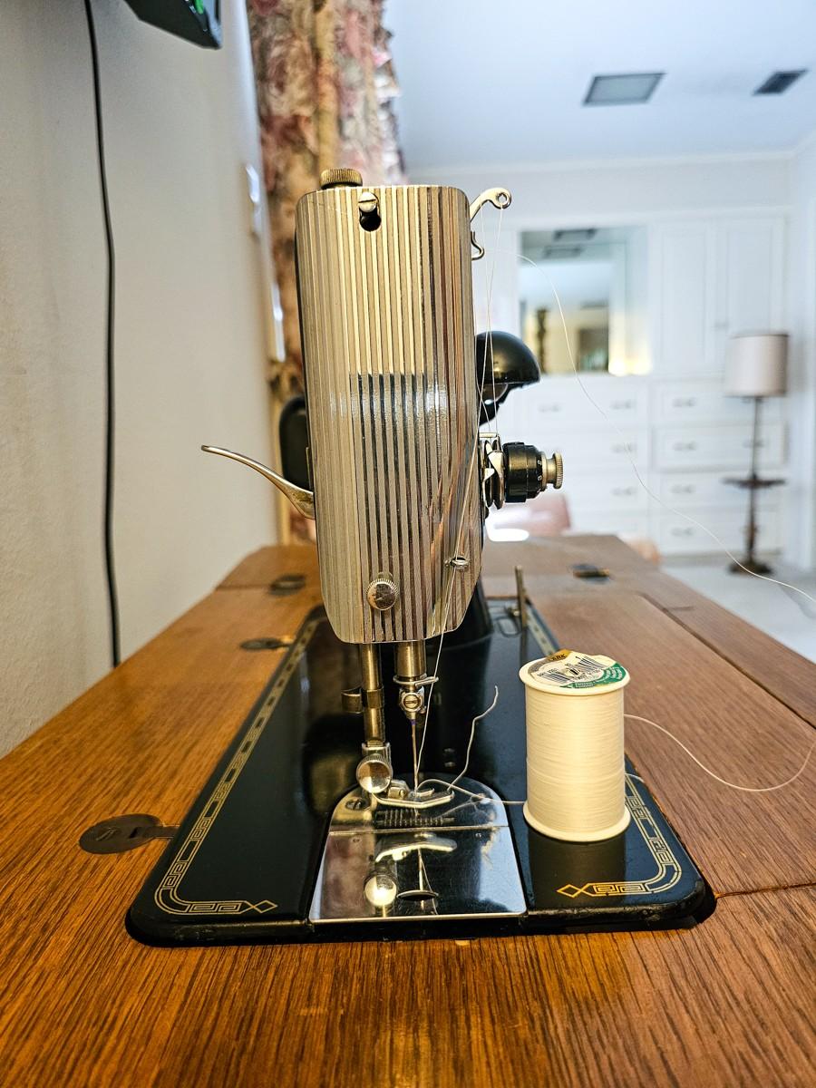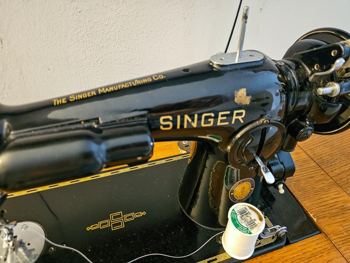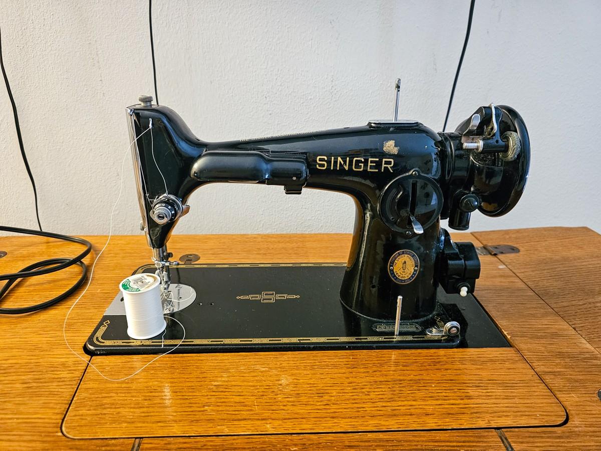 Vintage Singer Sewing Machine with Cabinet and Stool