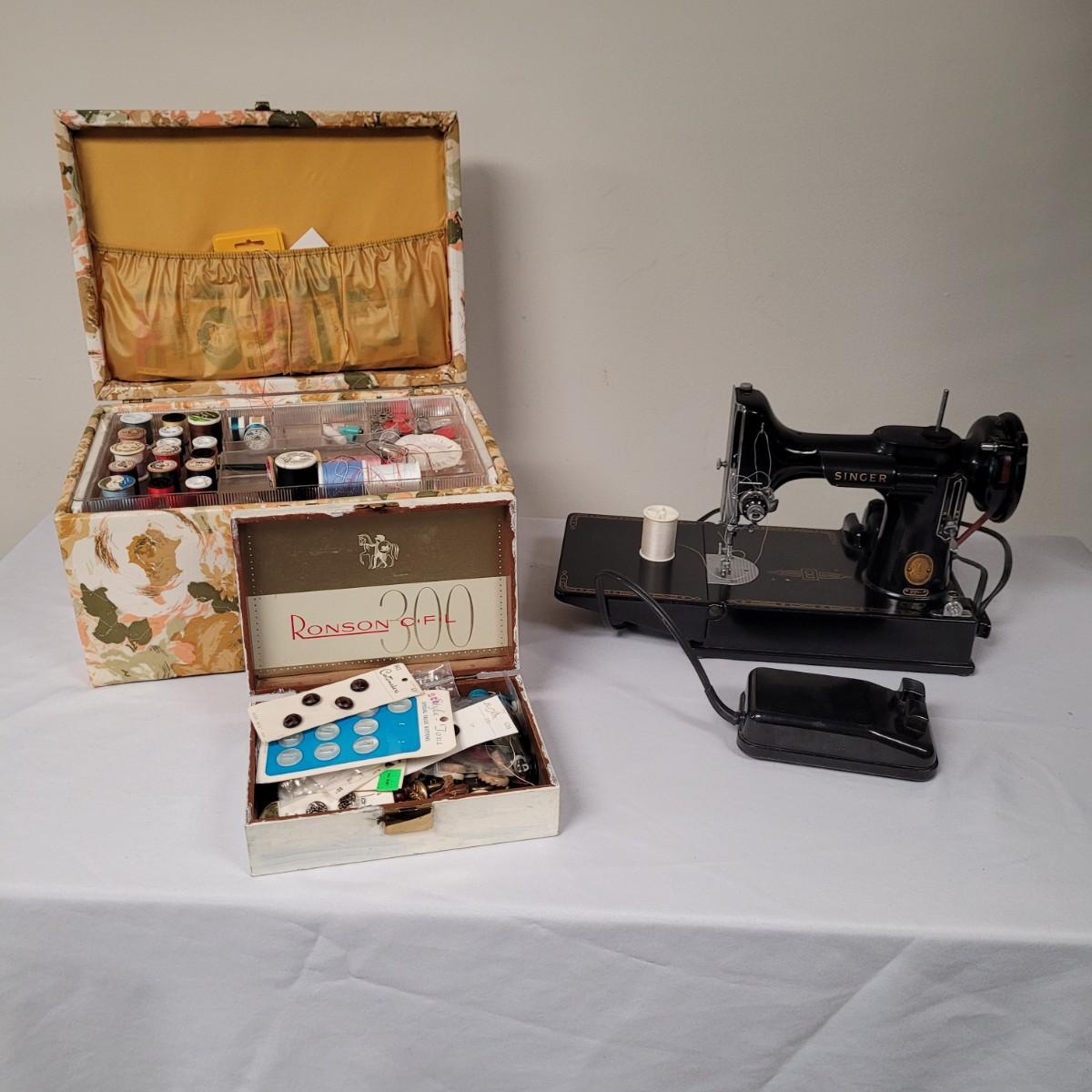 Vintage Singer 221 Featherweight Sewing Machine with Accessories (J-CE)