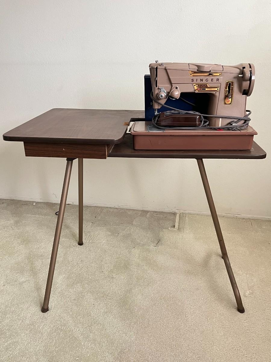 Vintage Singer Style-O-Matic 328 Sewing Machine with Lightweight Wood Metal Sewing Crafting Table