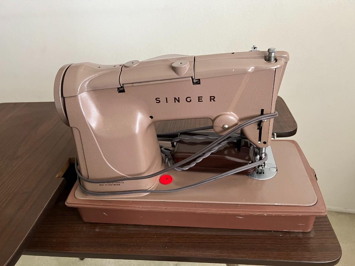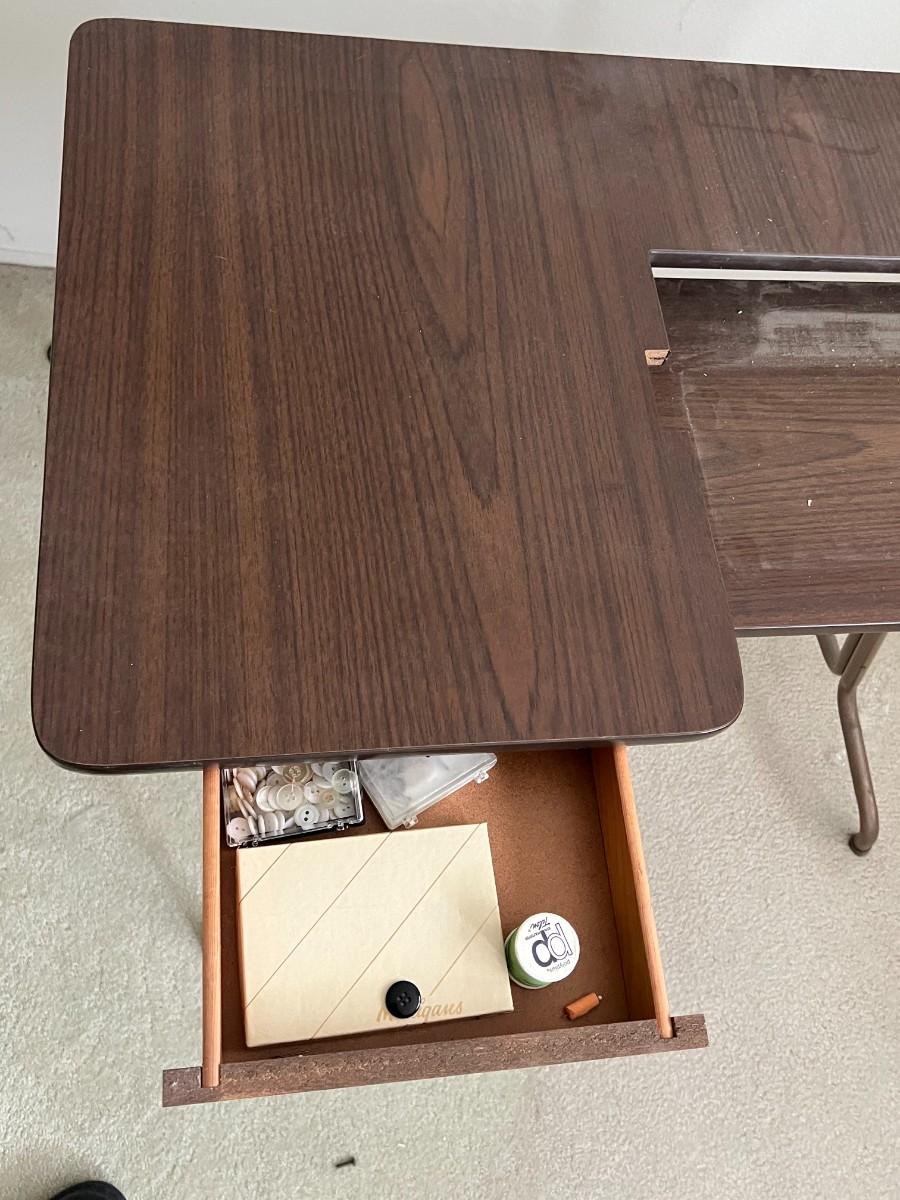 There is some vintage wear to the table, but there is no significant damage to the sewing machine and is in overall good collectible condition. The machine has not been plugged in and tested, comes with a reproduction copy of the manual. Check pictures for more details and for sizing.