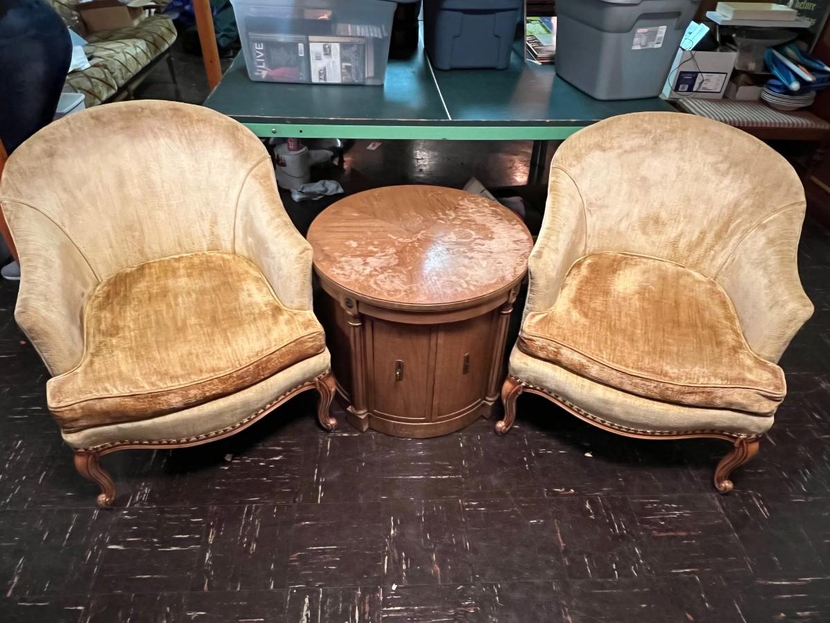 Vintage Sitting Chairs with Round Side Table