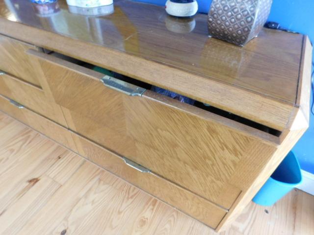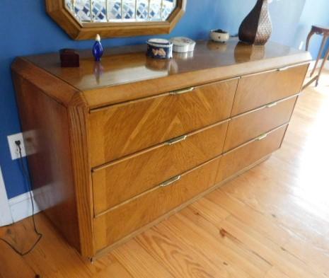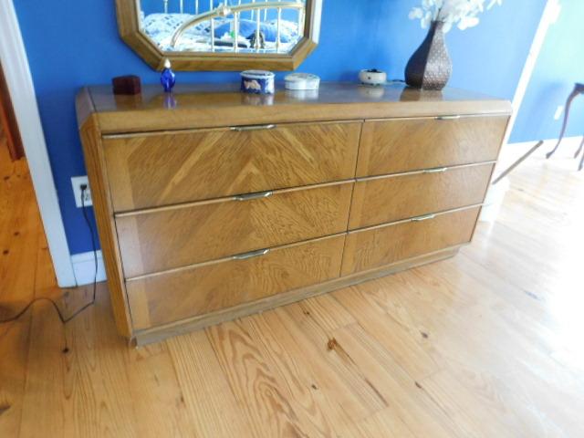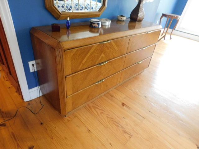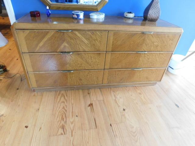 Vintage Six Drawer Dresser 60"x18"x29" expect some wear and scratches. Has sleek appearance.