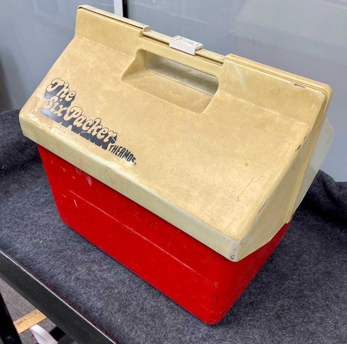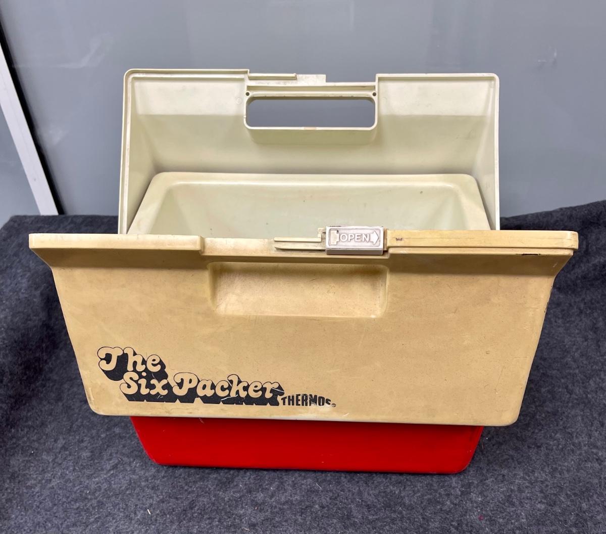 Vintage Retro The Six Packer Ice Chest Cooler Red & White Thermos Brand