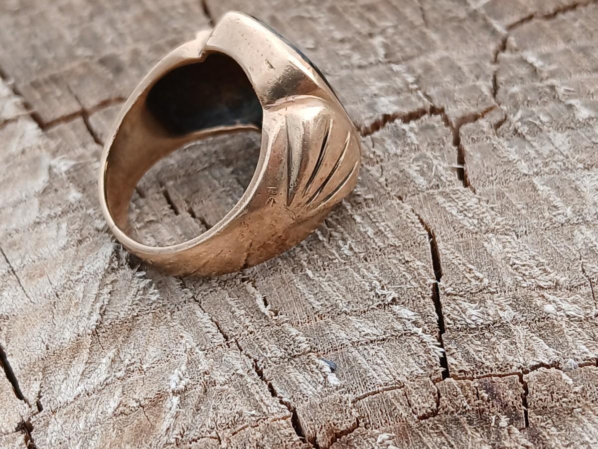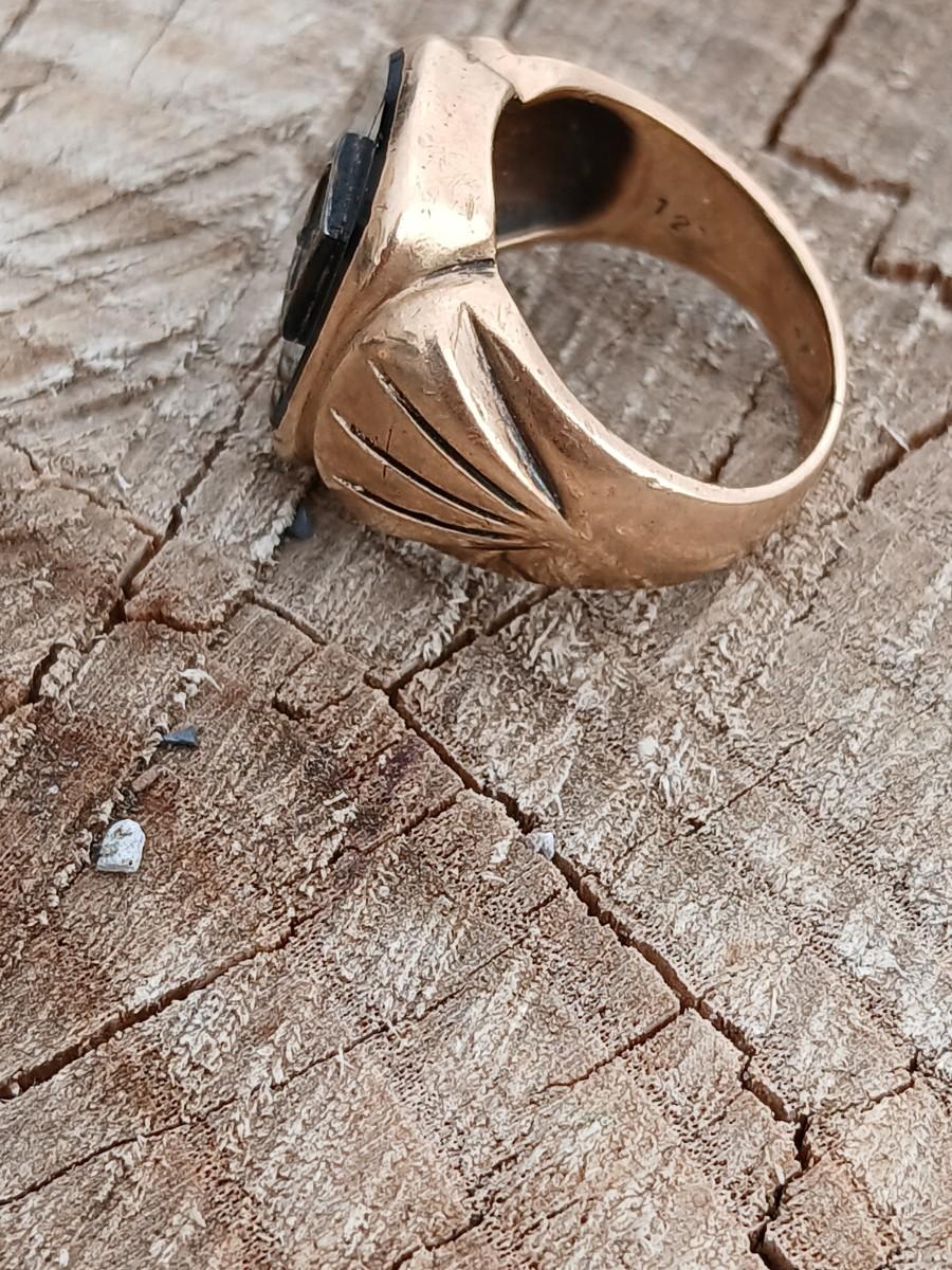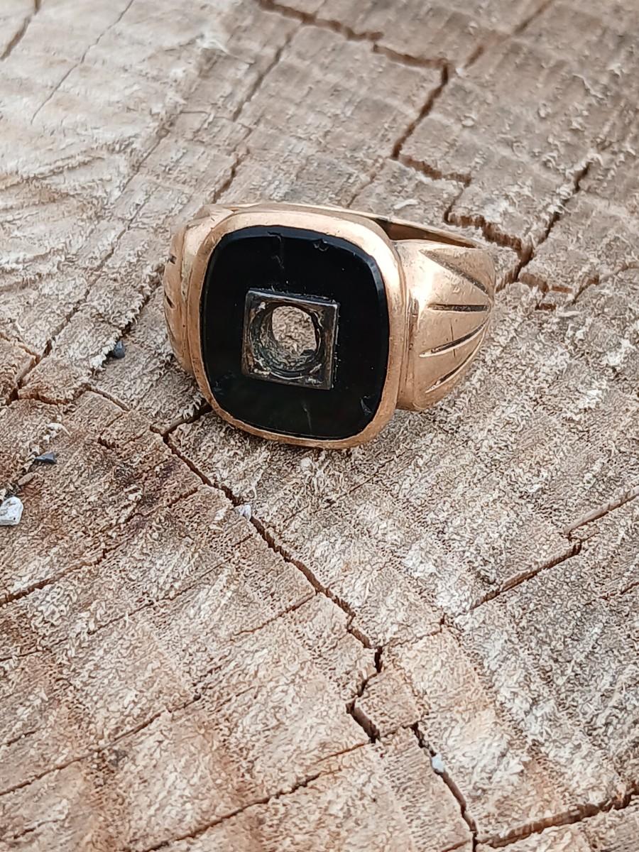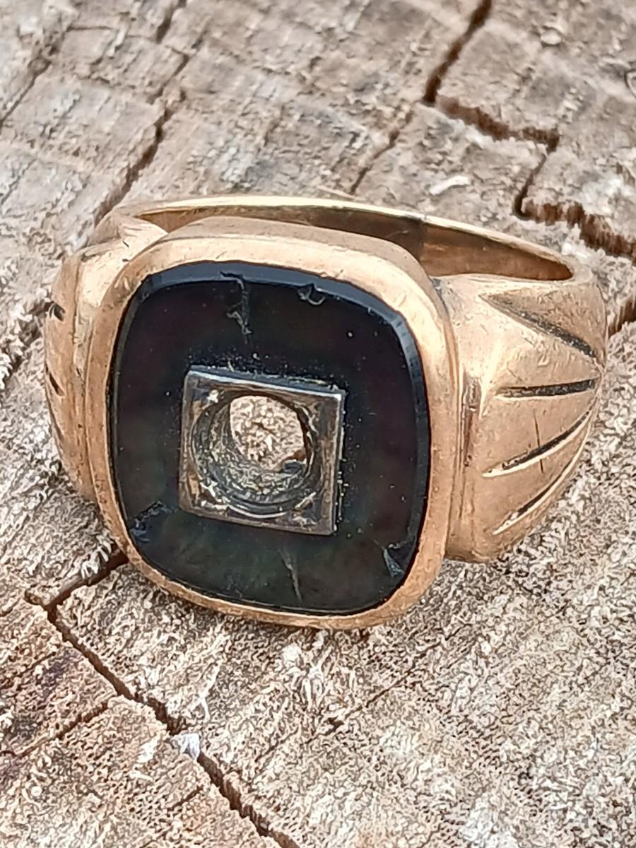 Vintage Size 7.5 men's Onyx ring marked 12 - and two vintage collectible tie clips - Balfour pickup truck & Swank blue gemstone
