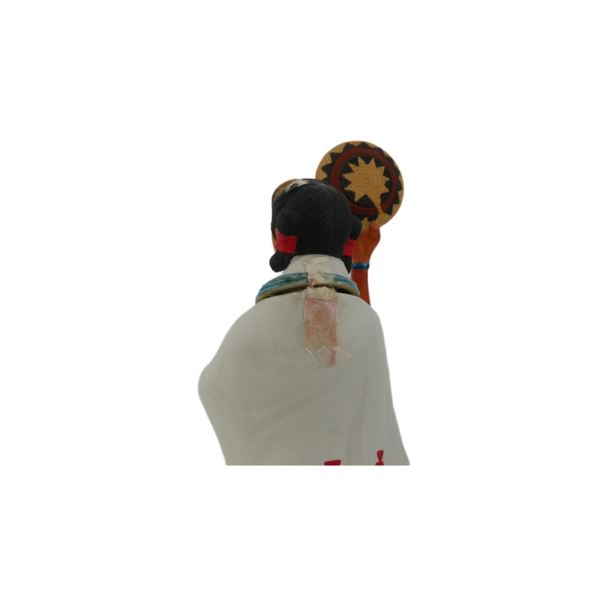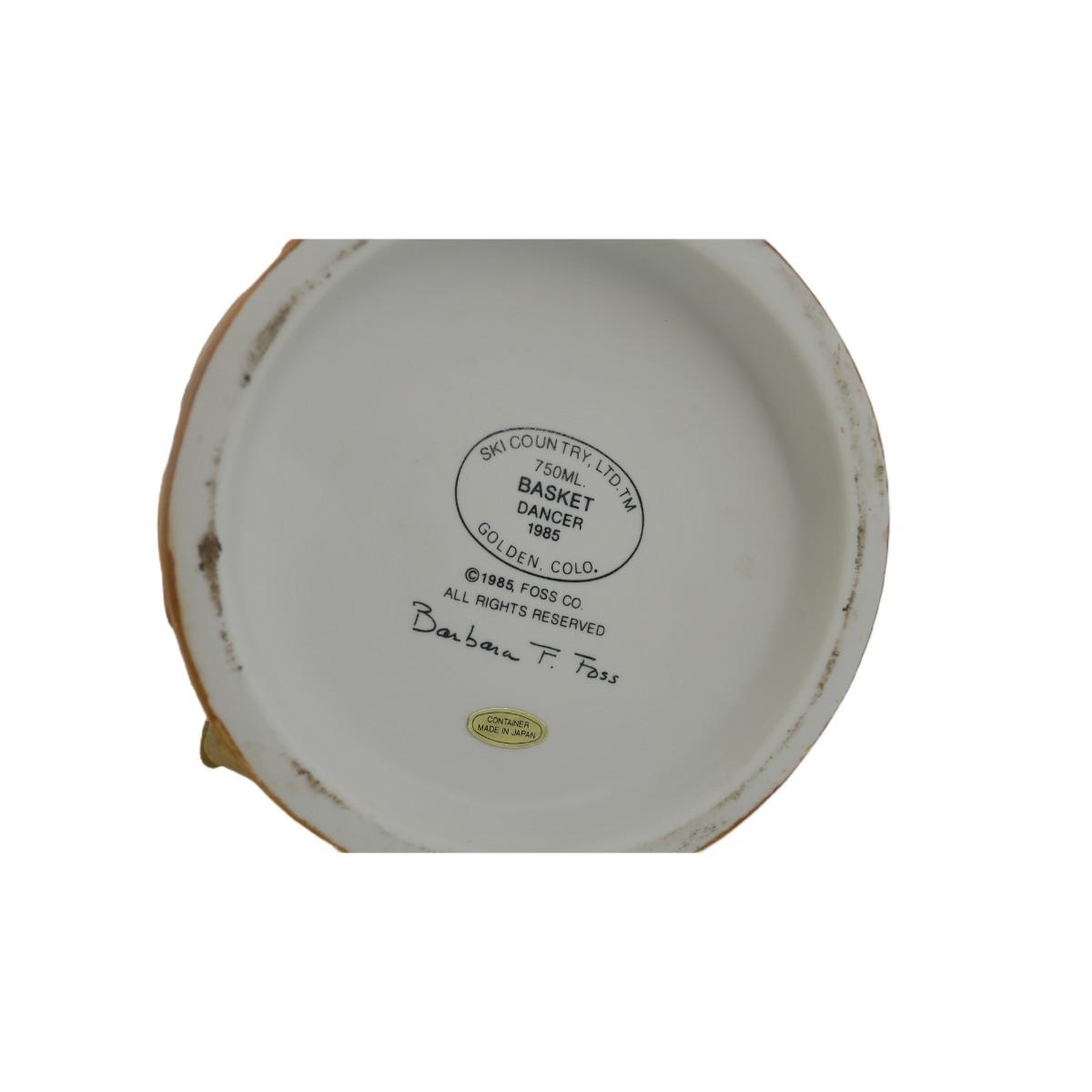 Vintage limited edition Native American woman "Basket Dancer" 1985 Ski Country Kentucky straight bourbon whiskey ceramic decanter. Bottle is empty and lid is sealed shut. This piece is for decorative purposes only. Has some paint issues, overall good condition. Measures L 5" x H 13.5". Weighs 1 lb 14 oz. (C110)