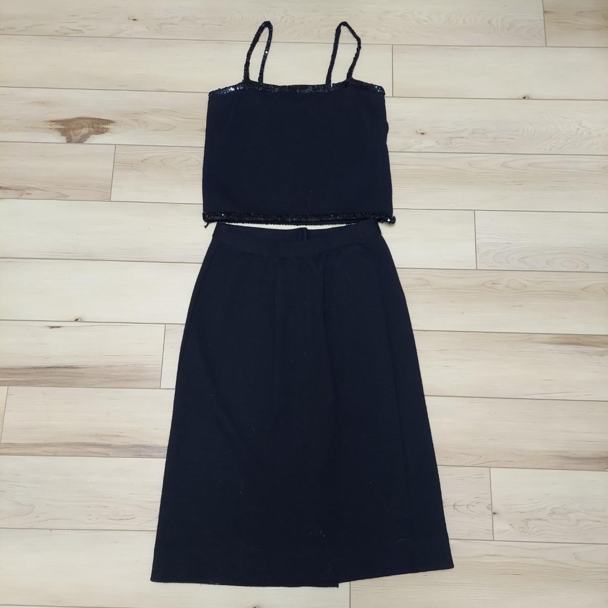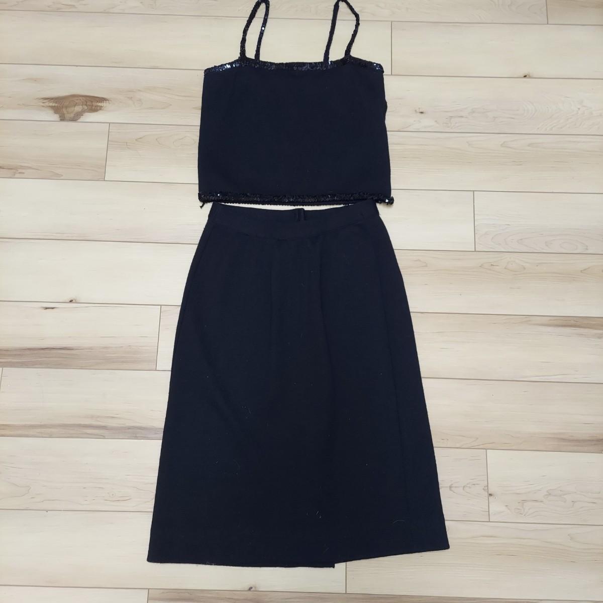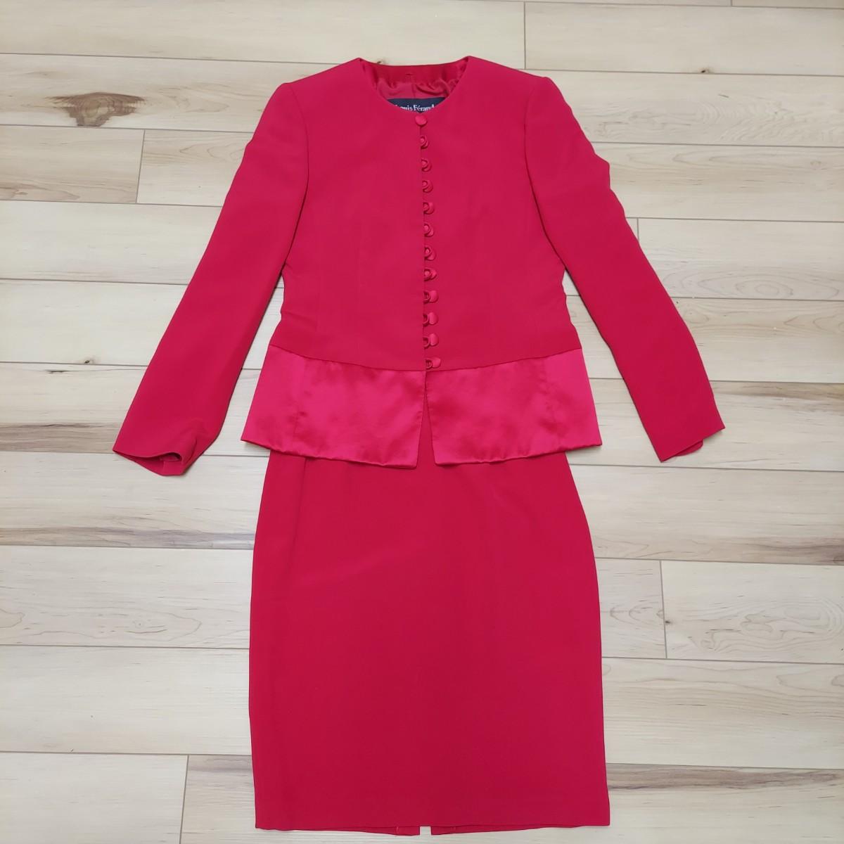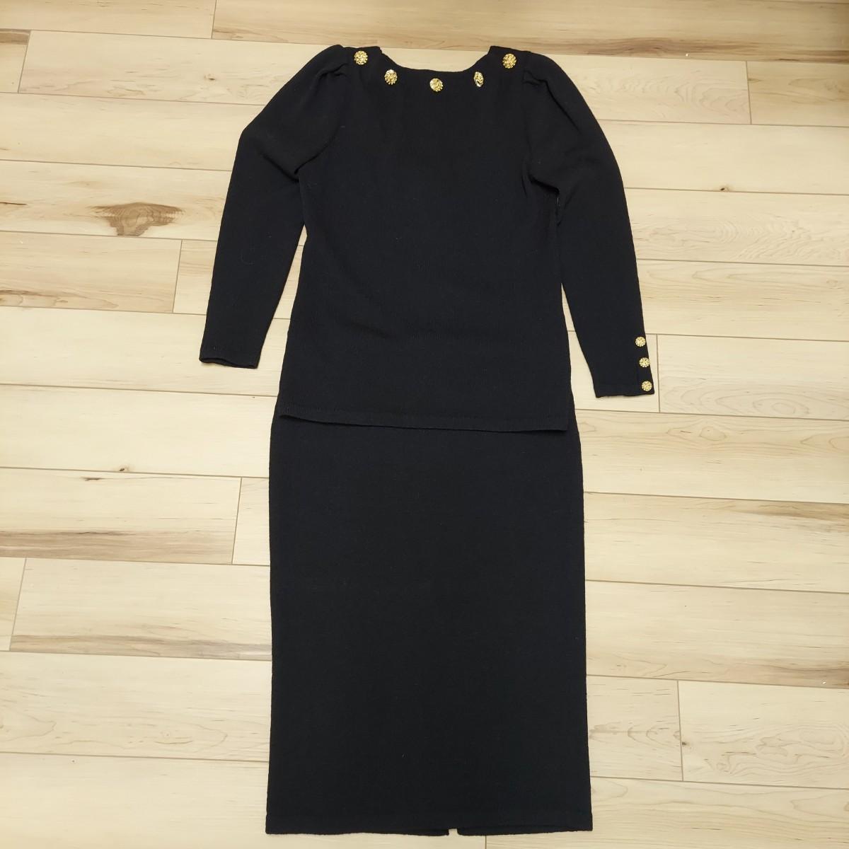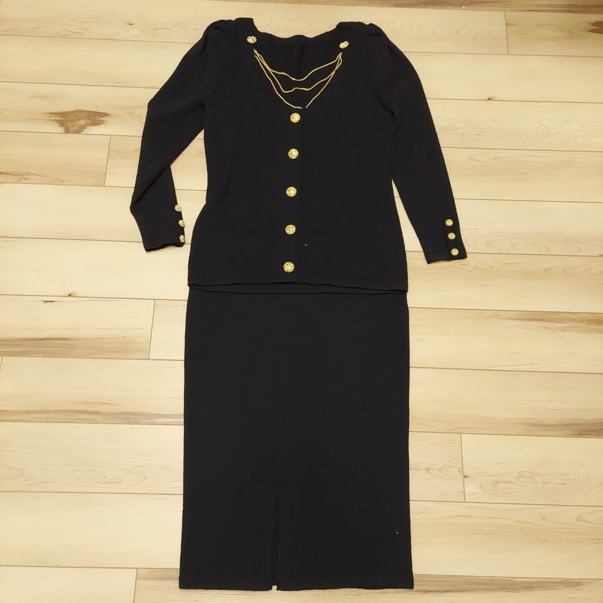 Vintage skirt suits by luxury brands like Yves Saint Laurent, Frances & Rita, Louis Féroud and Phillipe Adec. The zipper is corroded on the YSL piece. Will need some attention. The black and gold set appears to be a St John knit piece but the tag is cut out. All sets fit small to medium.