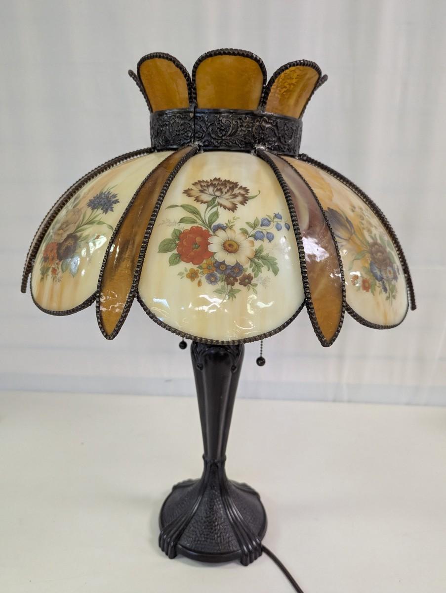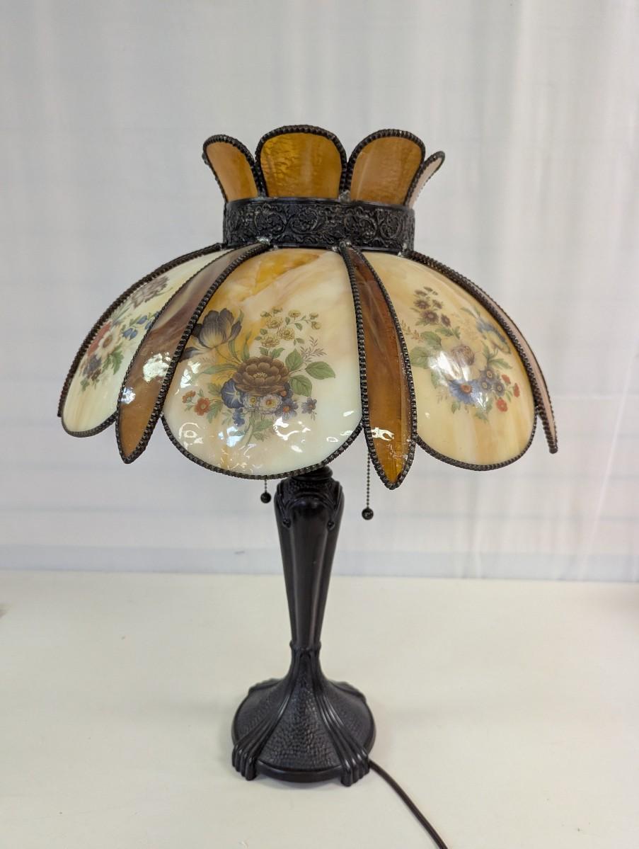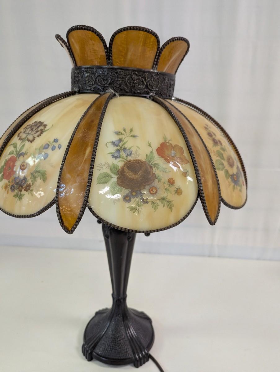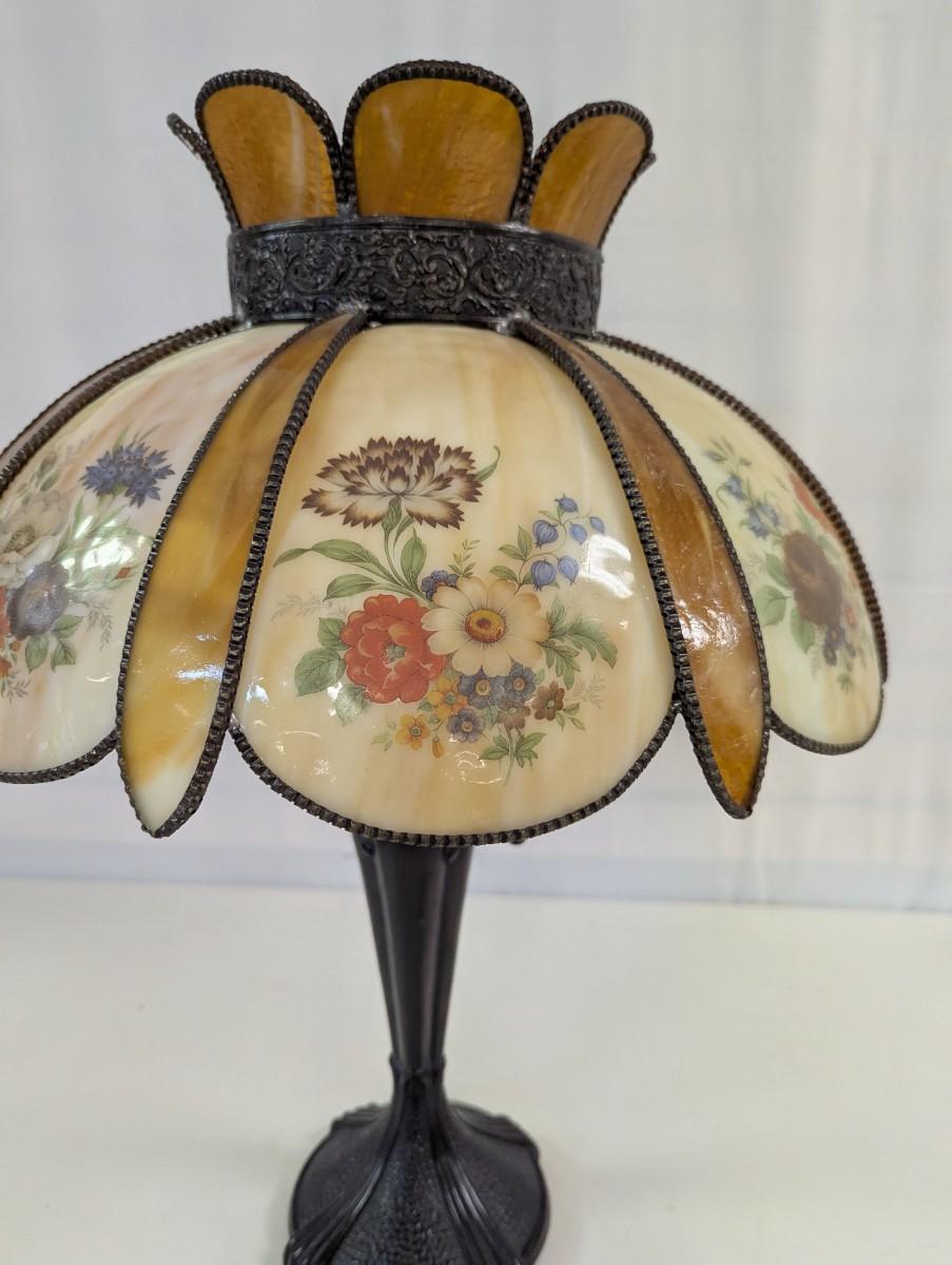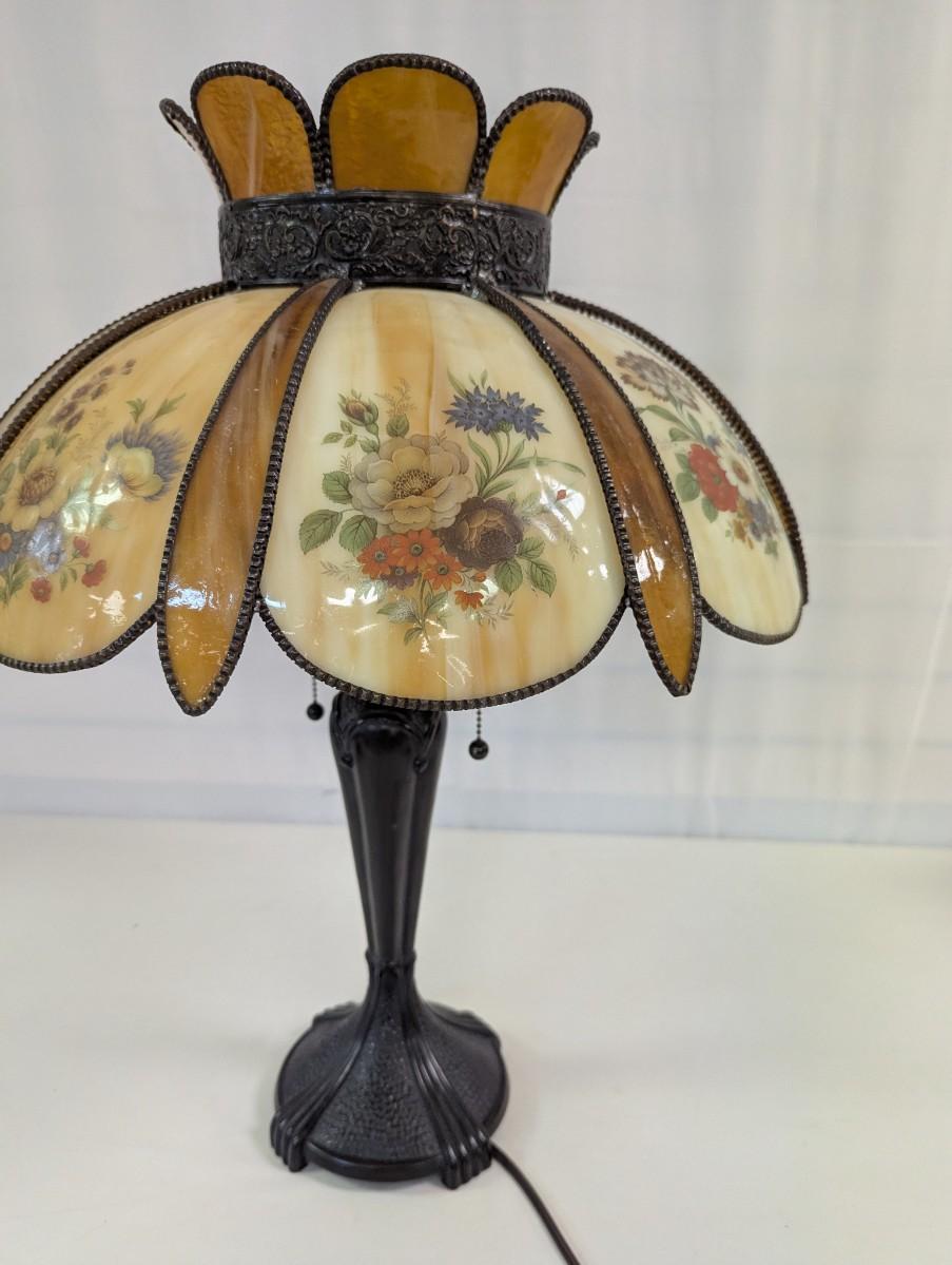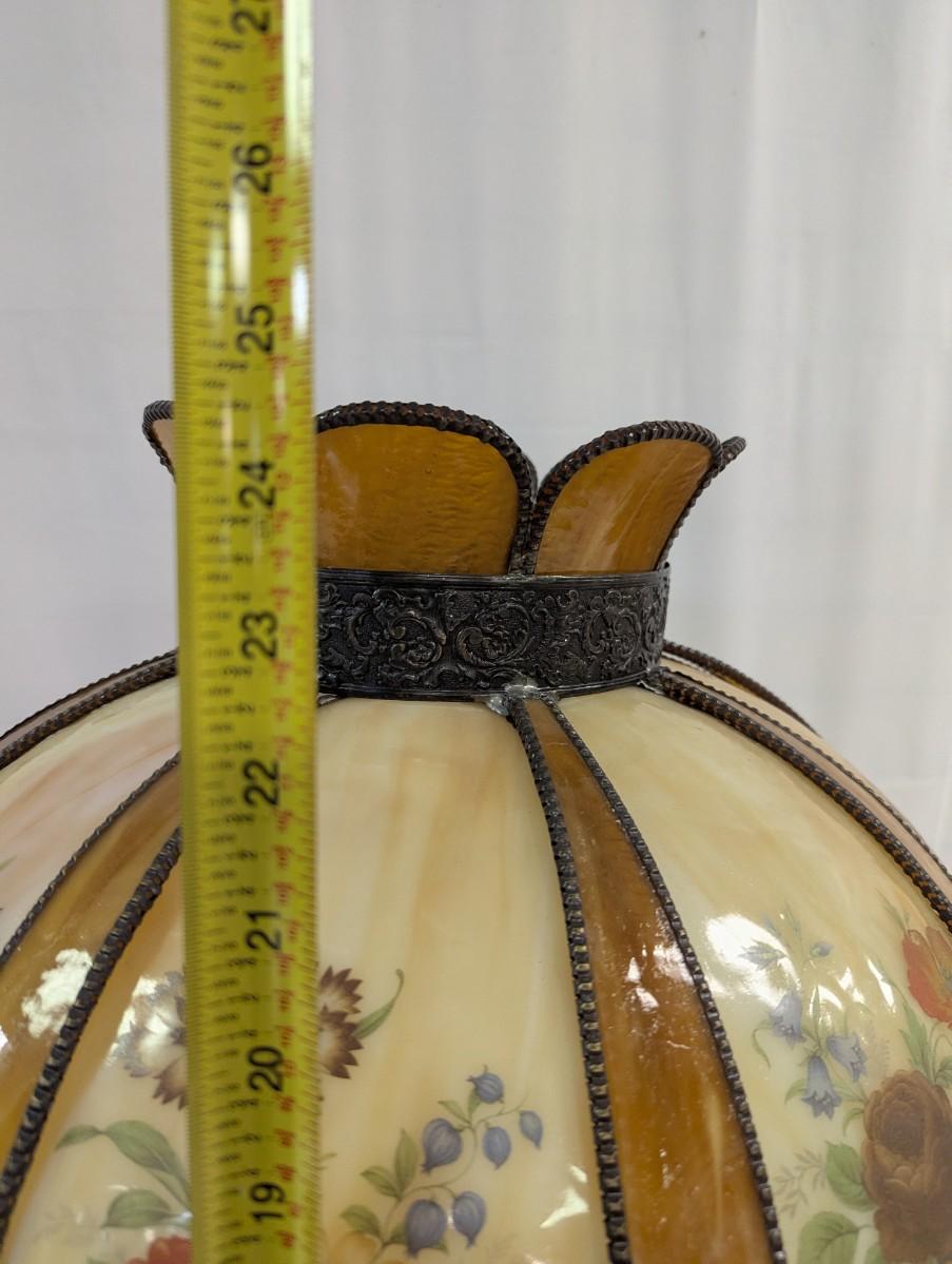 Vintage Slag Glass Lamp Shade Art Deco Floral Arrangement Beige