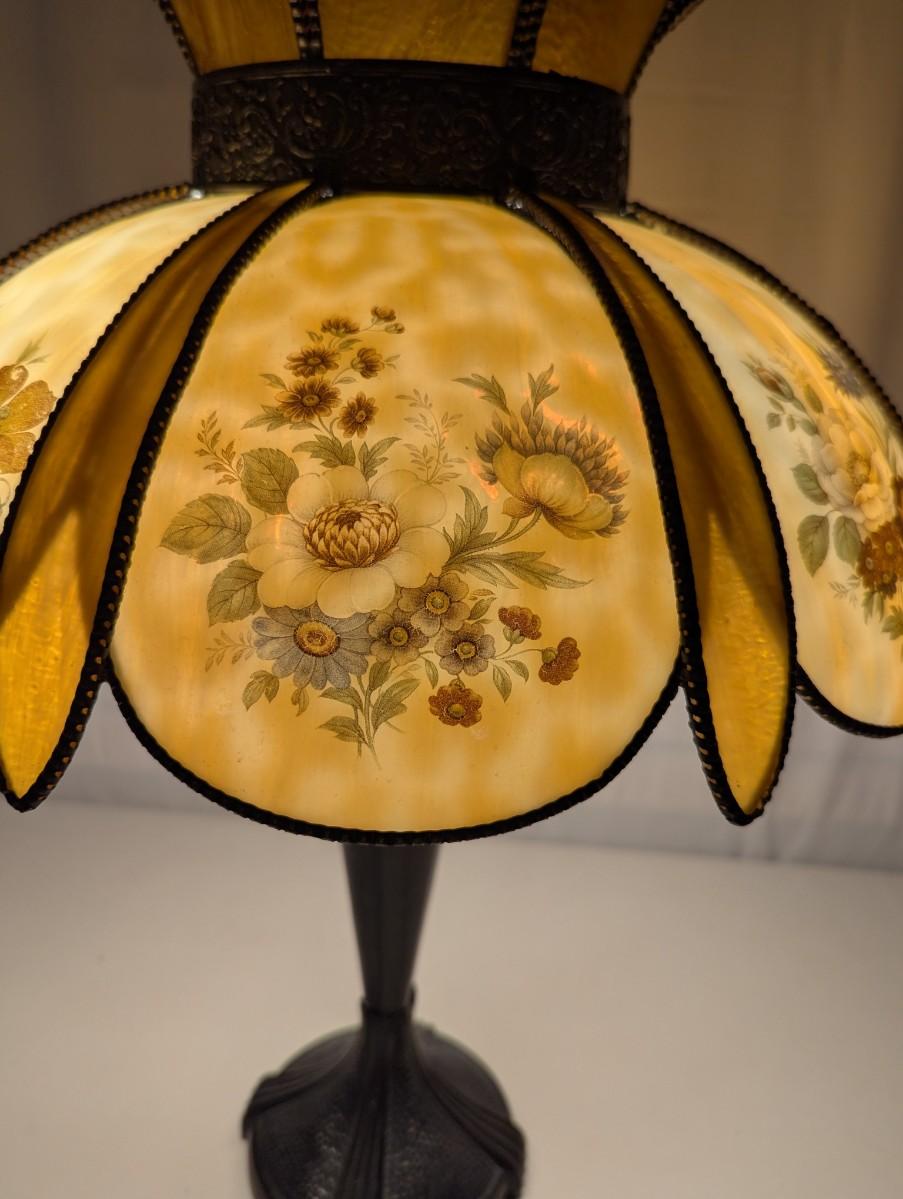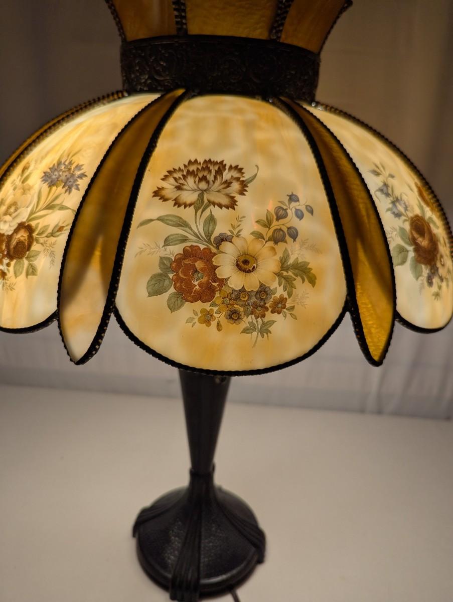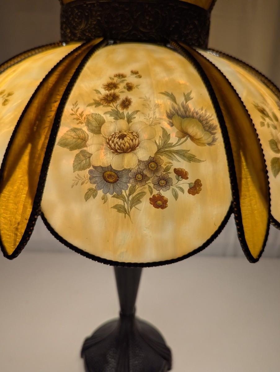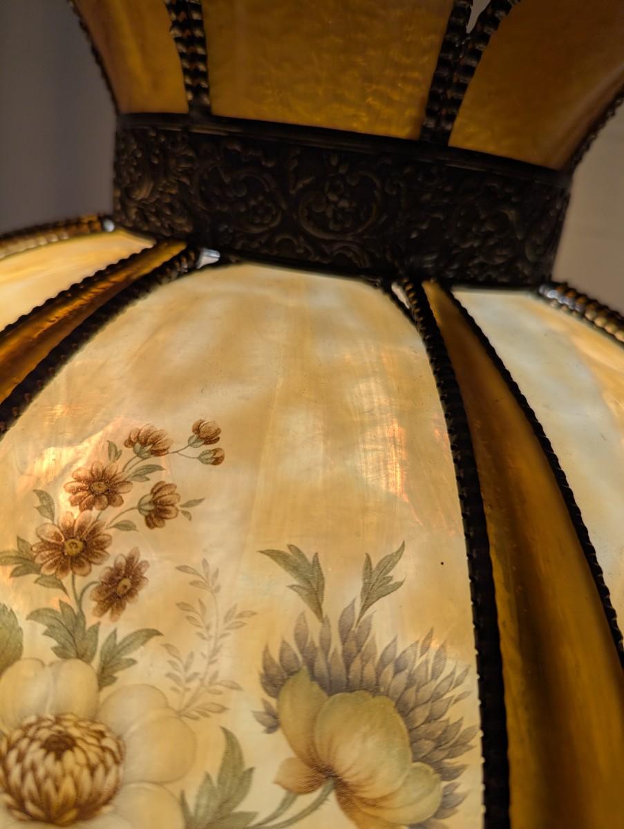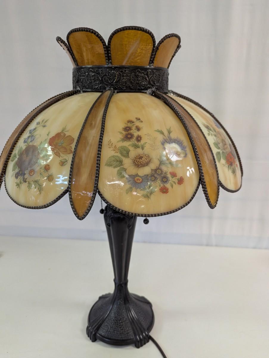 Vintage Slag Glass Lamp Shade Art Deco Floral Arrangement Beige