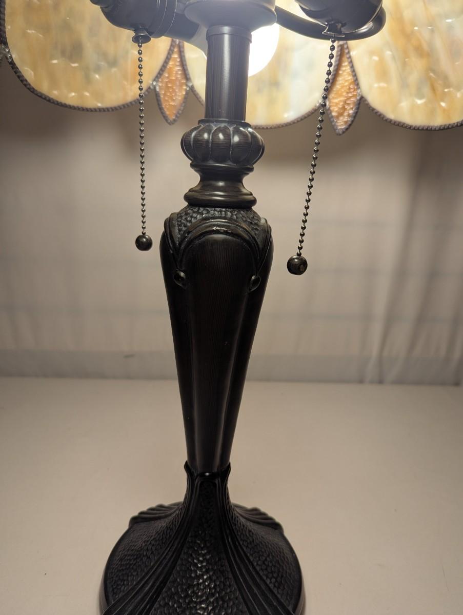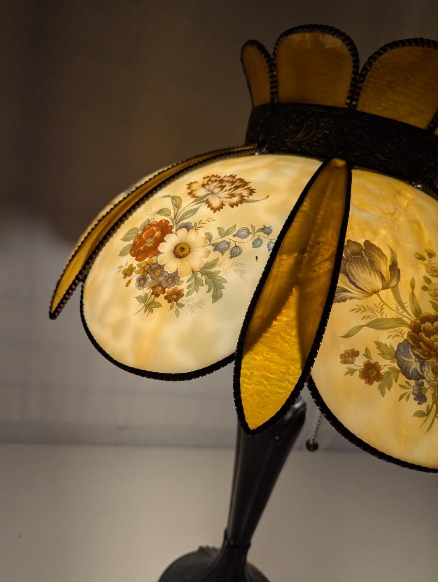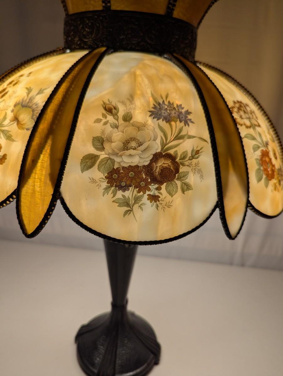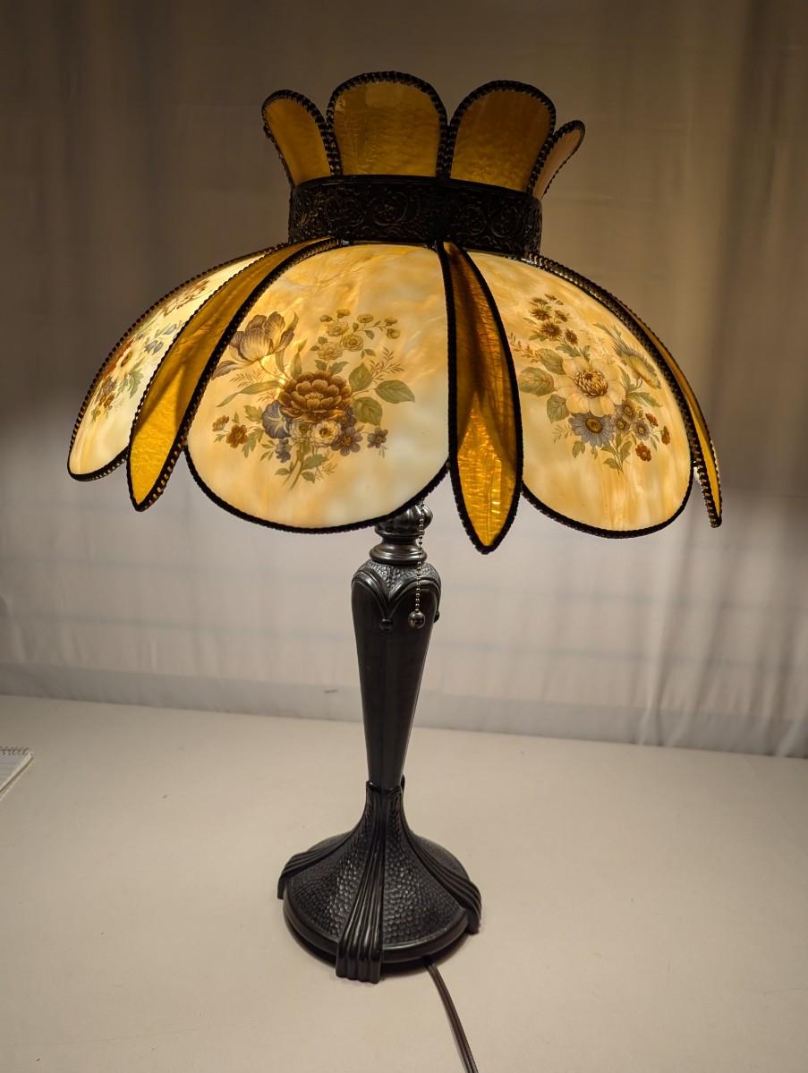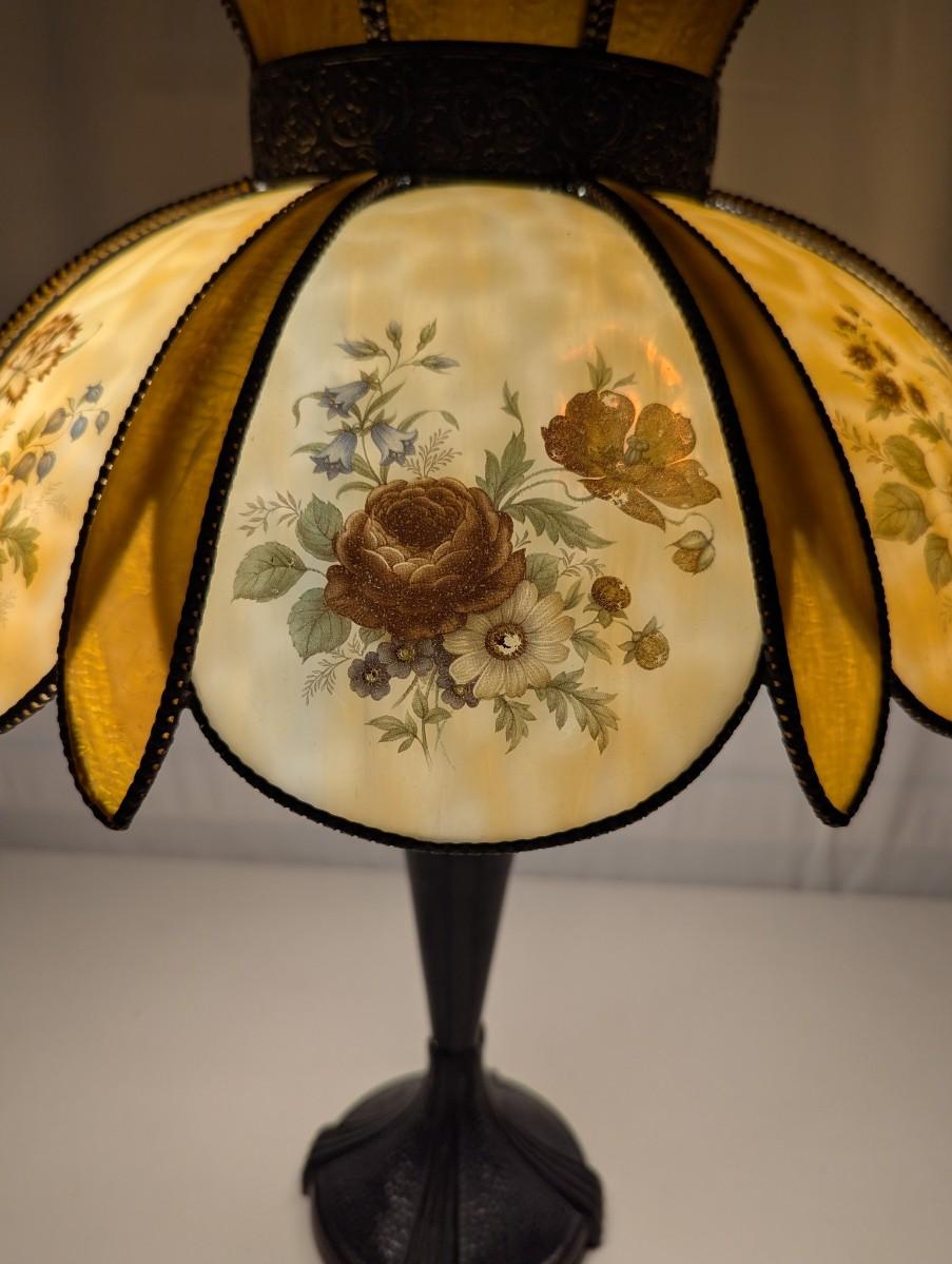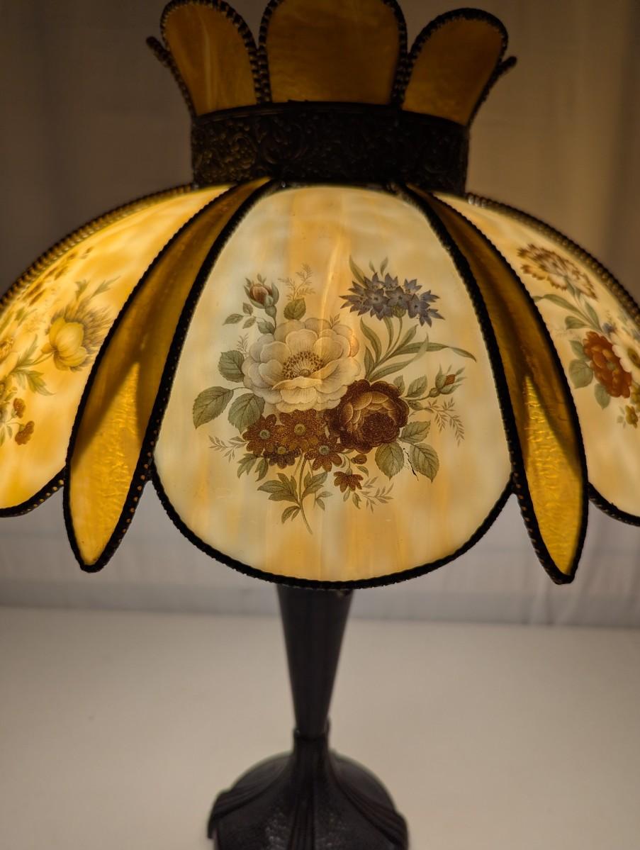 Vintage Slag Glass Lamp Shade Art Deco Floral Arrangement Beige