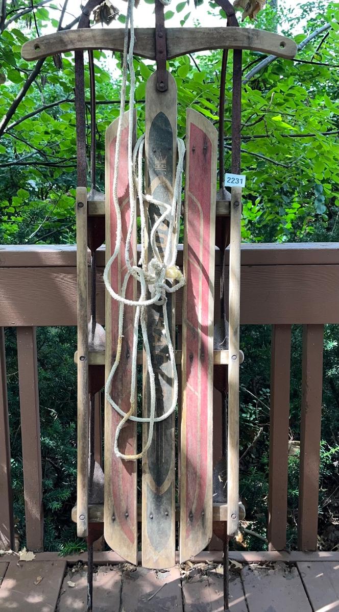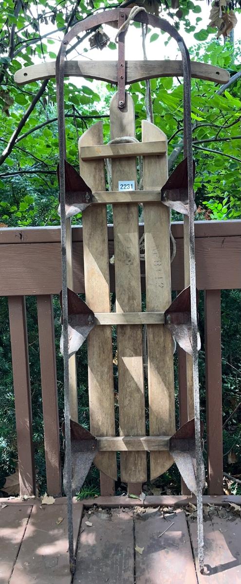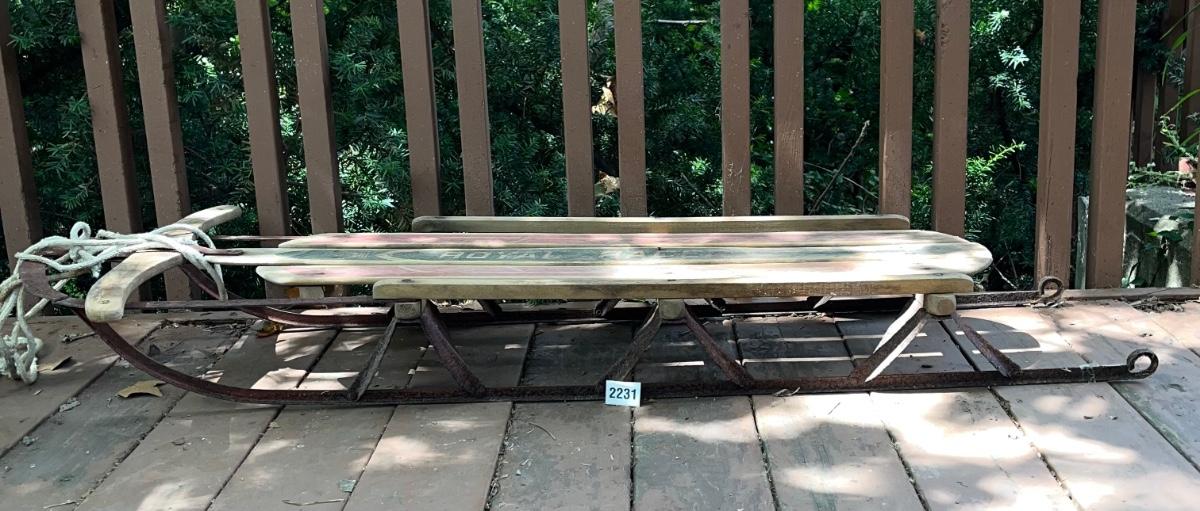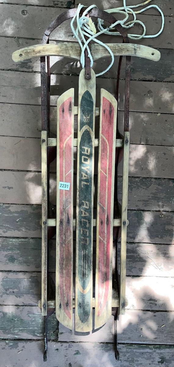 Vintage Royal Racer wooden sled with metal runners in good condition as shown.