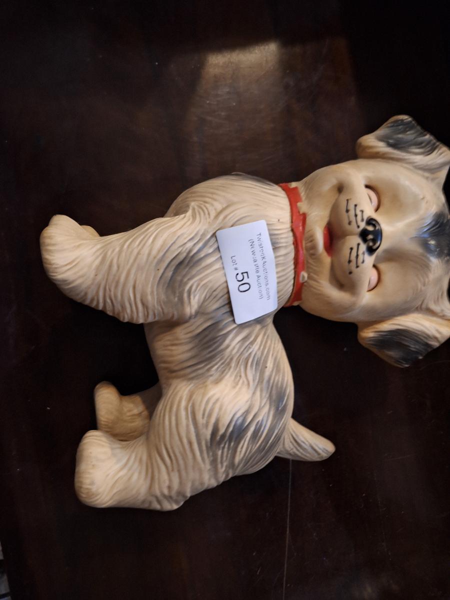 vintage sleepy eye squeaky toy dog made by alan jay clarolyte 1950s-60s