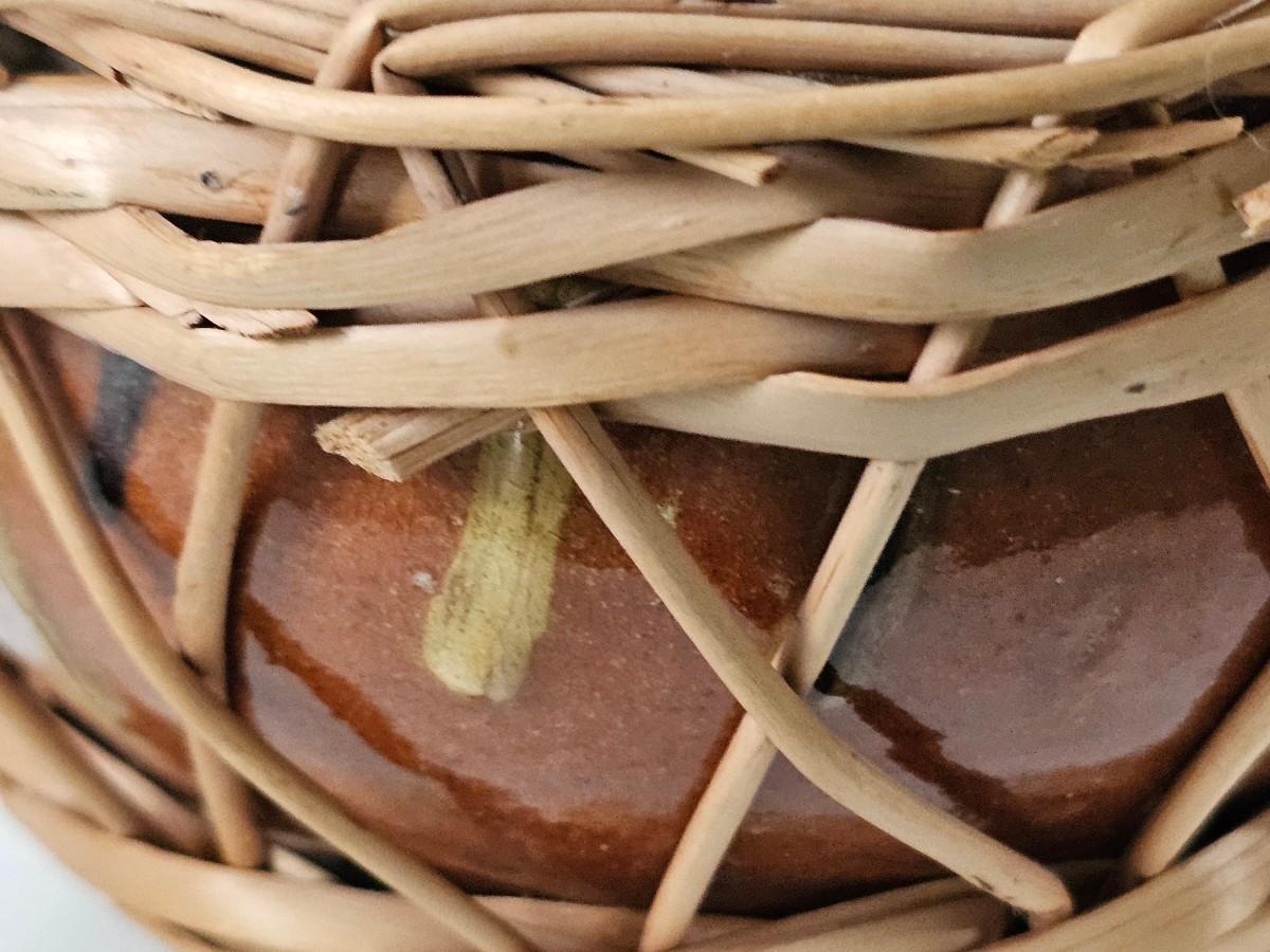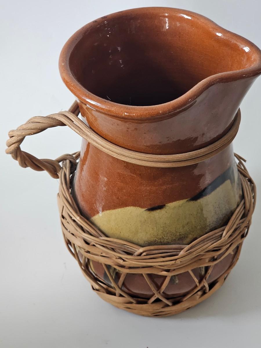 Vintage Slipware Sangria Pitcher With Basketry