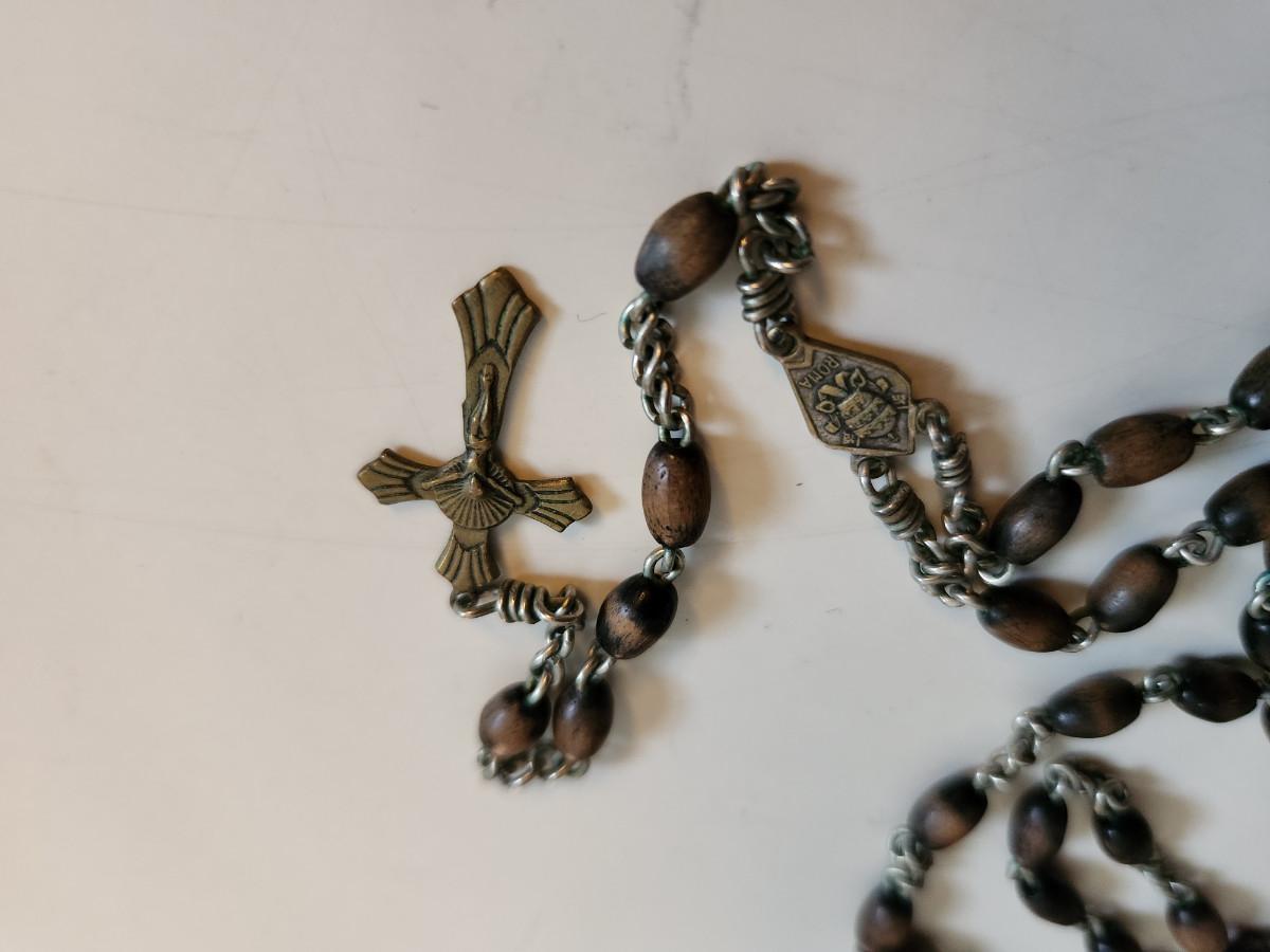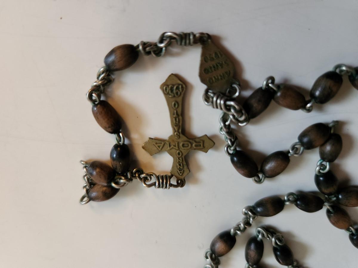 This auction lot is for a Vintage Small Brown Bead Rosary. This rosary was purchased in Rome during the Holy Year of 1950 as stated on the crucifix and the central medal. It is a wonderful rosary especially for one with smaller hands. Marked "Anno Santo" (Holy Year) 1950 which was a Jubilee Year declared by Pope Pius XII, according to Wikipedia and the Holy See. It was proclaimed as a time for penance, prayer, and reconciliation, particularly after World War II.