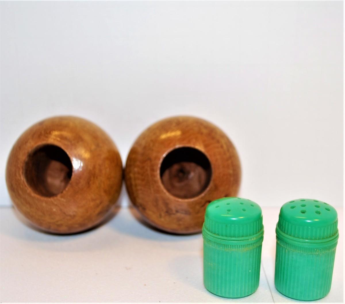 Vintage Small Brown Spheres with Green Plastic Inserts 2"