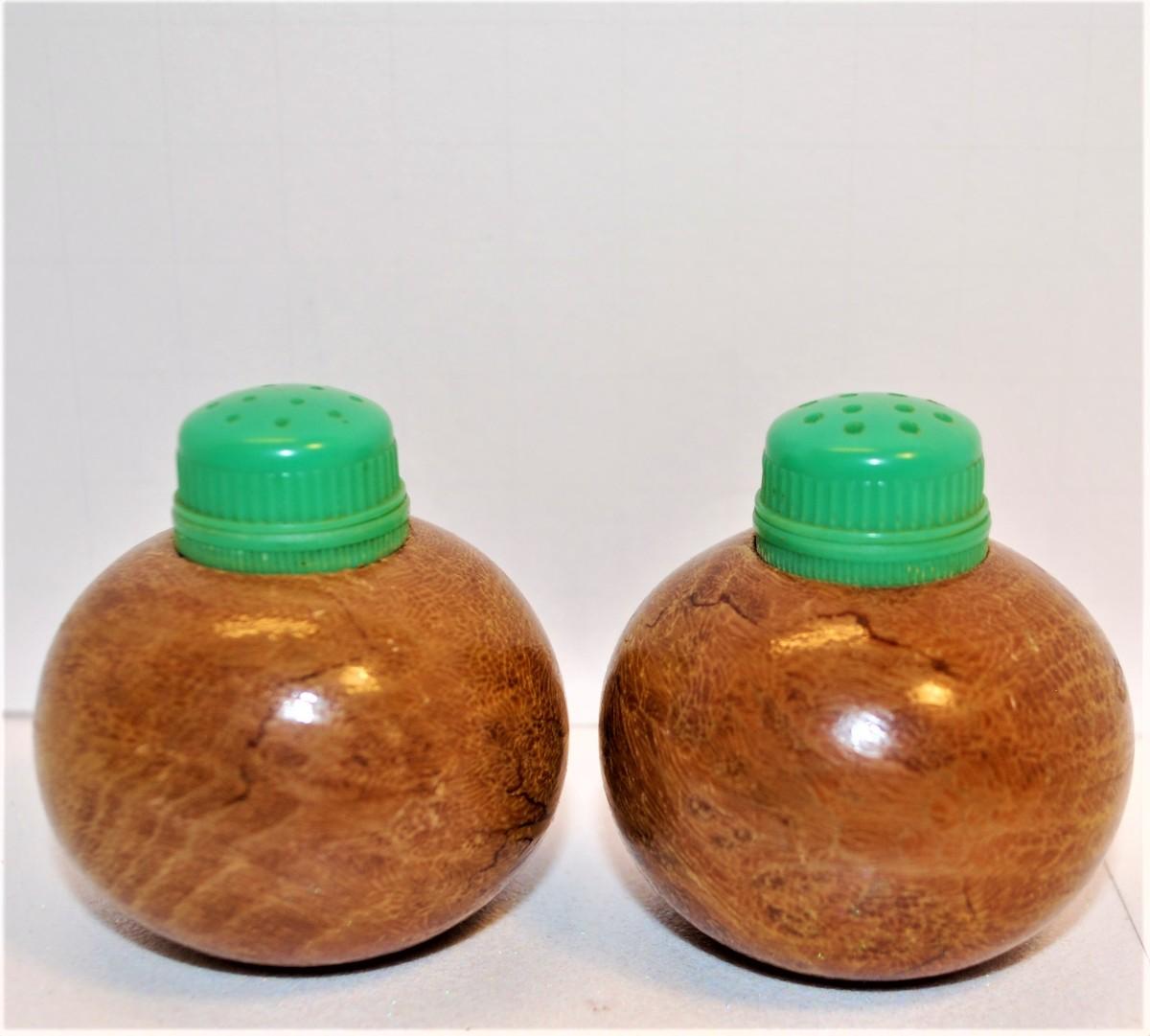 Vintage Small Brown Spheres with Green Plastic Inserts 2"