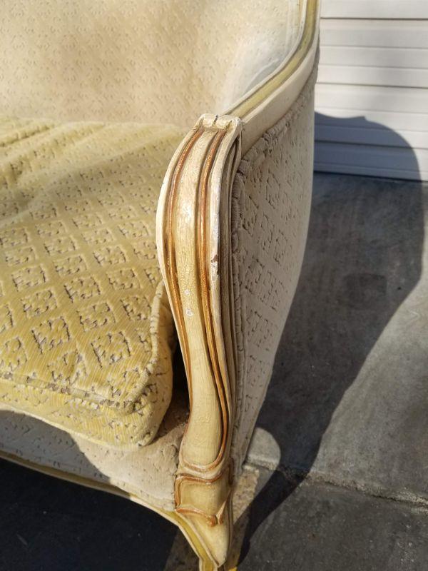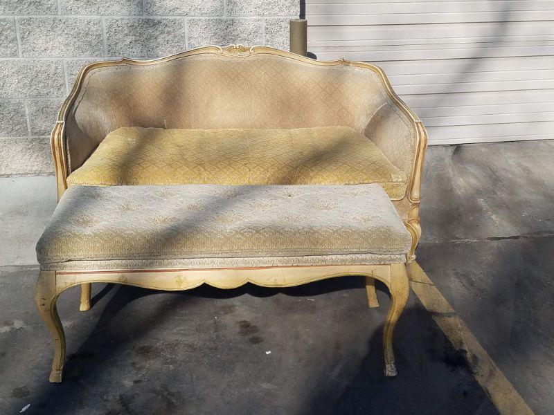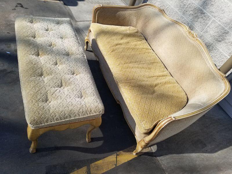 Vintage Small Couch with Large Ottoman. Yellow/Tan. Faded