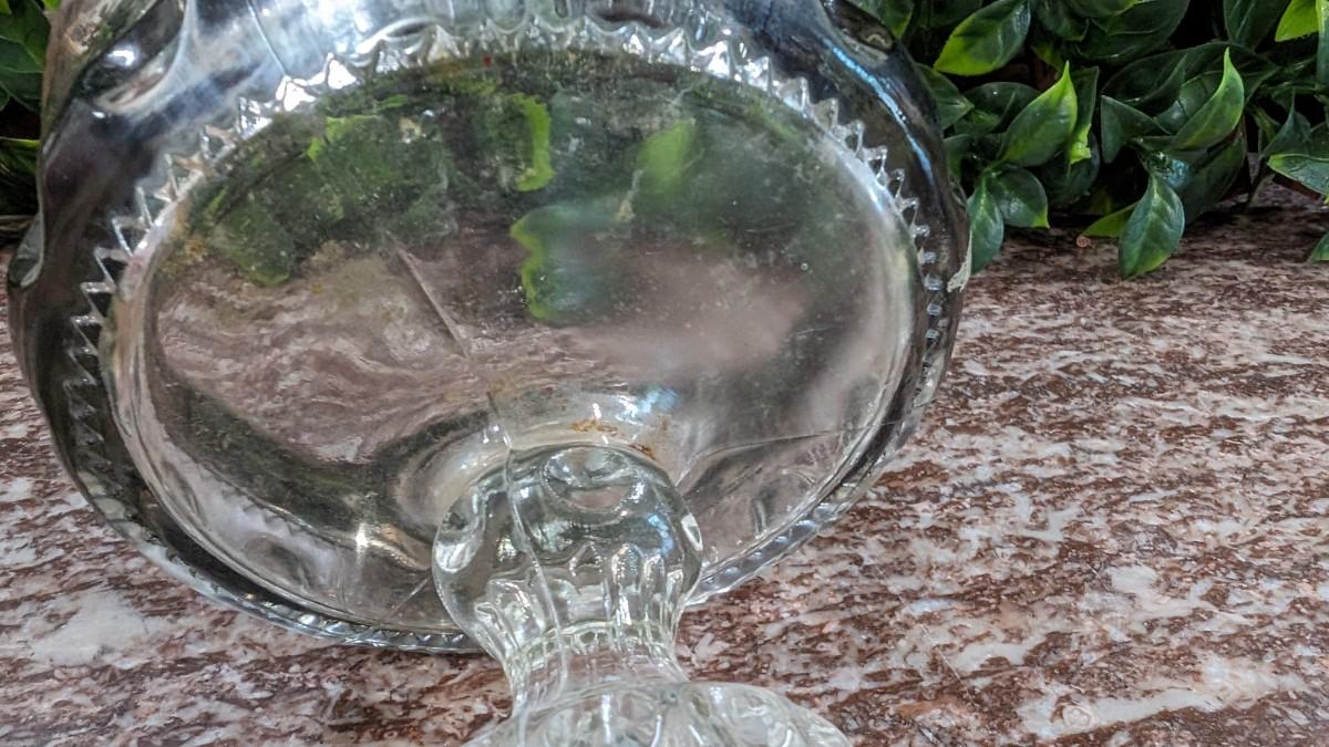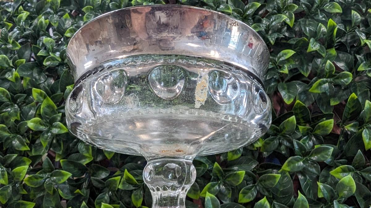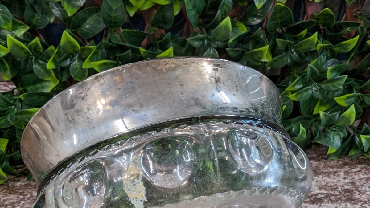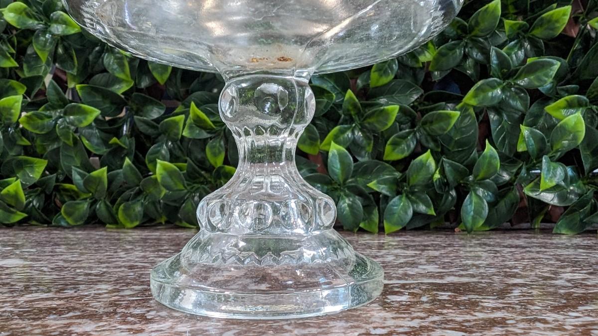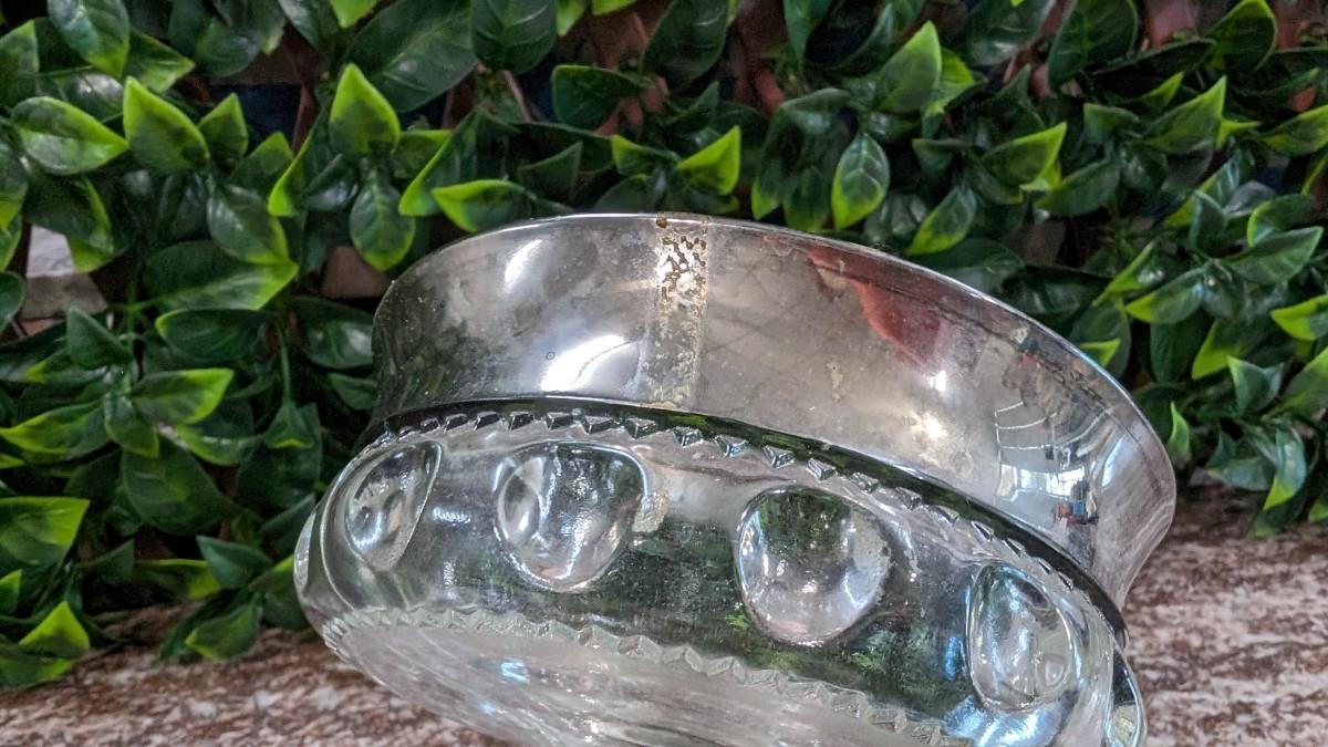 This is a Vintage Small Glass Bowl on Pedestal Metal Rim