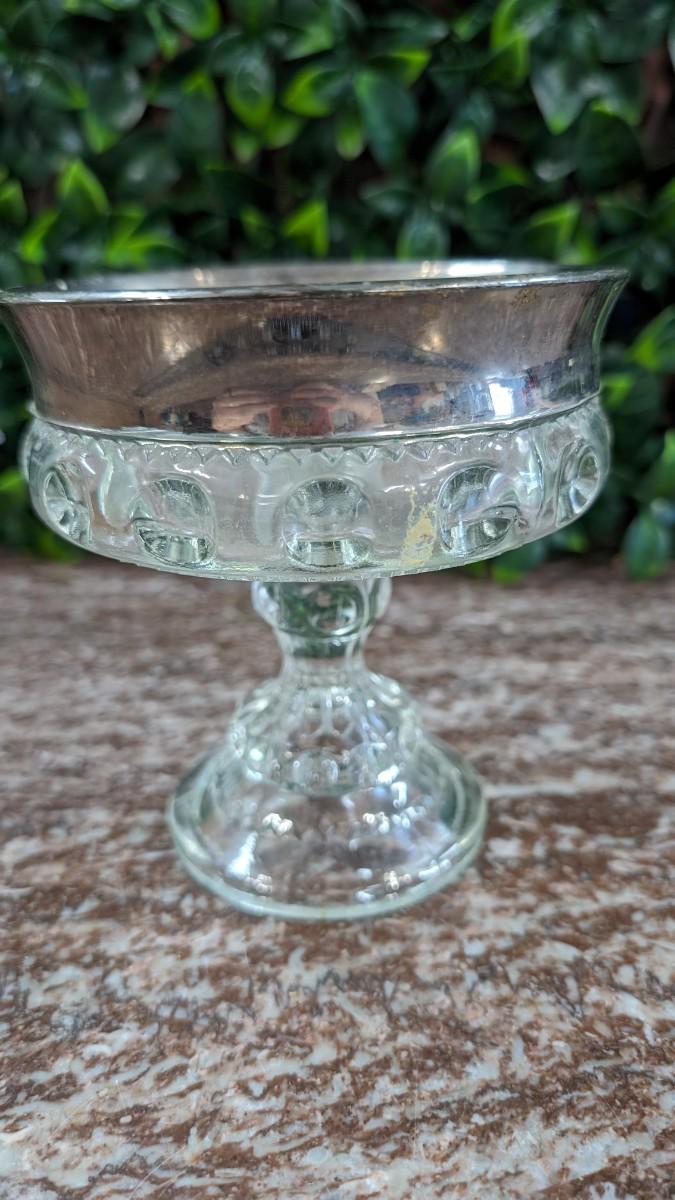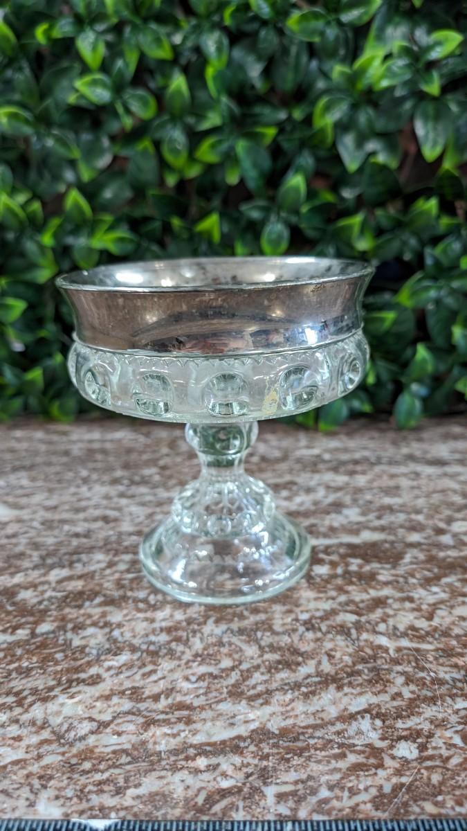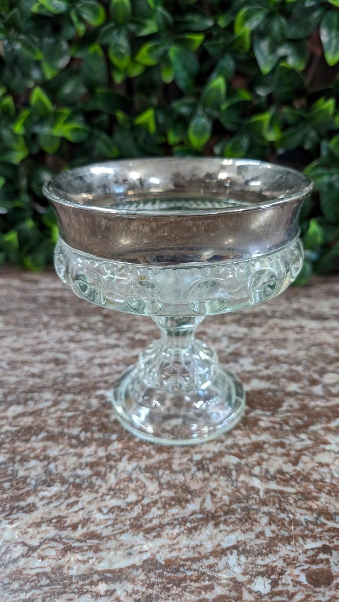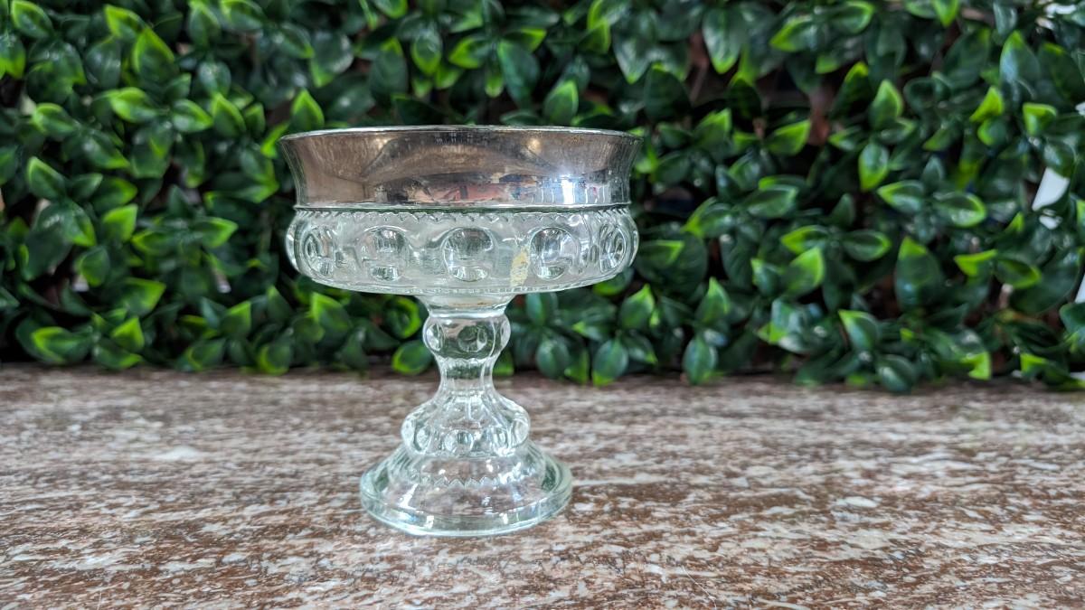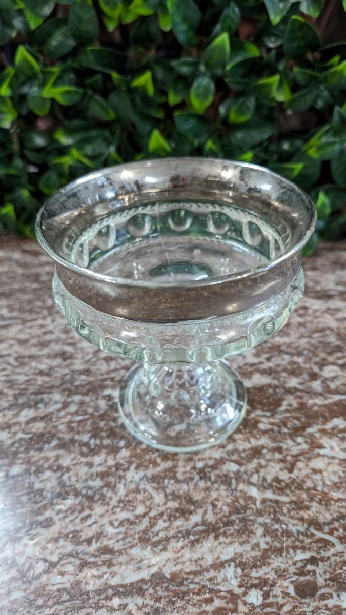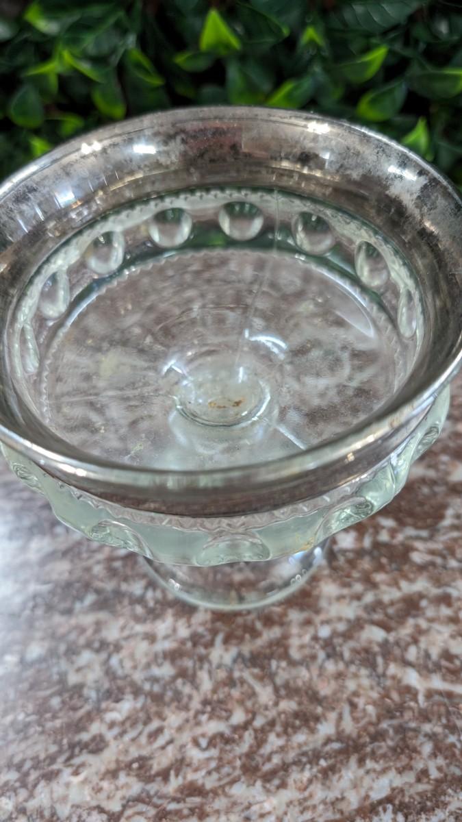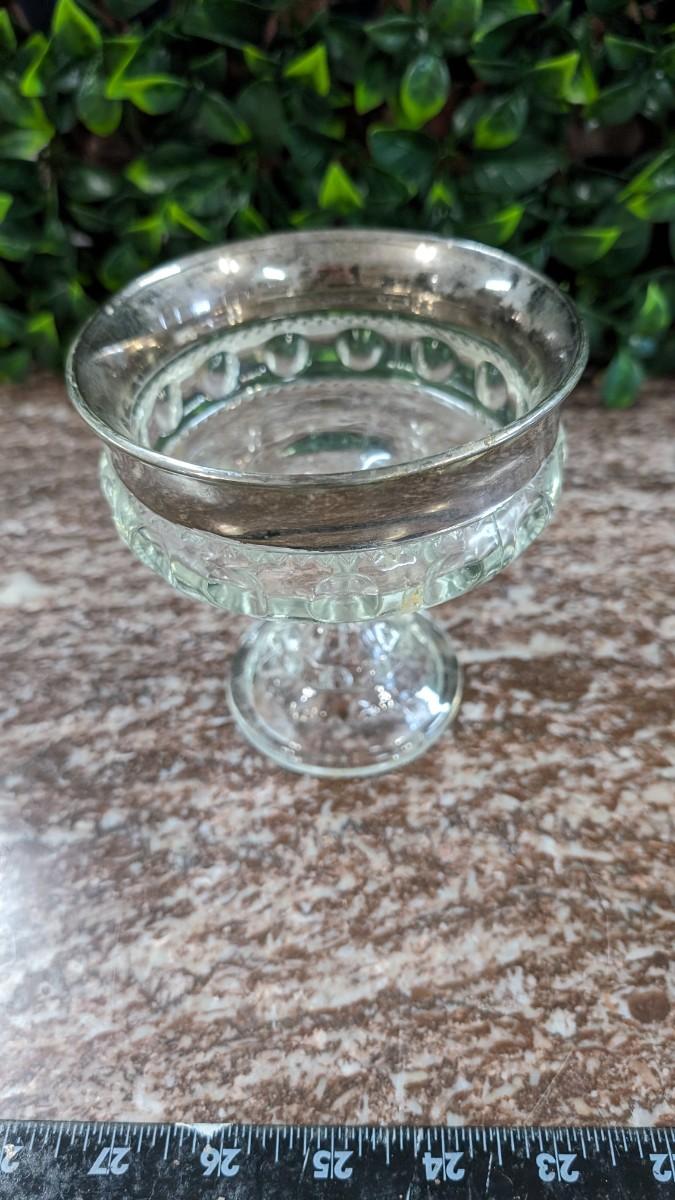Vintage Small Glass Bowl on Pedestal Metal Rim