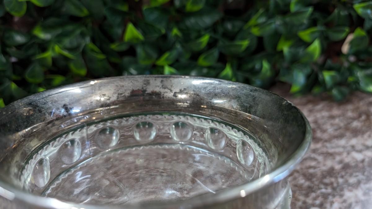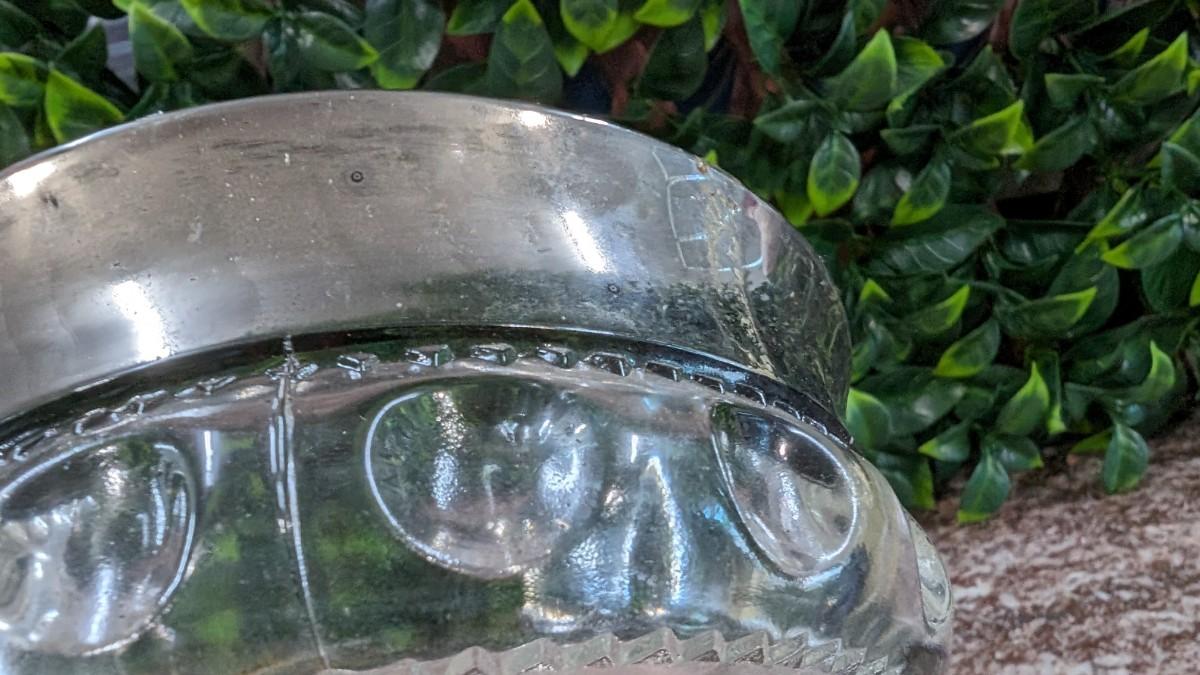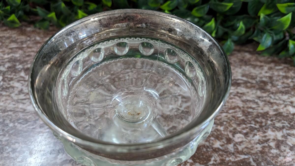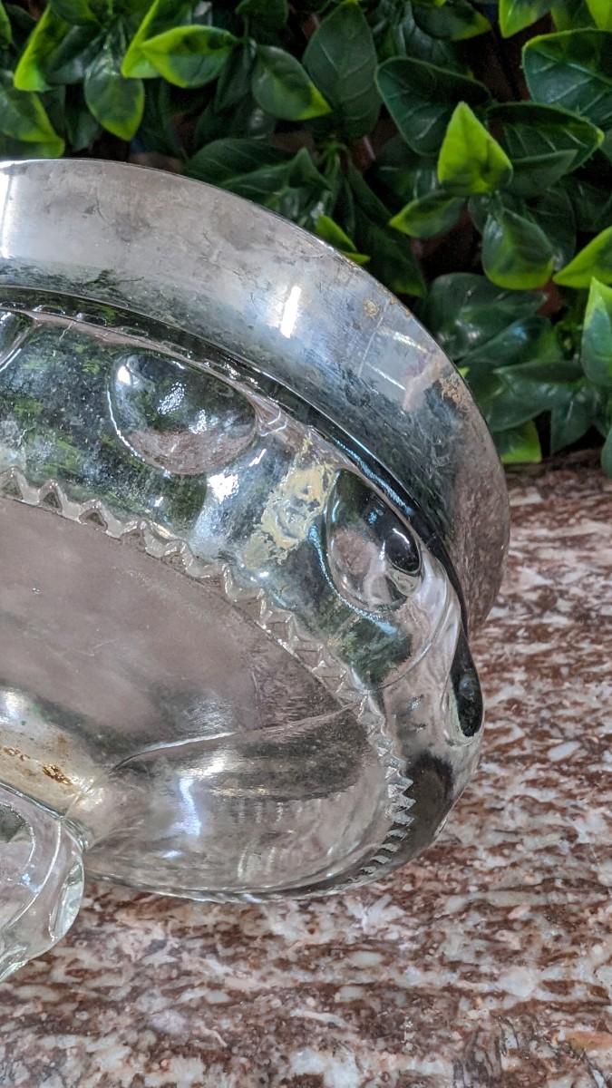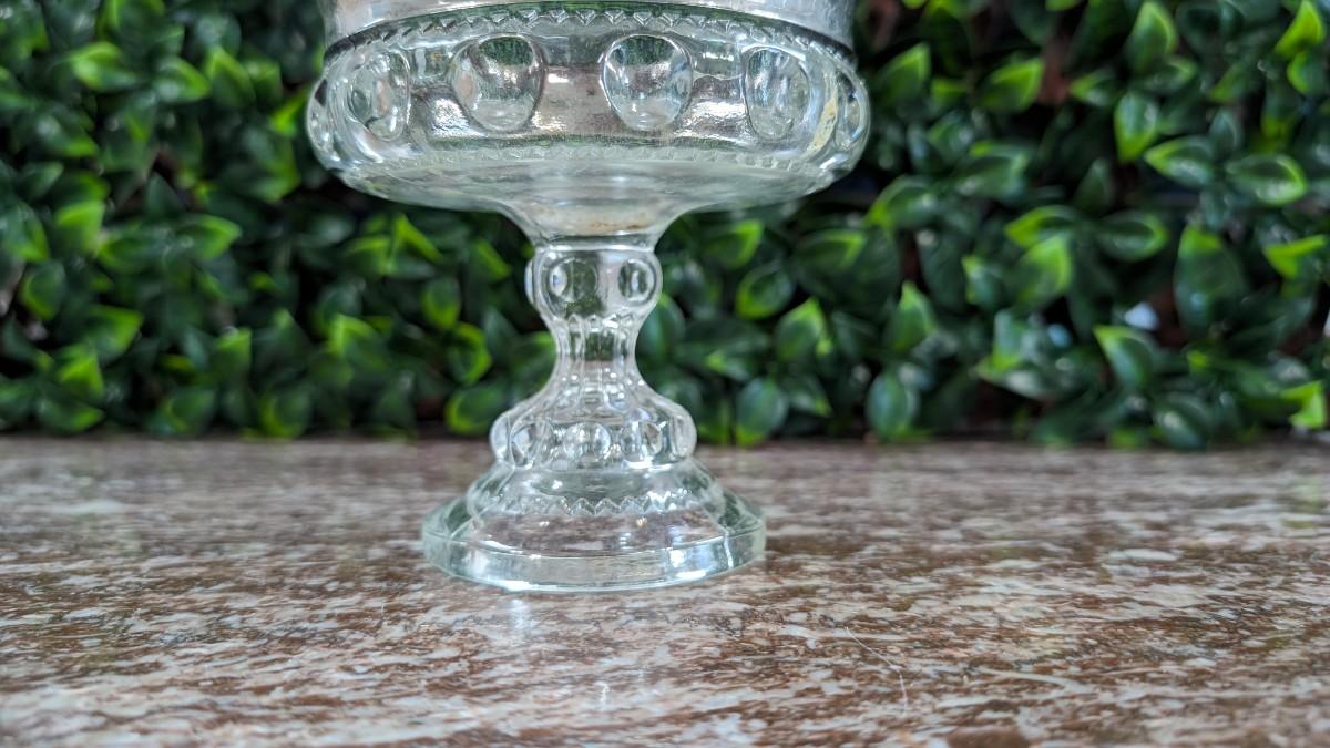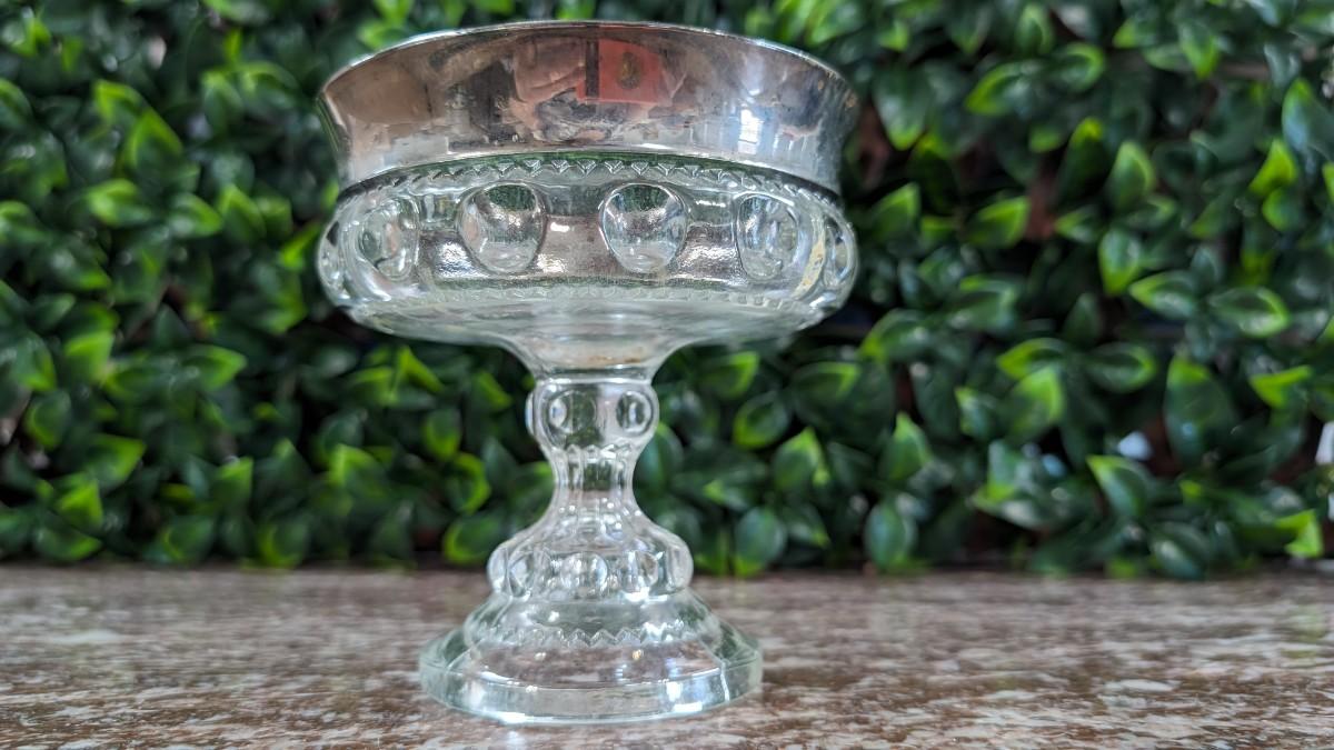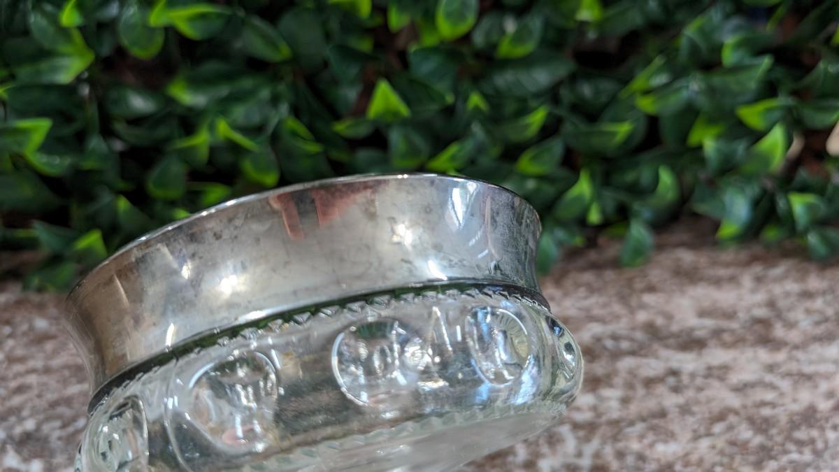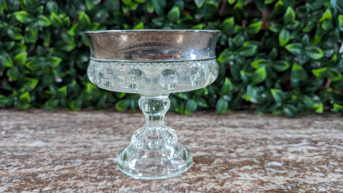 Vintage Small Glass Bowl on Pedestal Metal Rim