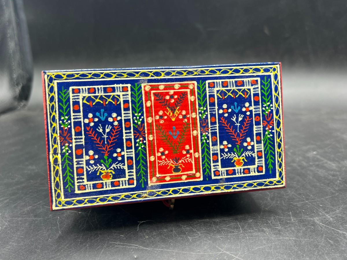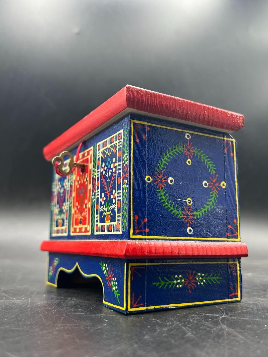 Vintage Small Hand Painted Krakow Locking Wooden Chest Polish Folk Art Jewelry Trinket Treasure Box