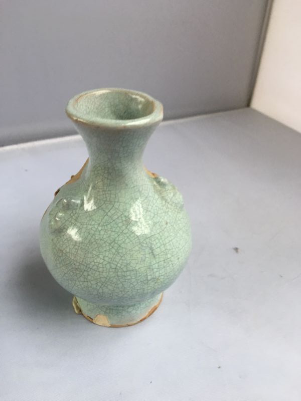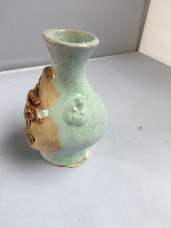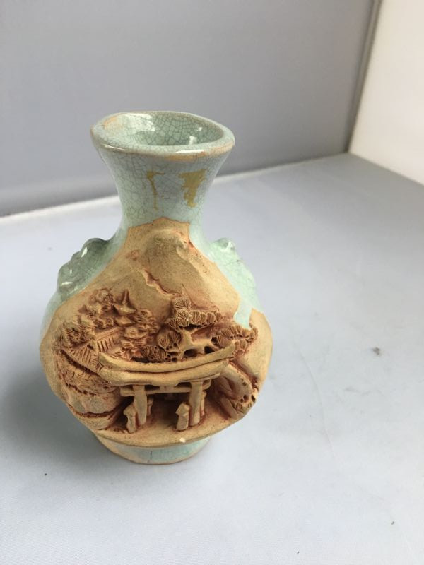Vintage Small Japanese Vase With Tedious Hand Made Pagoda Entrance