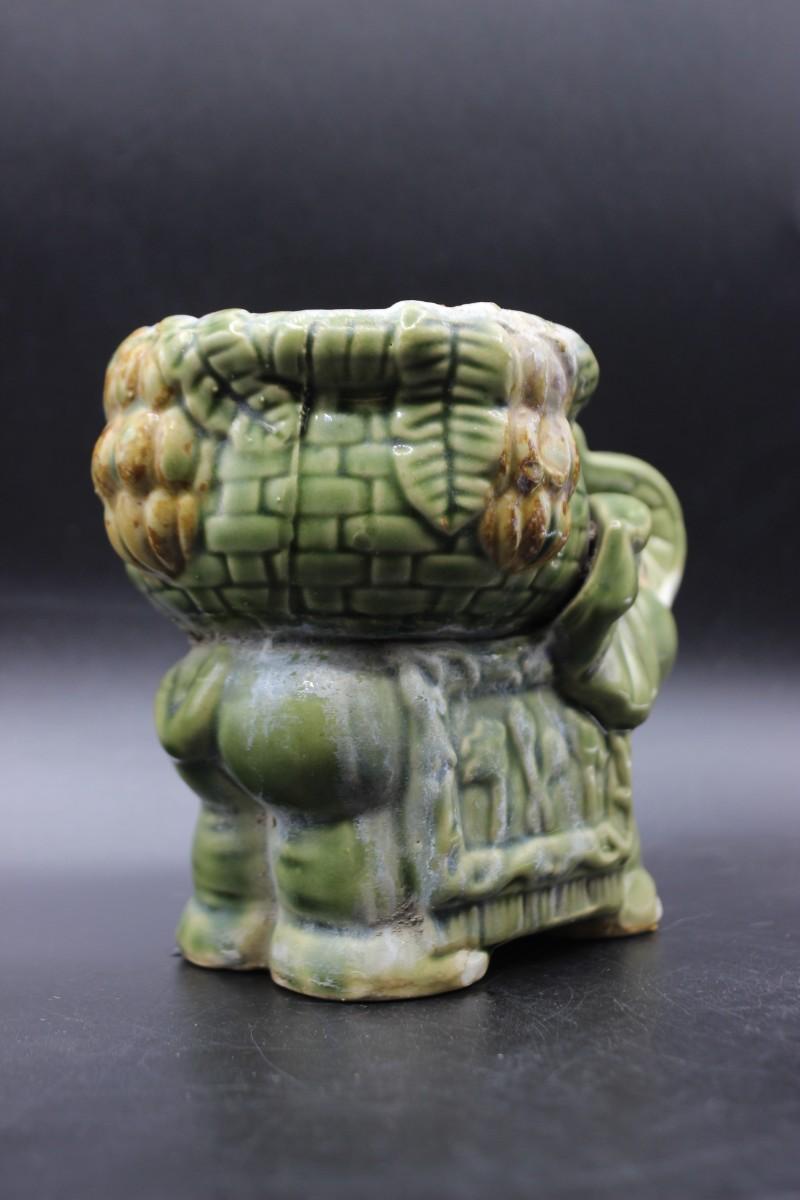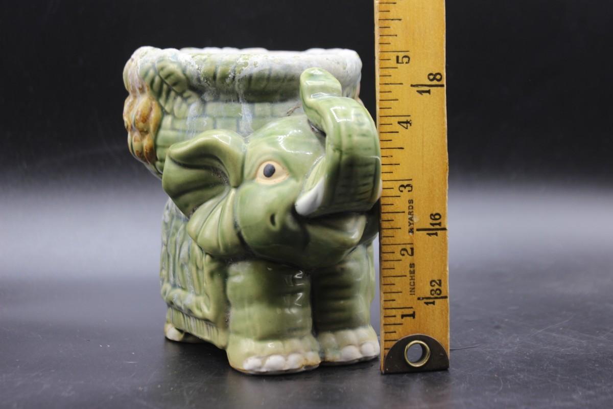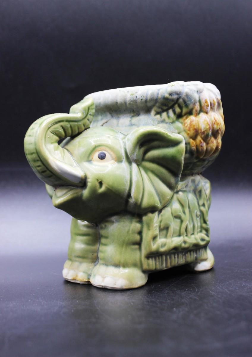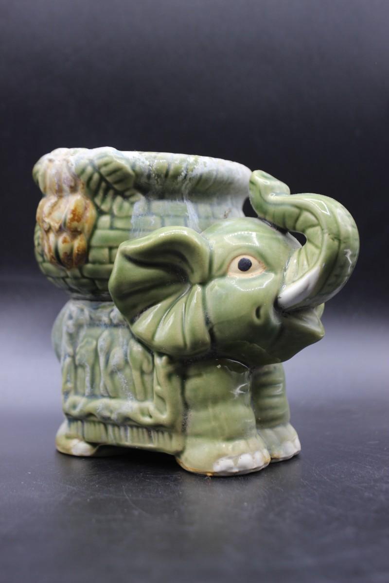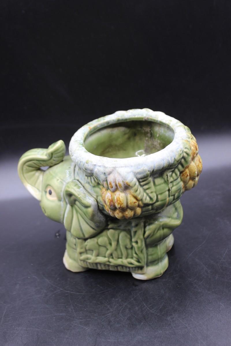 Vintage Small Majolica Style Green Elephant Planter, there is no significant cracks or chips to the ceramic planter and is in good vintage condition. Check pictures for more details and for sizing.