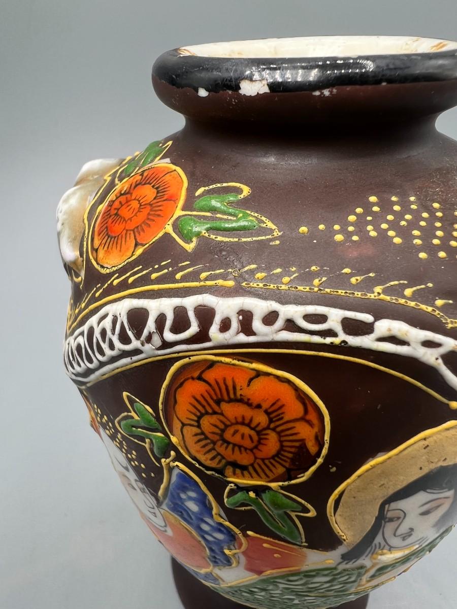 Vintage Small Ornate Oriental Satsuma Japanese Moriage Porcelain Art Vase