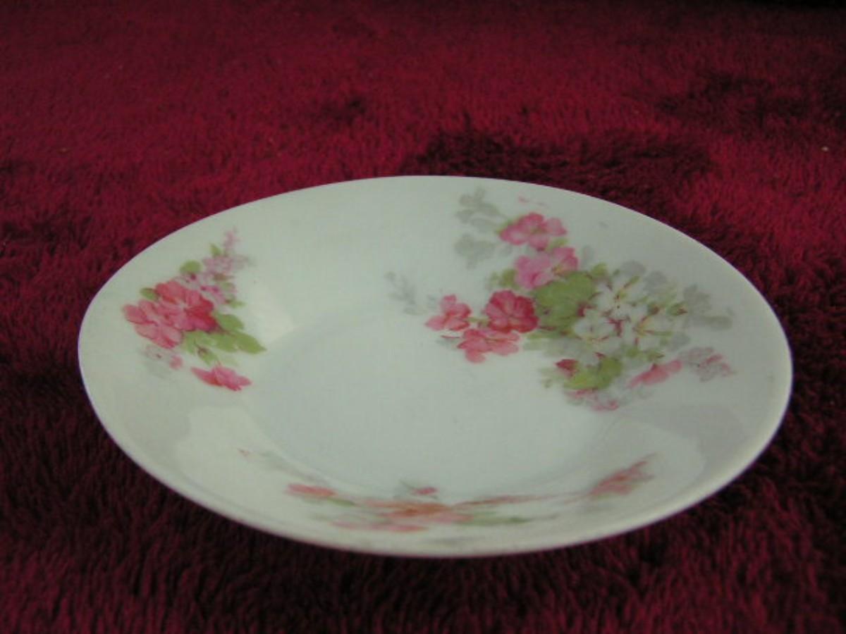 Vintage small porcelain dish, floral design appears hand painted.