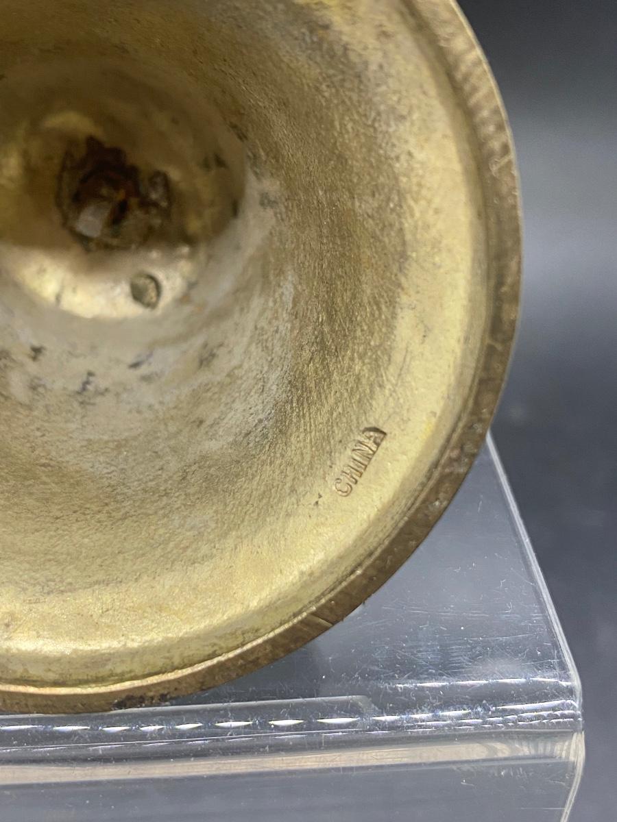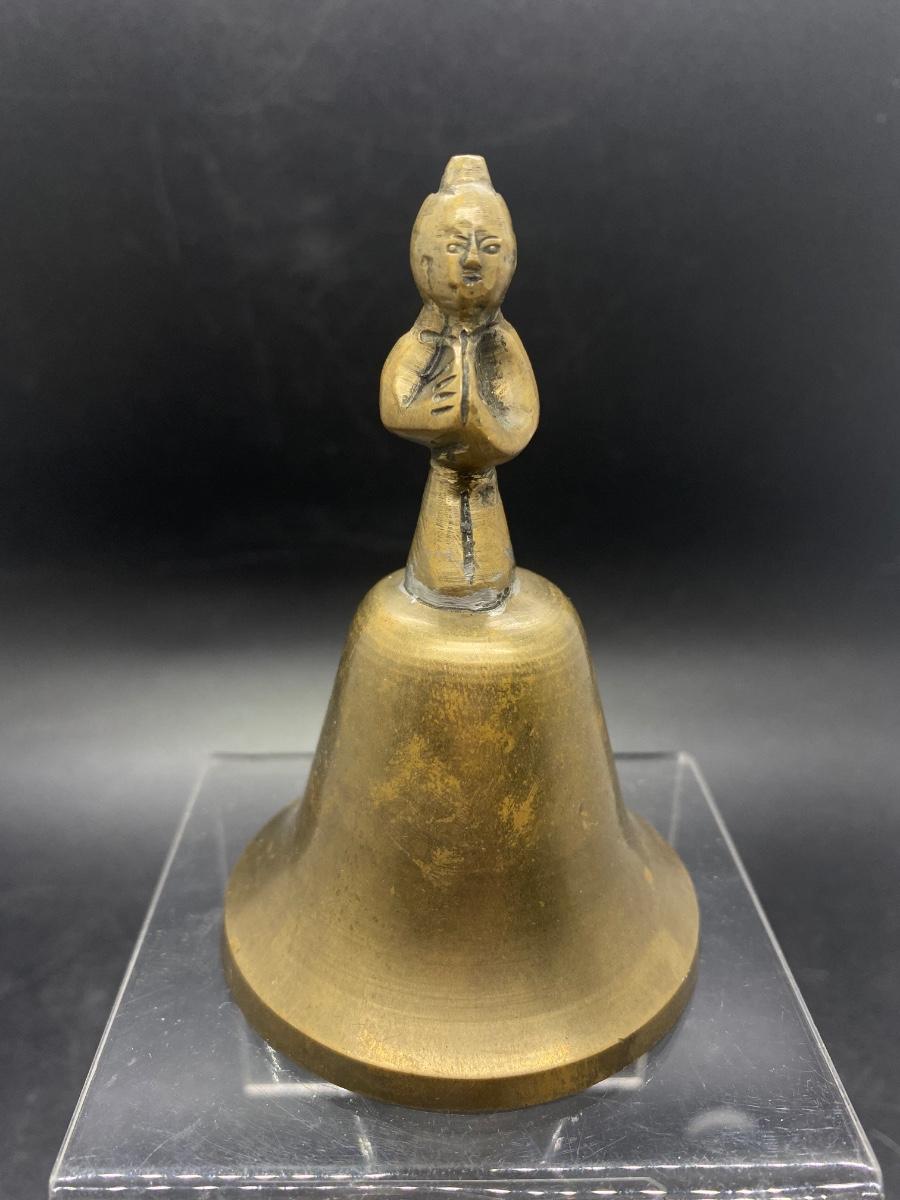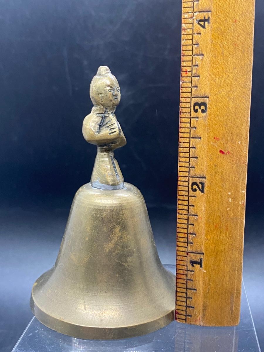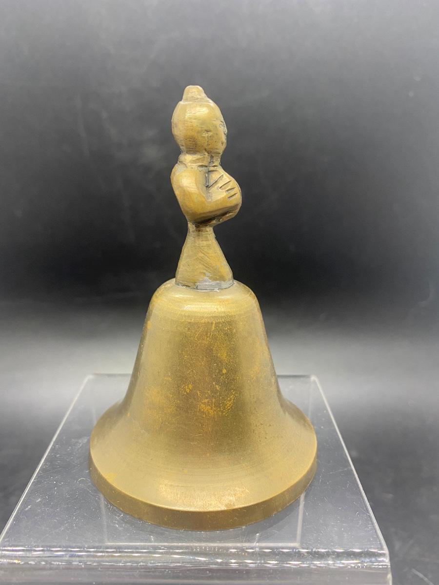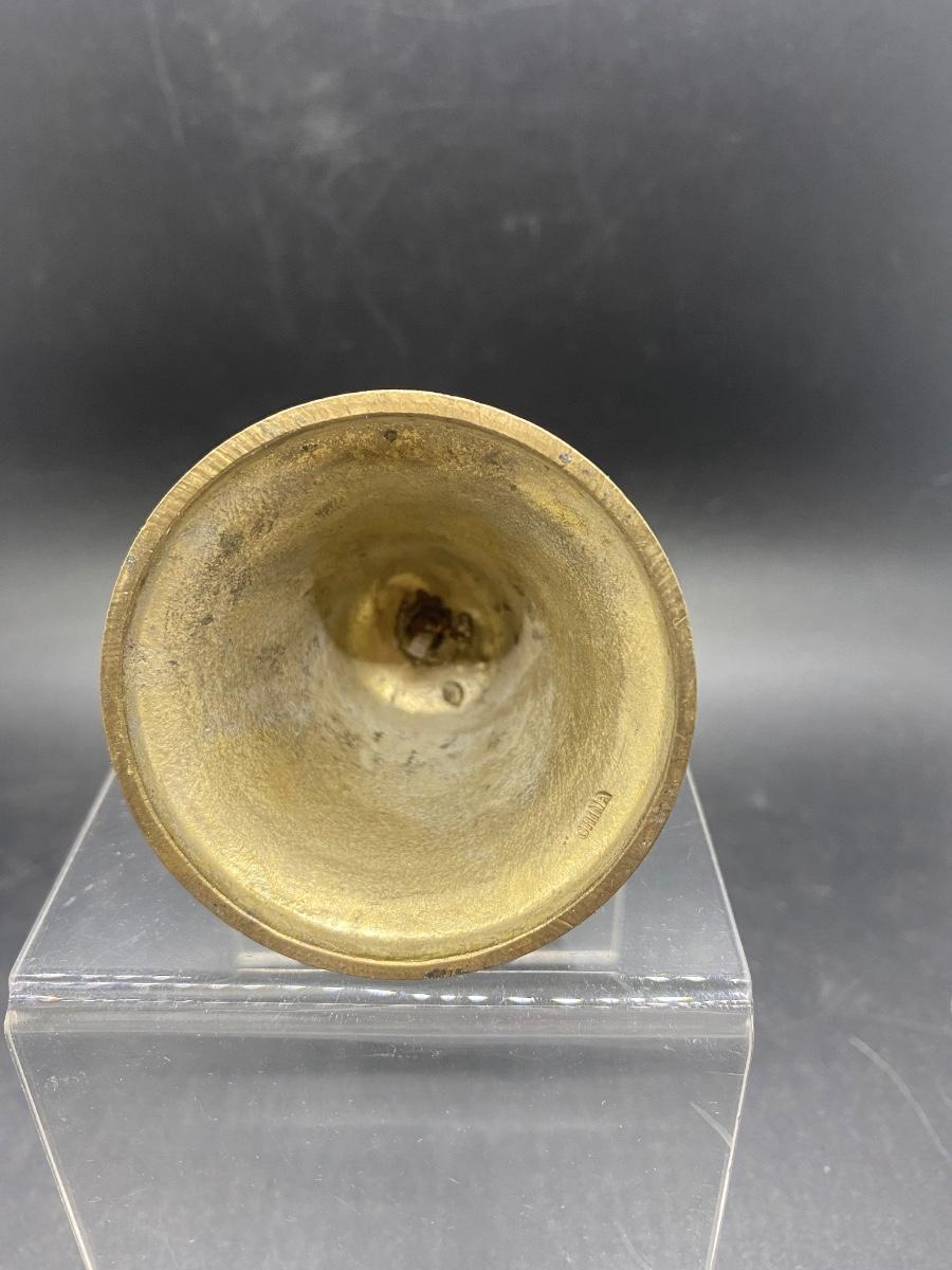 Vintage primitive style brass bell. Small, about 3.5" size. Missing the ringer part inside, displays nicely.