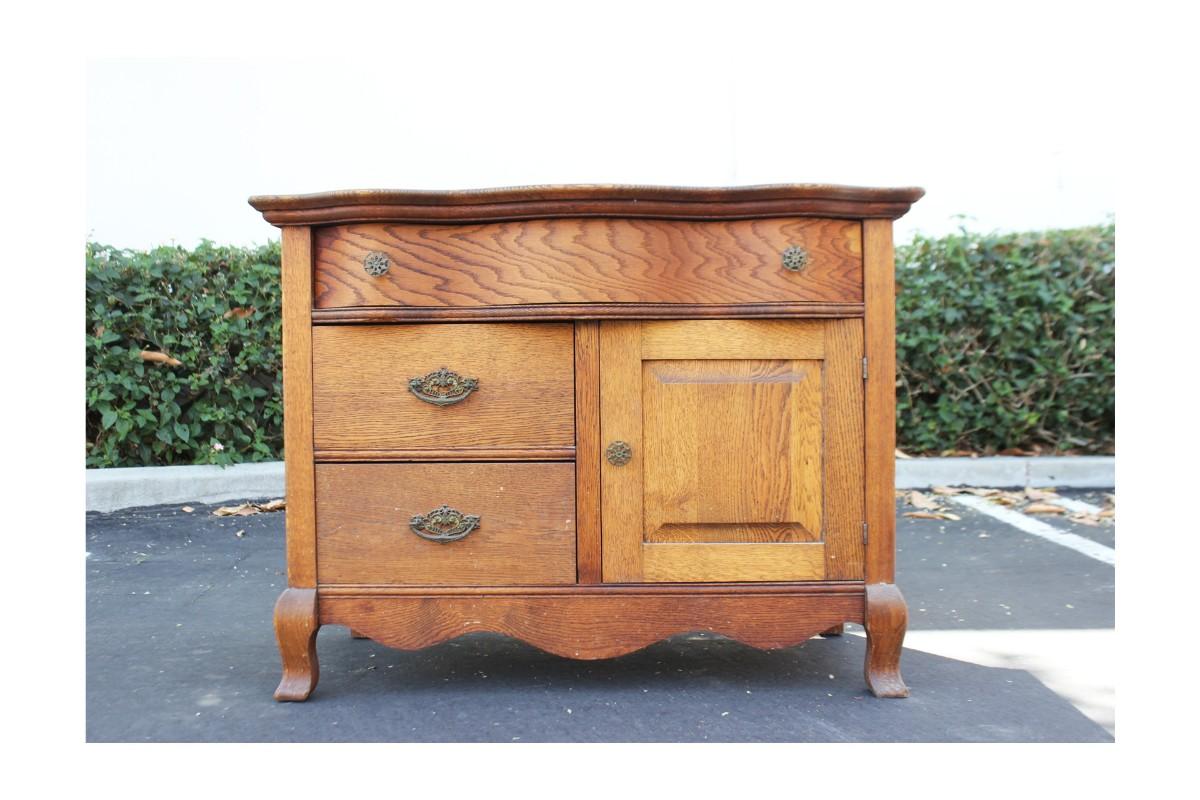 Vintage Small Solid Oak Wood Cupboard Cabinet