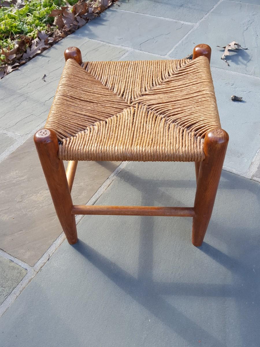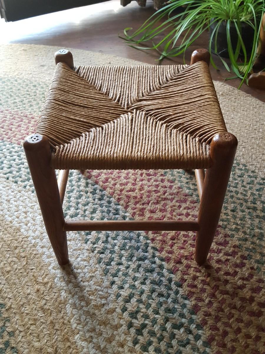 Vintage Small Solid Wood Rushed Stool Foot Rest 12"x12" X 11"
