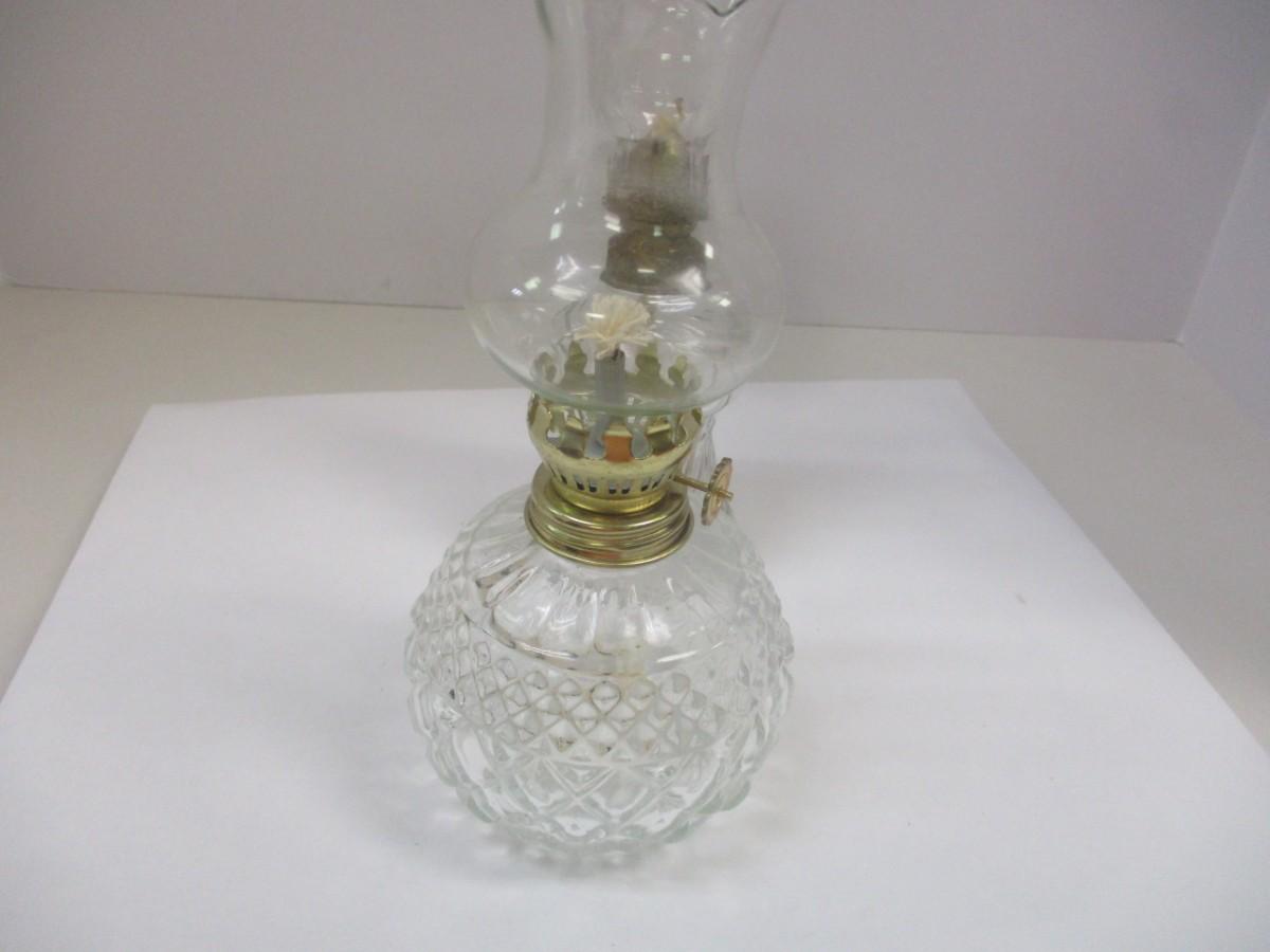 Vintage Small Swirl Glass Oil Lamp & Retro Oil Lamp