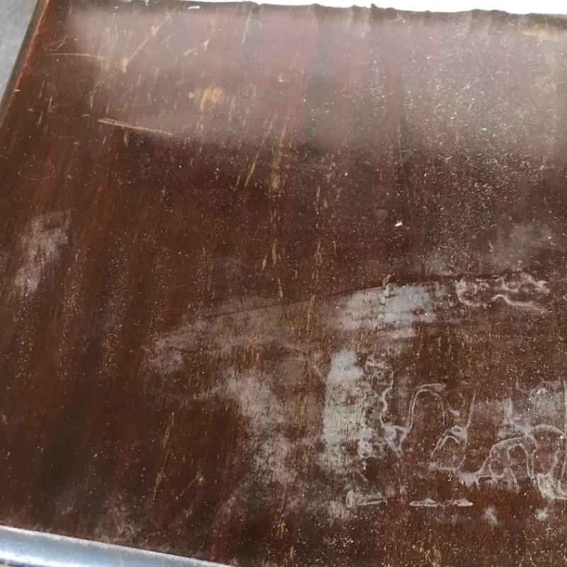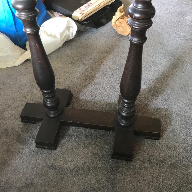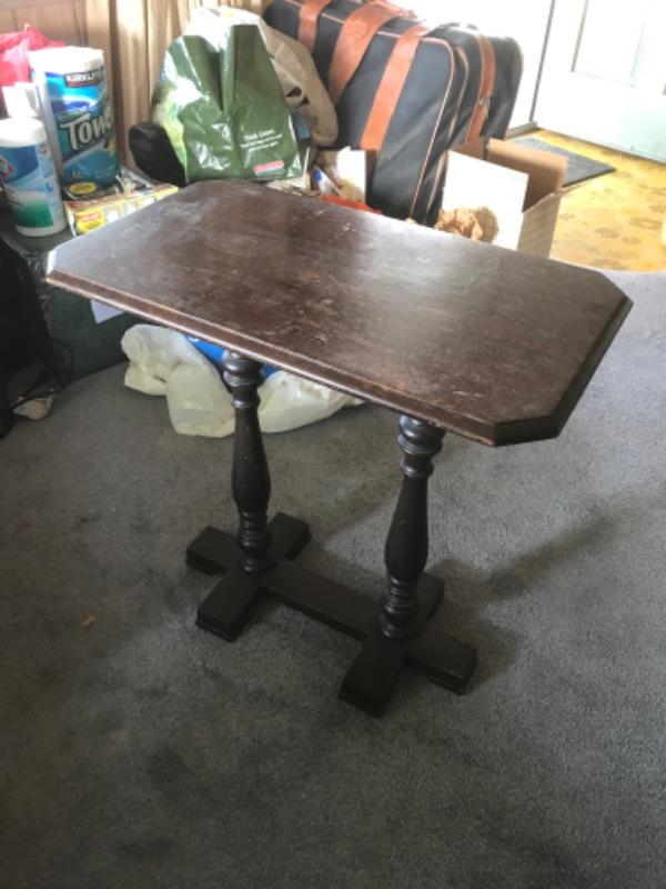 One vintage dark wood table. Item is in fair condition as there’re numerous scratches, gouges, and water stains on the surface. See pictures.