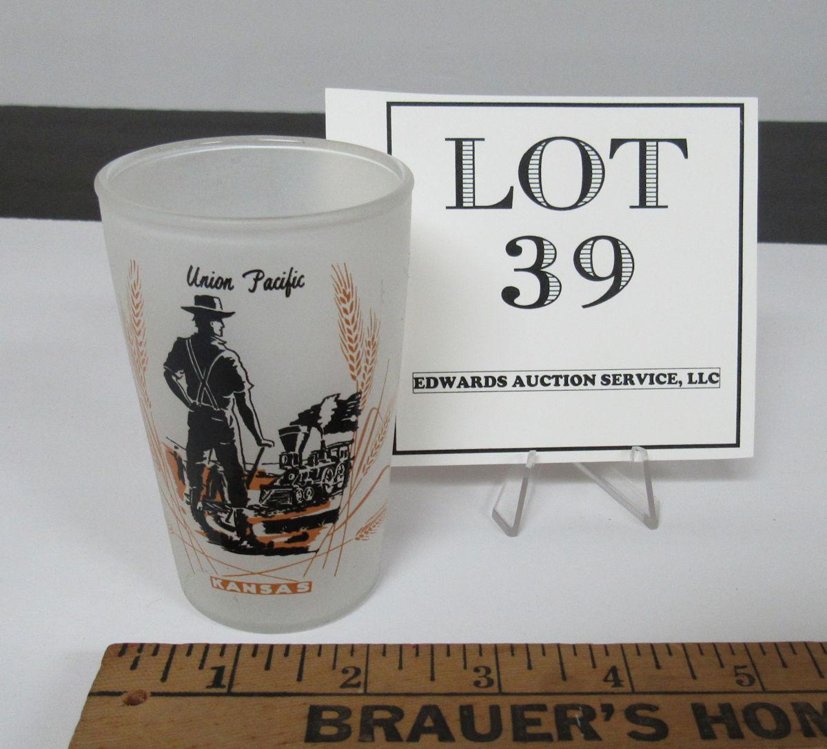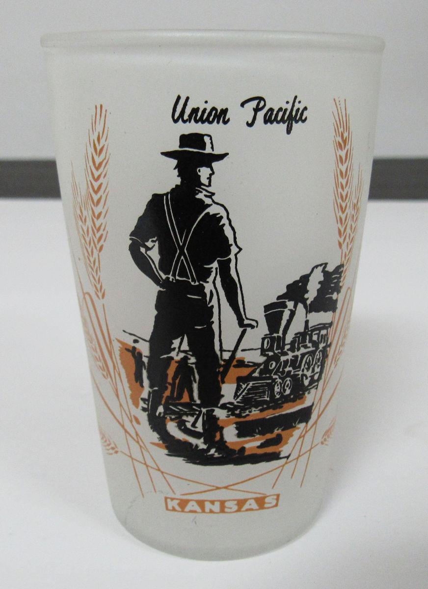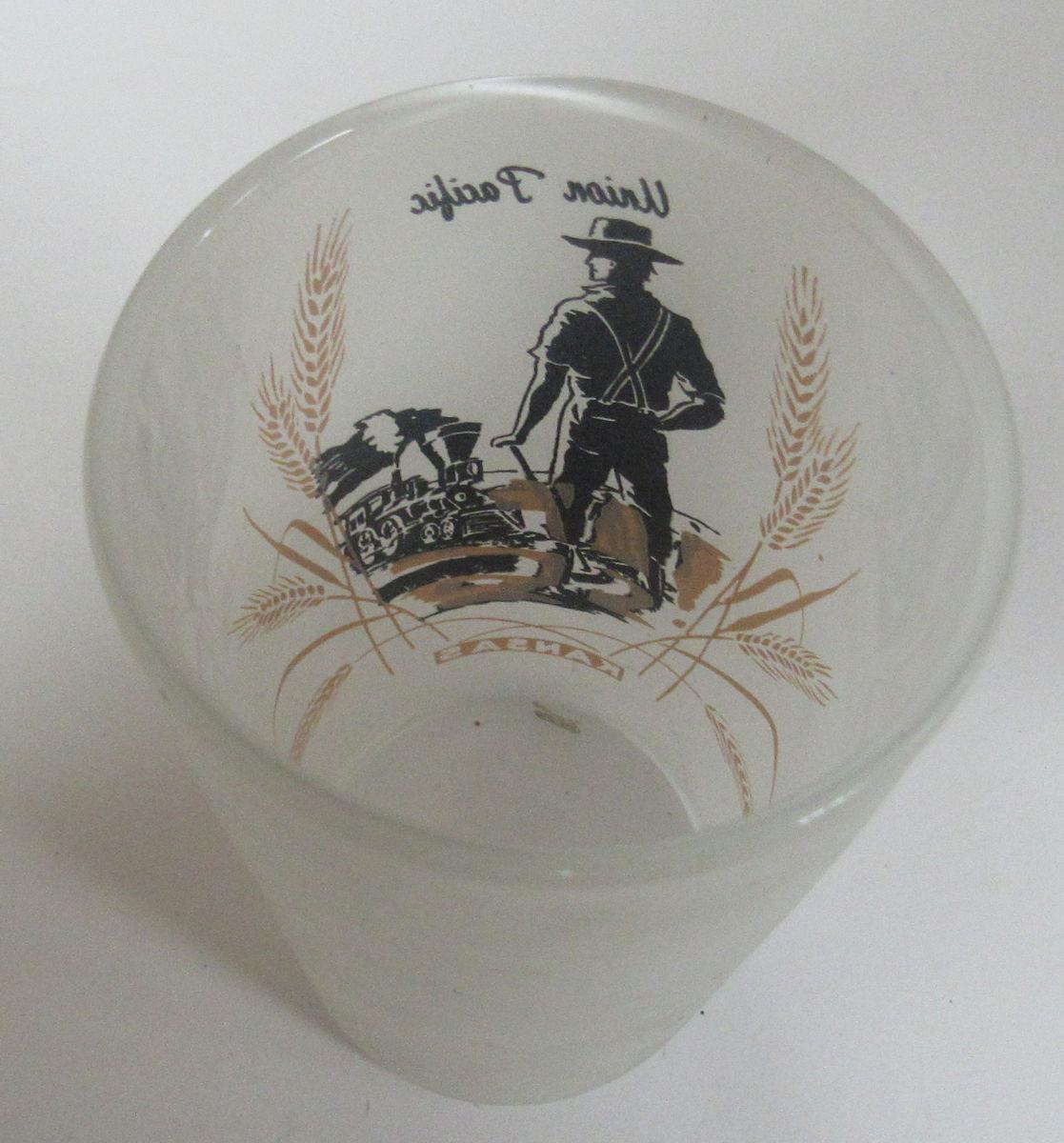 Vintage Small Union Pacific Railroad Frosted Glass Tumber, Kansas