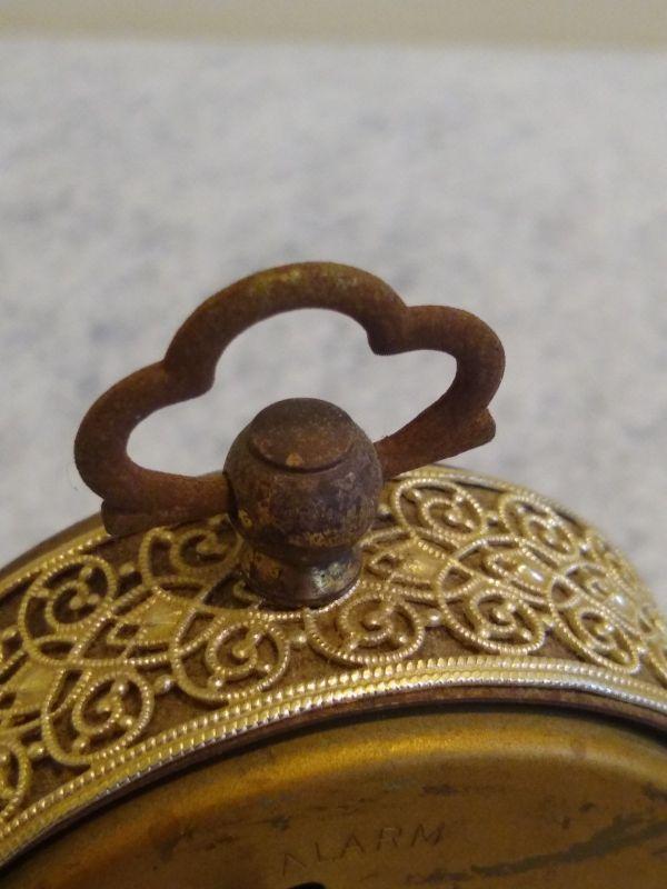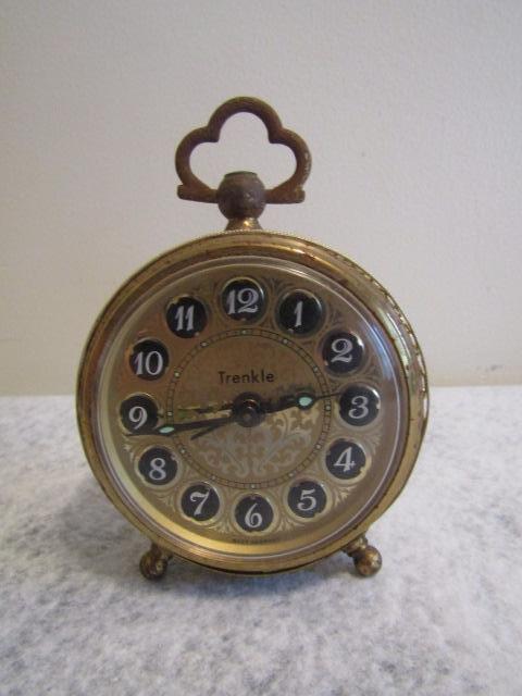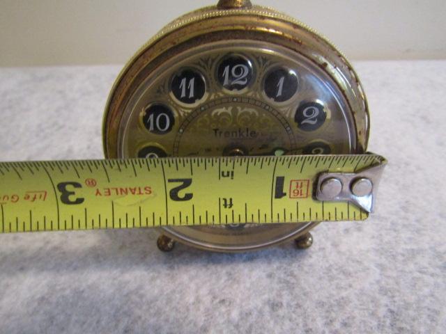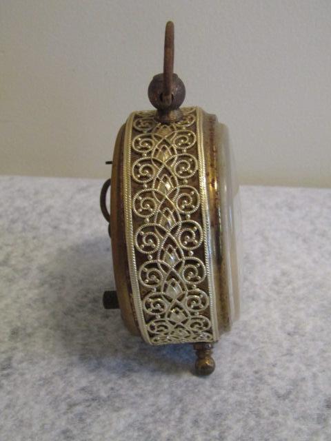 Vintage Small Vanity Clock by Trenkle- Gold Filigree Design- 2 1/2" in Diameter