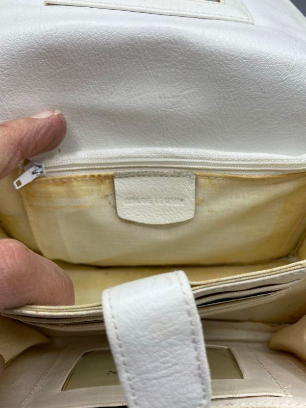 Small vintage Sereta crossbody bag. White leather. Adjustable shoulder strap, tons of pockets and card slots, great for travel. Lining inside has discolored from age. Outside in good condition.